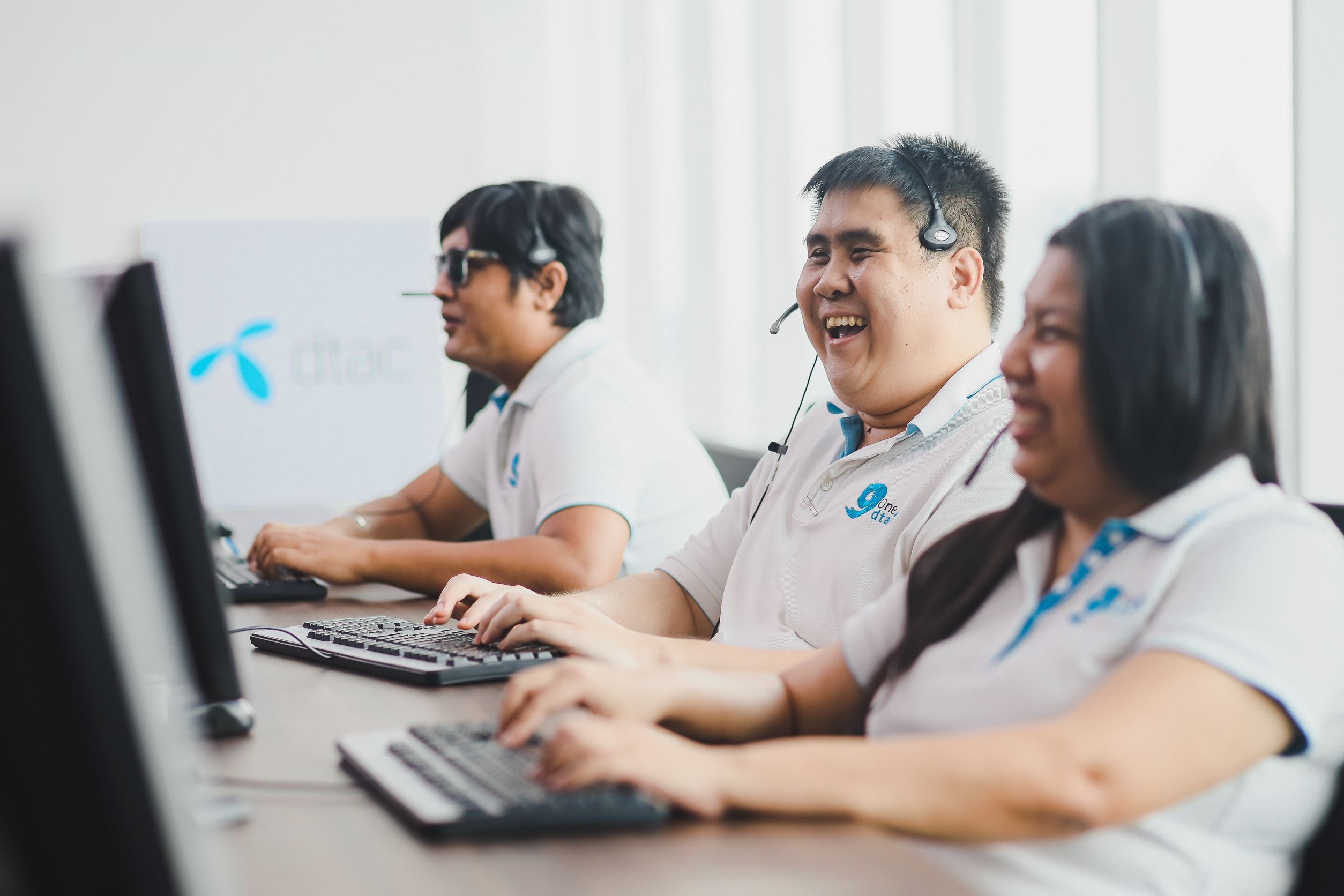 อำพล อินทรเปือย อีกหนึ่งในพนักงานคอลล์เซ็นเตอร์ของดีแทคที่เริ่มงานมาตั้งแต่ปี 2558 เล่าว่า จากการเป็นลูกค้าแฮปปี้ดีพร้อมท์สมัยยังเป็นเด็ก เมื่อจบมาได้เข้ามาทำงานที่ดีแทคเป็นที่แรกและอยากทำงานที่นี่เป็นที่สุดท้าย ผมมีความสุขกับที่นี่มาก ดีแทคให้ความเท่าเทียมเงินเดือน สวัสดิการ โอกาสการทำงานที่ใม่เหลื่อมล้ำ วัฒนธรรมการทำงานที่ดี ให้สลับวันหยุดการทำงานสอดคล้องกับไลฟ์สไตล์ ได้ทำงานที่อัพสกิลเพิ่ม เรียนรู้สิ่งใหม่ “ชื่นชมดีแทคที่ให้ลองก่อน ไม่ปิดกั้น แน่นอนว่าเมื่อเราได้ลองก็จะได้ผลงานใหม่ๆ จากผู้พิการ”