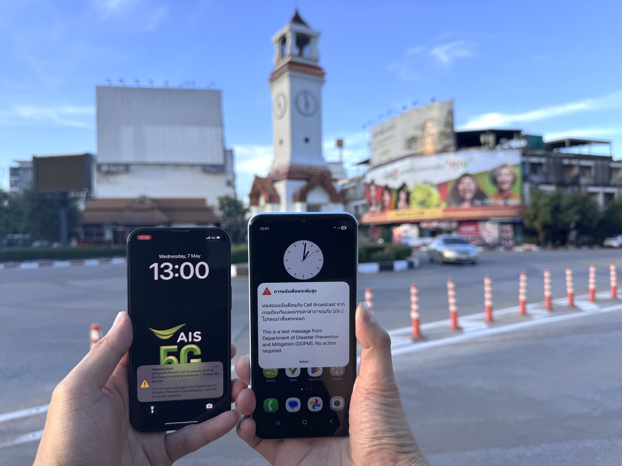 AIS เดินหน้าสนับสนุนภารกิจของกรมป้องกันและบรรเทาสาธารณภัย ปภ. ในการยกระดับระบบการแจ้งเตือนภัยของประเทศอย่างต่อเนื่อง จัดทดสอบแจ้งเตือนภัยฉุกเฉินผ่านระบบ Cell Broadcast ครั้งที่ 2 ในระดับกลาง โดยดำเนินการใน 5 พื้นที่ ประกอบด้วย อ.เมืองลำปาง จ.ลำปาง อ.เมืองนครสวรรค์ จ.นครสวรรค์ อ.เมืองนครราชสีมา จ.นครราชสีมา อ.เมืองสุราษฎร์ธานี จ.สุราษฎร์ธานี และเขตดินแดง กรุงเทพมหานคร ซึ่งผลการทดสอบประสบความสำเร็จตามเป้าหมายและเป็นไปอย่าง ราบรื่น ทั้งในแง่ของความถูกต้อง ความครอบคลุม และความพร้อมของระบบ ขณะเดียวกัน ทีมวิศวกร AIS ยังได้ลงพื้นที่เพื่อตรวจสอบและยืนยันว่า นักท่องเที่ยวและชาวต่างชาติที่ใช้ซิมโรมมิ่งมาจากต่างประเทศที่เดินทางเข้ามาในไทย และอยู่ในพื้นที่ทดสอบก็ได้รับข้อความแจ้งเตือนเช่นเดียวกัน