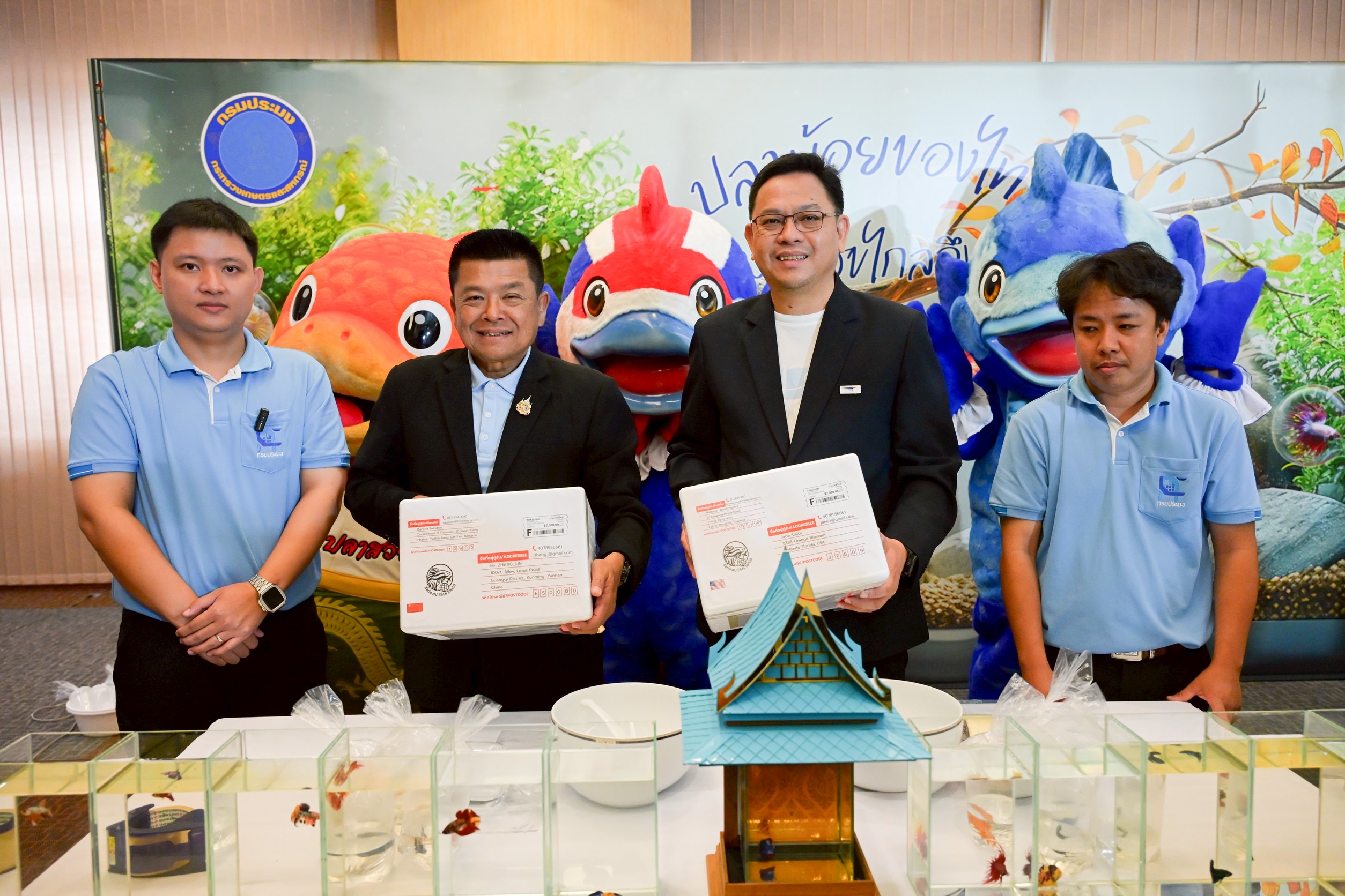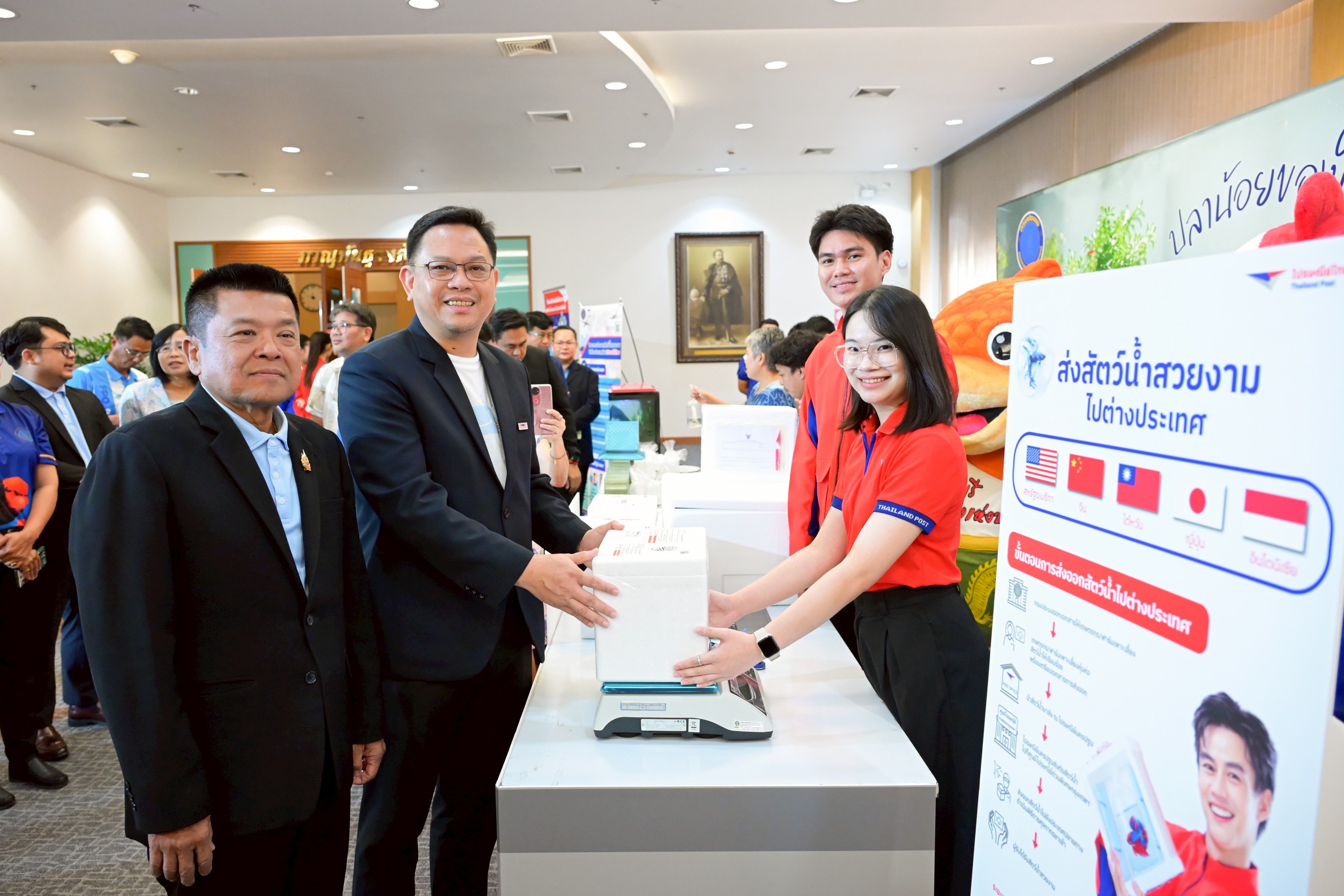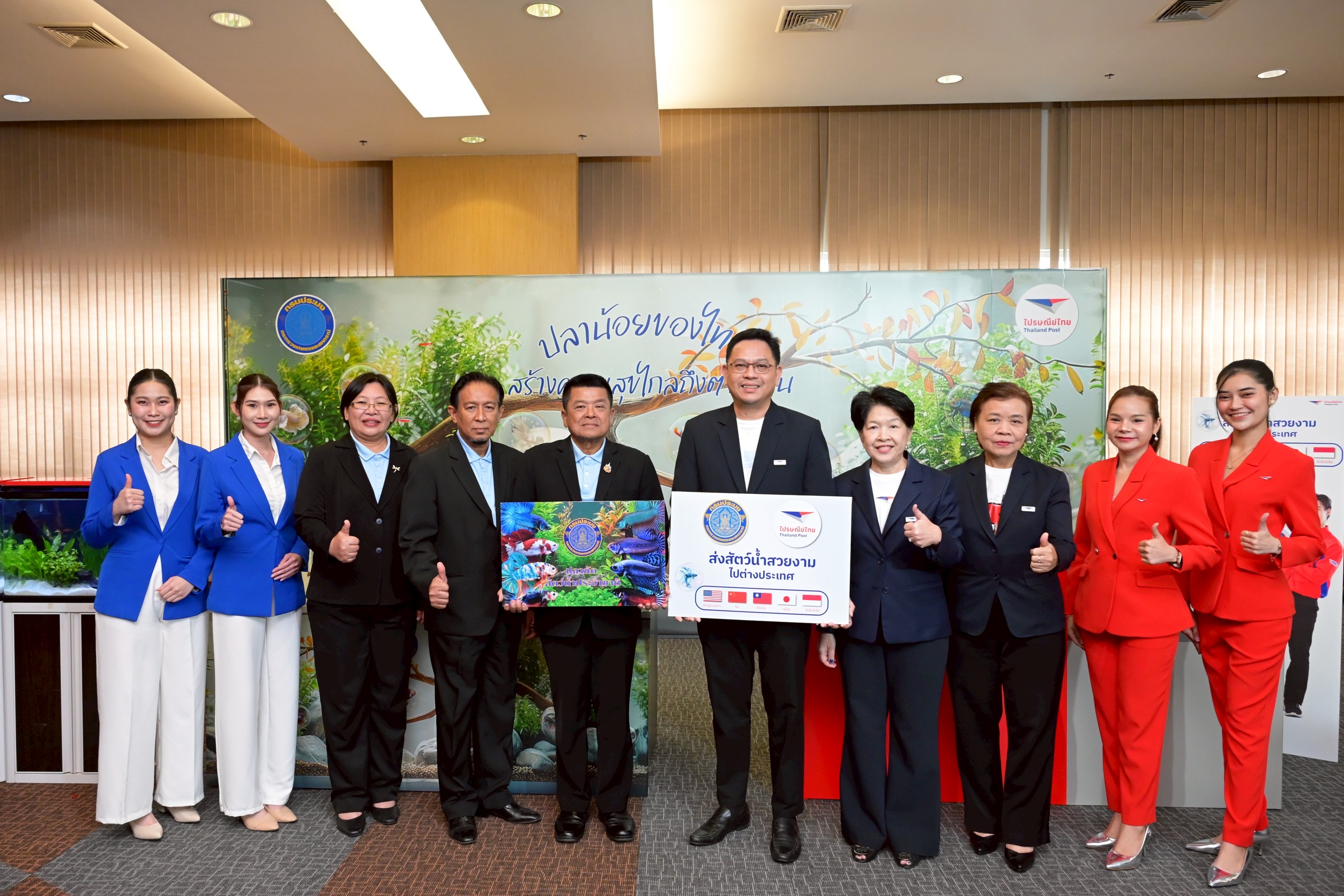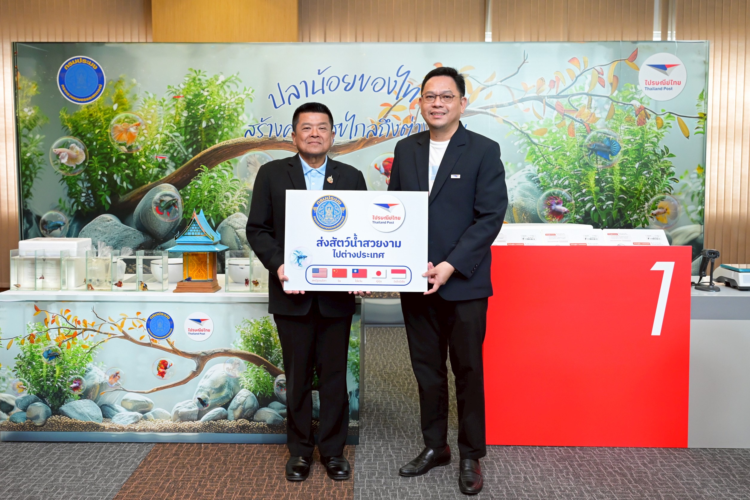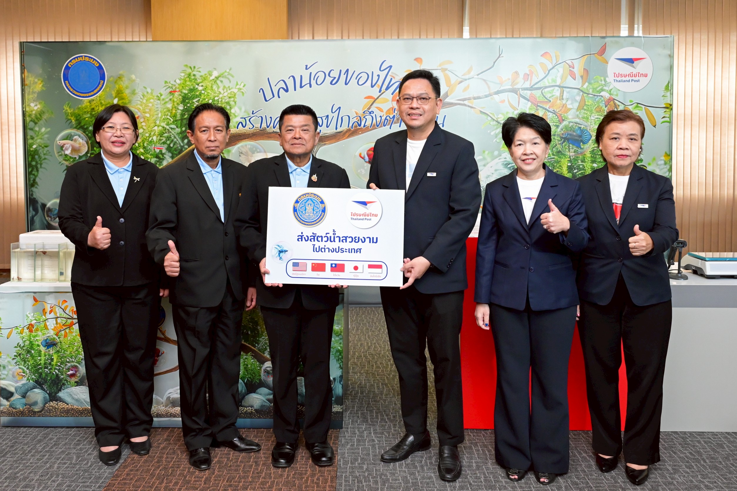 “การร่วมมือกับกรมประมงครั้งนี้ ไม่ใช่เพียงการส่งสินค้าระหว่างประเทศ แต่คือการเปิดประตูให้เกษตรกรและภาคการประมงไทยเข้าถึงตลาดโลกผ่านเครือข่ายไปรษณีย์ที่ครอบคลุมกว่า 50,000 แห่งและกว่า 190 ประเทศทั่วโลก โดยทั้งไปรษณีย์ไทยและกรมประมงมุ่งมั่นให้การส่งสัตว์น้ำสวยงามไทยกลายเป็นอีกหนึ่งสินค้าส่งออกหลักที่สร้างมูลค่าและภาพจำใหม่ของประเทศ รวมถึงช่วยสร้าง Branding ประเทศไทยในฐานะแหล่งผลิตสัตว์น้ำสวยงาม ทั้งนี้ การให้บริการดังกล่าวจะรองรับสัตว์น้ำสวยงามตามมาตรฐานการเพาะเลี้ยงระดับส่งออกจากการกำกับดูแลโดยกรมประมง ส่งผ่านบริการส่งด่วนสัตว์น้ำสวยงามไปต่างประเทศ เริ่มเปิดให้บริการในเดือนตุลาคม 2568 ณ ไปรษณีย์จังหวัดนครปฐมเป็นแห่งแรก ซึ่งเป็นจังหวัดที่นิยมเพาะเลี้ยงปลากัดในจำนวนมากที่สุดของไทย โดยในเฟสแรกจะมุ่งเน้นการส่งออกปลากัดไปยัง 5 ประเทศซึ่งเป็นตลาดเป้าหมาย ได้แก่ สหรัฐอเมริกา จีน ญี่ปุ่น ไต้หวัน และอินโดนีเซีย และในอนาคตจะศึกษาความเป็นไปได้เพื่อขยายบริการส่งสัตว์น้ำชนิดอื่นๆ ไปยังกลุ่มประเทศฐานผู้เลี้ยงสัตว์น้ำสวยงามขนาดใหญ่และกำลังซื้อสูง”