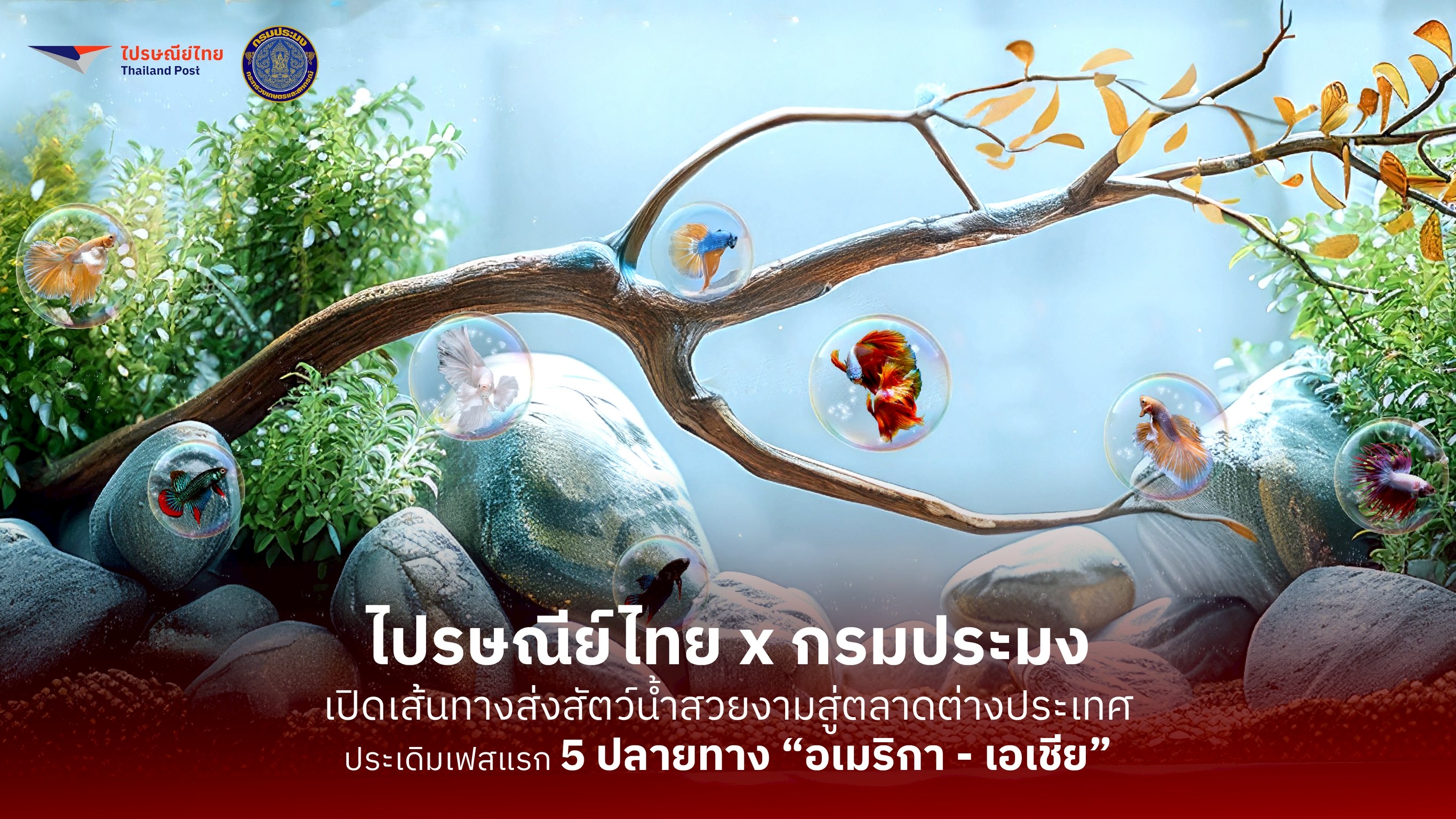 บริษัท ไปรษณีย์ไทย จำกัด จับมือกรมประมงเปิดบริการส่งด่วนสัตว์น้ำสวยงามไปยังต่างประเทศผ่านเครือข่ายไปรษณีย์เป็นครั้งแรก โดยเฟสแรกจะเริ่มให้บริการในเดือนตุลาคม 2568 ส่งออกปลากัด ใน 5 ตลาดหลัก ได้แก่ สหรัฐอเมริกา จีน ญี่ปุ่น ไต้หวัน และอินโดนีเซีย ก่อนขยายไปตลาดอื่นๆ ที่มีศักยภาพในอนาคต ทั้งนี้ บริการดังกล่าวจะรองรับเกษตรกรผู้เพาะเลี้ยงที่ขึ้นทะเบียนกับกรมประมงกว่า 10,000 ราย ภายใต้บริการส่งด่วนสัตว์น้ำสวยงามไปต่างประเทศ โดยปัจจุบันตลาดสัตว์น้ำสวยงามโลกมีมูลค่ากว่า 10,000 ล้านบาทต่อปี ไทยมีศักยภาพครองสัดส่วนการส่งออกปลากัดและสัตว์น้ำสวยงามเพิ่มขึ้นจากปัจจุบันที่ราว 11% และมีมูลค่ากว่า 1,000 ล้านบาท โดยเฉพาะปลากัดที่มีสัดส่วนถึง 40%