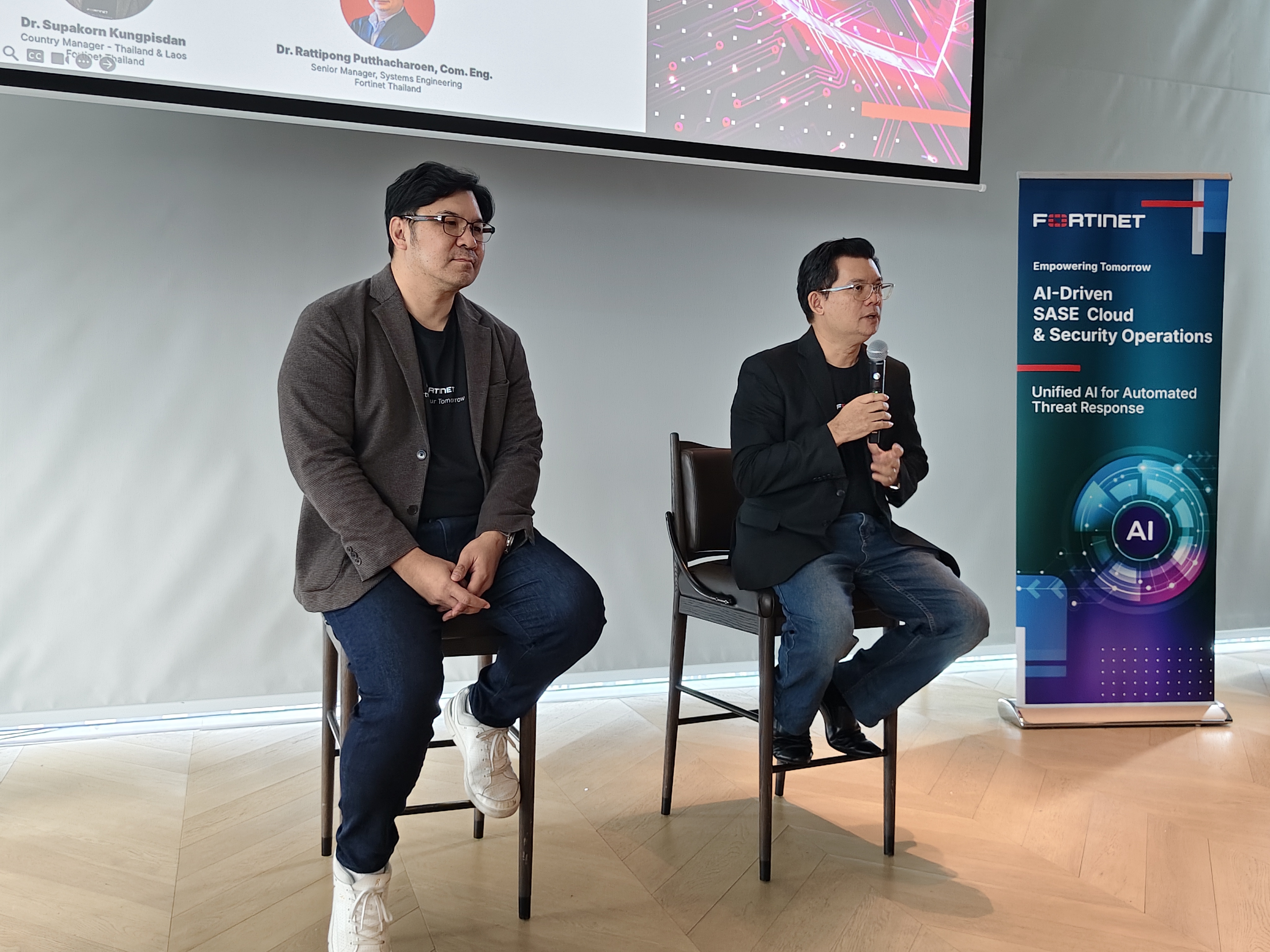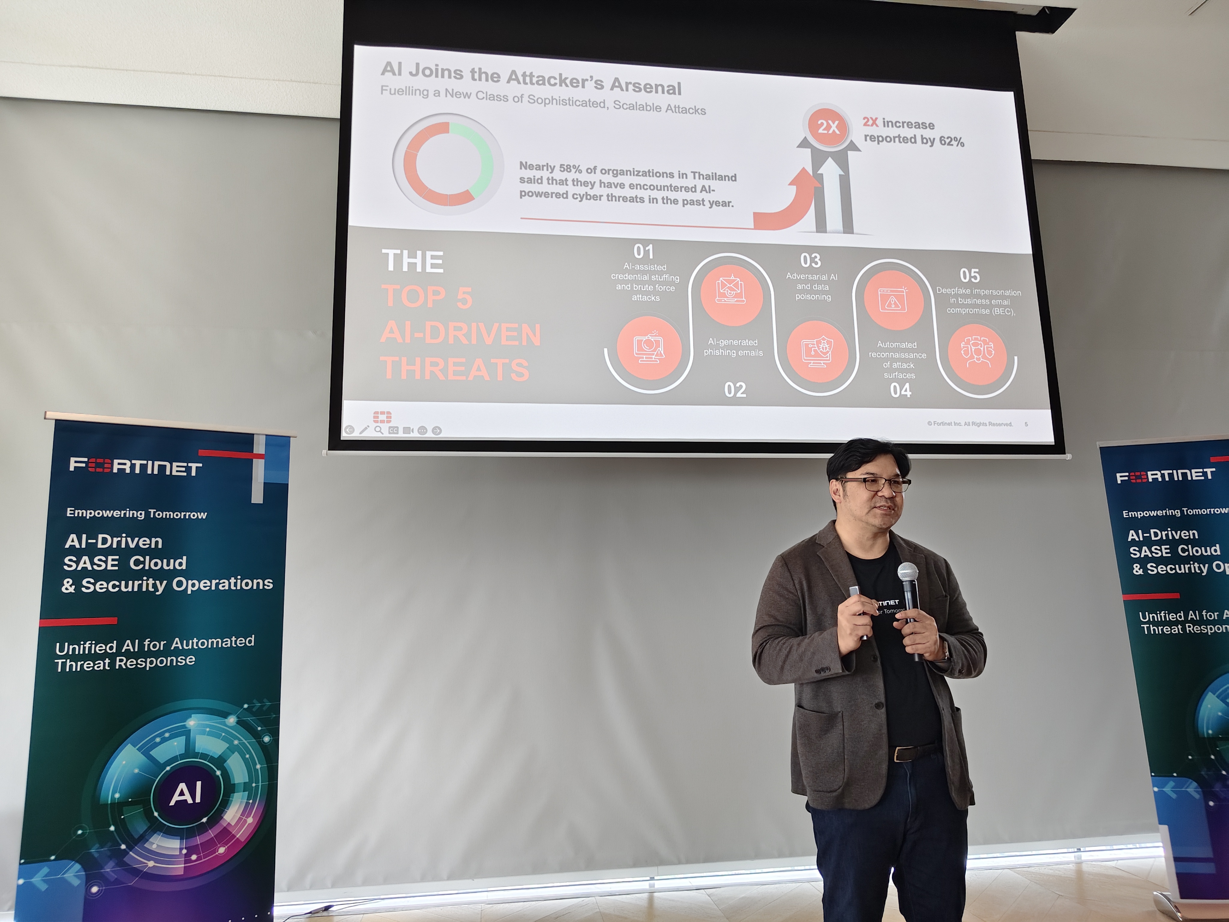 ดร.ศุภกร กังพิศดาร ผู้จัดการประจำประเทศไทย และลาว ฟอร์ติเน็ต กล่าวว่า CISO (Chief Information Security Officer) ทั่วประเทศกำลังก้าวเข้าสู่เฟสของการวางแผนรักษาความปลอดภัยไซเบอร์ที่ล้ำหน้ายิ่งขึ้น โดย AI ไม่เพียงแต่เสริมความแข็งแกร่งในการป้องกันเท่านั้น แต่ยังมีบทบาทสำคัญในการช่วยองค์กรวางโครงสร้างทีมงาน การจัดสรรงบประมาณ และจัดลำดับความสำคัญของภัยคุกคามด้วย Fortinet กำลังผสานรวมความสามารถของ AI เข้ากับแพลตฟอร์มทั้งหมด เพื่อสร้างศักยภาพในการตรวจจับภัยคุกคามที่รวดเร็วขึ้น ตอบสนองอย่างชาญฉลาดมากขึ้น และให้ความมั่นคงปลอดภัยในการดำเนินงานมากขึ้น เมื่อความเสี่ยงทางไซเบอร์มีความซับซ้อนและกระจายศูนย์