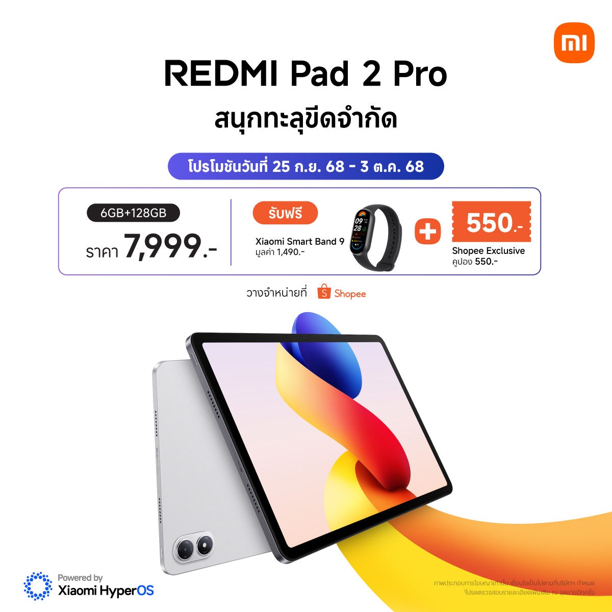 ในรุ่นความจุ 6GB + 128GB ในราคา 7,999 บาท พิเศษ! เฉพาะลูกค้าที่ซื้อ REDMI Pad 2 Pro รุ่นความจุ