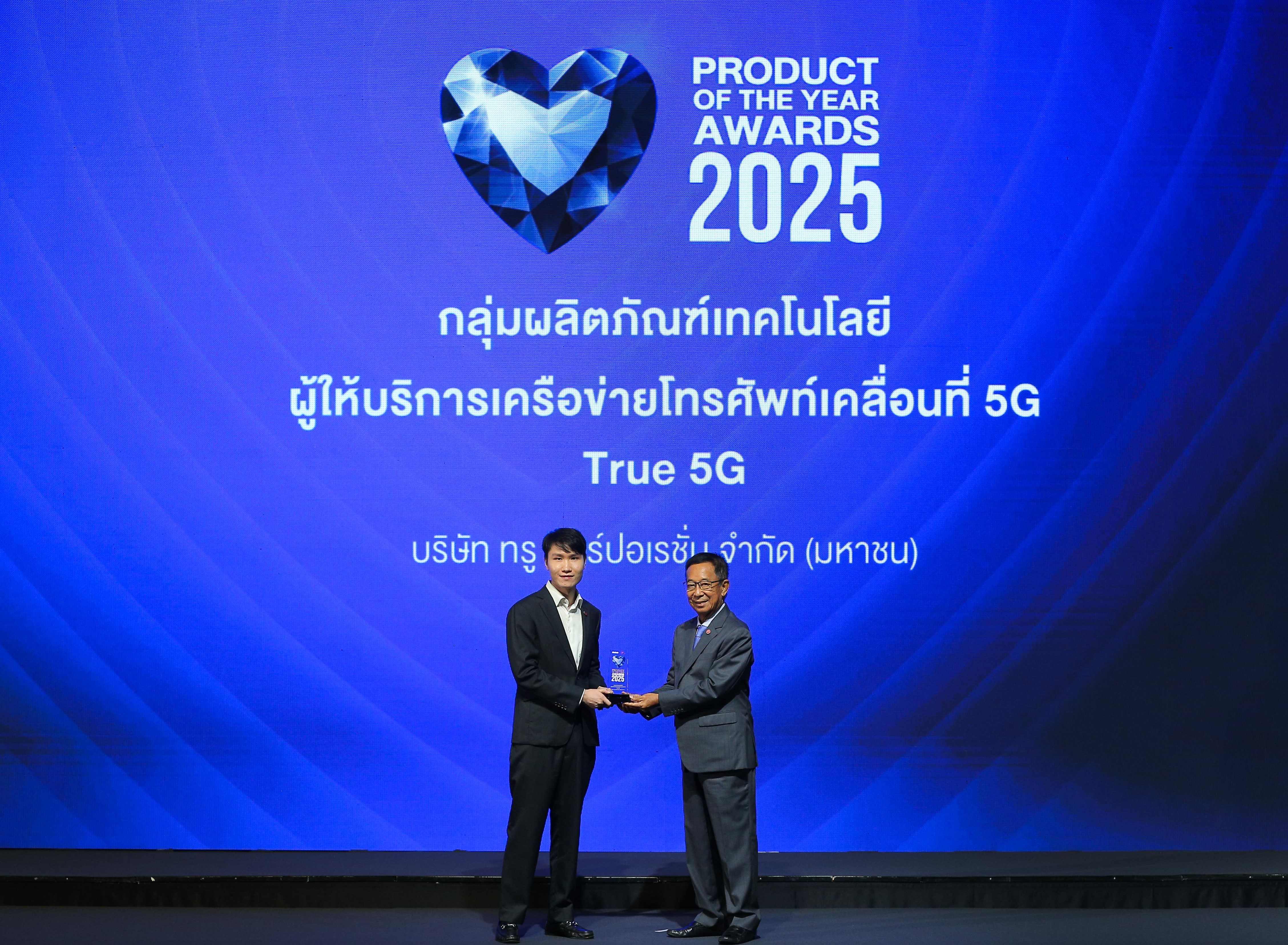 ฯพณฯ นุรักษ์ มาประณีต องคมนตรี ให้เกียรติเป็นประธานในพิธีมอบรางวัล “BUSINESS+ PRODUCT OF THE YEAR AWARDS 2025” ซึ่งในปีนี้ ทรู5G คว้ารางวัลสุดยอดสินค้าและบริการแห่งปี กลุ่มเทคโนโลยี ประเภทผู้ให้บริการเครือข่ายโทรศัพท์เคลื่อนที่ 5G ไปครอบครองอย่างเต็มภาคภูมิ โดยมี พชร แหวนทองคำ หัวหน้าฝ่ายงานพัฒนา บริการด้านคอนเทนต์ดิจิทัลและการเงิน บมจ. ทรู คอร์ปอเรชั่น เป็นผู้แทนขึ้นรับมอบ ซึ่งกระบวนการพิจารณารางวัลใช้ทั้งเกณฑ์การสำรวจเชิงปริมาณและการประเมินเชิงคุณภาพโดยผู้ทรงคุณวุฒิ