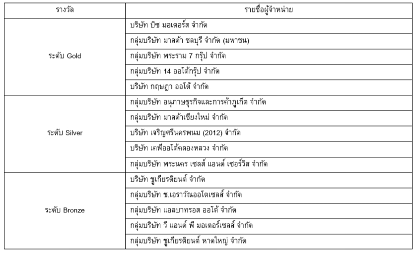 ผู้จำหน่ายมาสด้าที่ได้รับรางวัลผู้จำหน่ายยอดเยี่ยม ประจำปี 2567