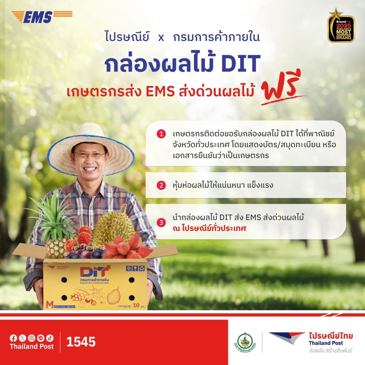 - สนับสนุนมาตรการเฉพาะด้านของหน่วยงานภาครัฐ โดยมีความร่วมมือกับ สภาเกษตรกรแห่งชาติ จัดโปรโมชัน EMS ส่งด่วนผลไม้ ส่ง 3 กก. ราคาเพียง 45 บาท เพื่อช่วยลดภาระค่าใช้จ่ายด้านการขนส่ง ของเกษตรกร พร้อมด้วยความร่วมมือกับธนาคารเพื่อการเกษตรและสหกรณ์การเกษตร (ธ.ก.ส.) ที่ออกโปรโมชัน EMS ส่งด่วนผลไม้ ส่ง 3 กก. ราคา 48 บาท และยังมีกรมการค้าภายใน กระทรวงพาณิชย์ ที่สนับสนุน กล่องผลไม้และตะกร้า เพื่อเพิ่มขีดความสามารถในการแข่งขันและลดต้นทุนบรรจุภัณฑ์ของเกษตรกร พร้อมสนับสนุนเชิงระบบและความร่วมมือแบบบูรณาการกับหน่วยงานต่าง ๆ เพื่อให้เกษตรกรมั่นใจ ได้ว่าจะยังสามารถส่งออกผลผลิตเข้าสู่ตลาดได้อย่างต่อเนื่องในช่วงปลายปีนี้