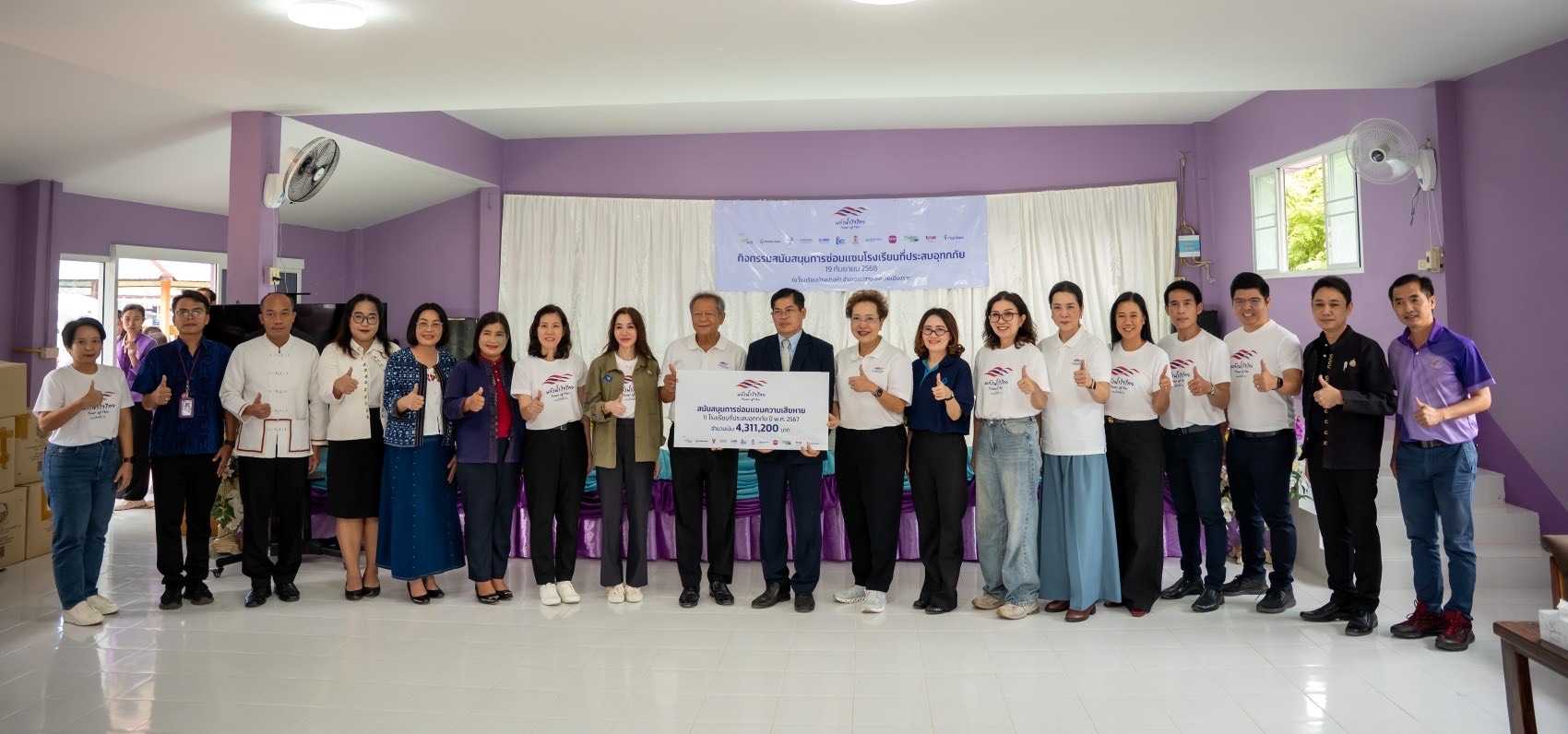 มูลนิธิพลังน้ำใจไทย (Power of Thai) มุ่งมั่นสร้างคุณประโยชน์อย่างต่อเนื่อง โดยเฉพาะด้านการศึกษา ซึ่งถือเป็นรากฐานสำคัญของการพัฒนาประเทศ พร้อมเดินหน้าสนับสนุนการฟื้นฟูโรงเรียนที่ได้รับผลกระทบจากภัยพิบัติ และร่วมยกระดับคุณภาพการศึกษาไทยสู่ความยั่งยืนต่อไป สำหรับผู้ที่ต้องการร่วมส่งต่อพลังแห่งการให้ สามารถร่วมบริจาคได้ที่ บัญชีมูลนิธิพลังน้ำใจไทย ธนาคารกรุงเทพ เลขที่บัญชี 101-881-5272 หรือผ่าน TrueMoney Wallet