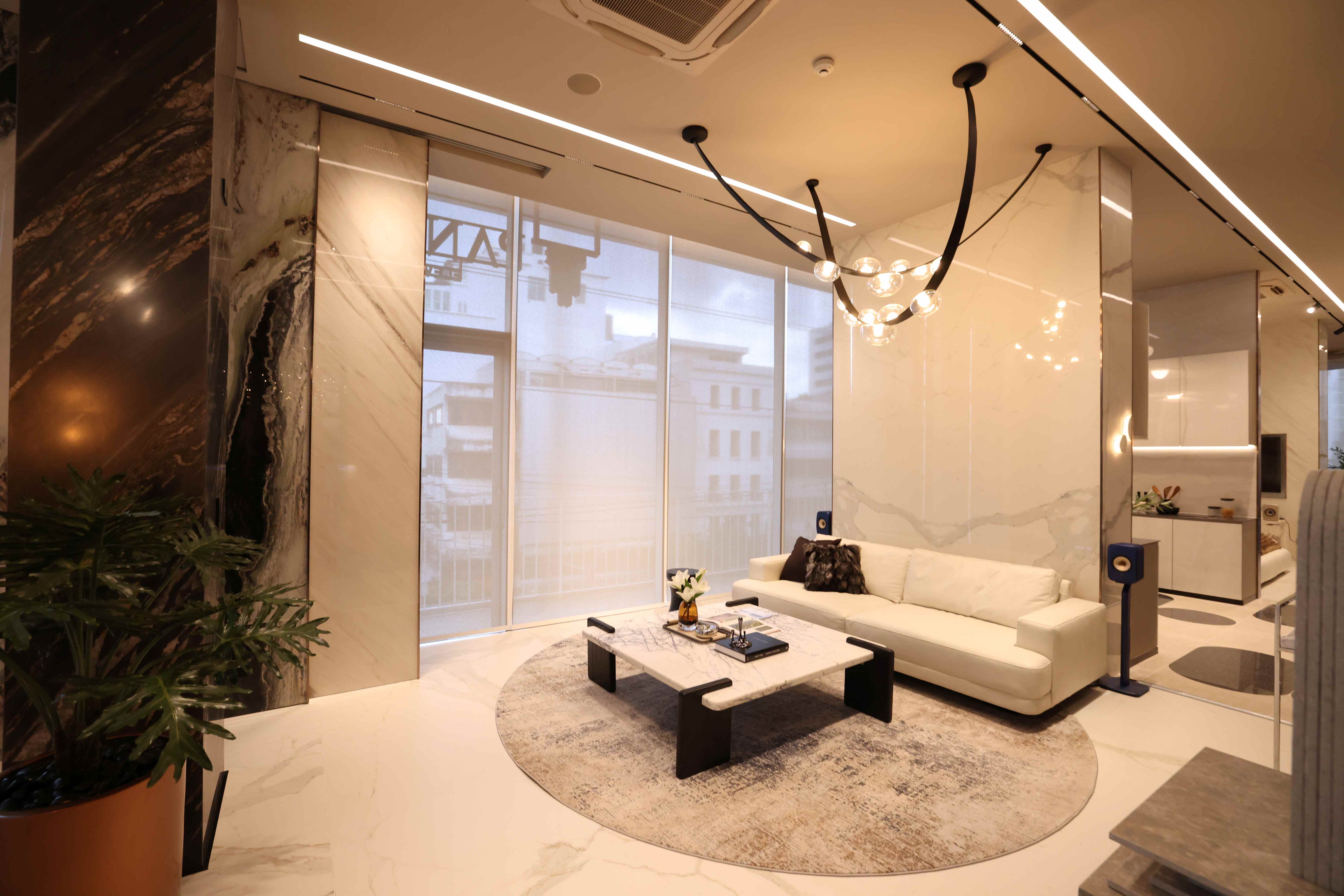 การนำเสนอภายใต้คอนเซ็ปต์ “Next Chapter of Luxury Living” มาในรูปแบบของ House Experience เพื่อให้ลูกค้าได้สัมผัส Product Showcase ผ่านโซนตัวอย่างที่ใช้โชว์รูมแบ่งโซนจริง ทั้งในห้องลีฟวิ่ง ห้องครัว ห้องน้ำ ห้องนอน และห้องเธียร์เตอร์ โดยผสมผสานงานหิน Evostone ระบบเสียง และบรรยากาศของร้านกาแฟ อีกทั้ง มีเฟอร์นิเจอร์จากแบรนด์หรูจากยุโรปอีกจำนวนมากแบบครบจบในที่เดียว