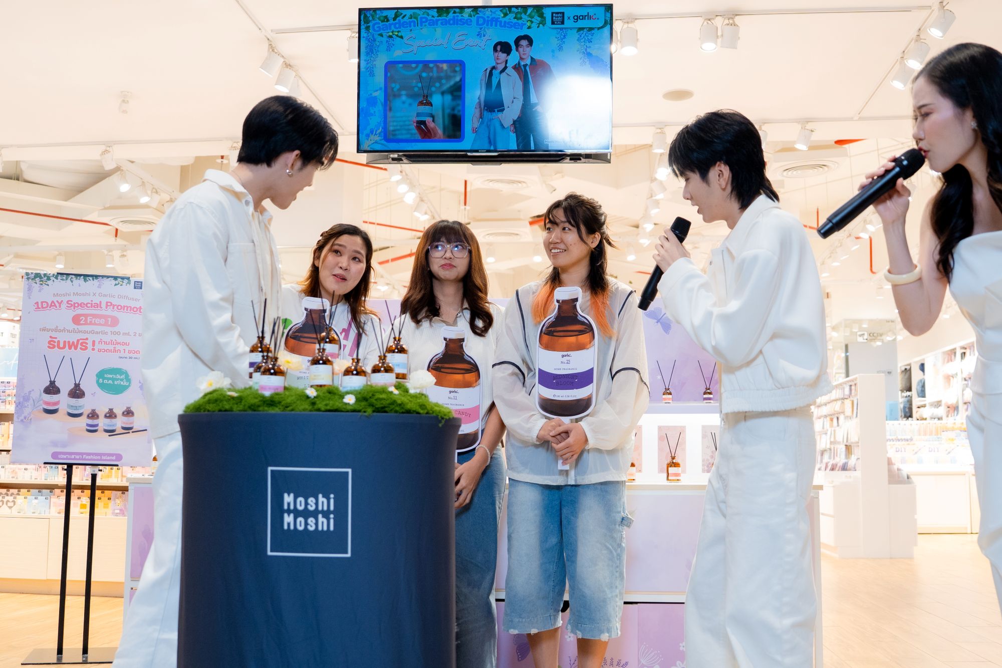 ‘บมจ. โมชิ โมชิ รีเทล คอร์ปอเรชั่น หรือ MOSHI’ ตอกย้ำการเป็นแบรนด์คนไทย เดินหน้าสร้างสรรค์ความสุขให้กับผู้บริโภคผ่านผลิตภัณฑ์ดีไซน์น่ารัก คุณภาพดี ในราคาที่เข้าถึงได้ ล่าสุดประสบความสำเร็จจากการจัดกิจกรรมทางการตลาดสุดพิเศษ "Moshi Moshi x Garlic Garden Paradise Diffuser" ชวนคู่จิ้นสุดฮอต 'อู่อู๋-เซฟ' ร่วมสร้างโมเมนต์สุดฟิน มัดใจแฟนคลับชาวไทย-จีน พร้อมสร้างการรับรู้และความสนใจในผลิตภัณฑ์ก้านไม้หอมปรับอากาศ "Garlic Diffuser" อย่างล้นหลาม