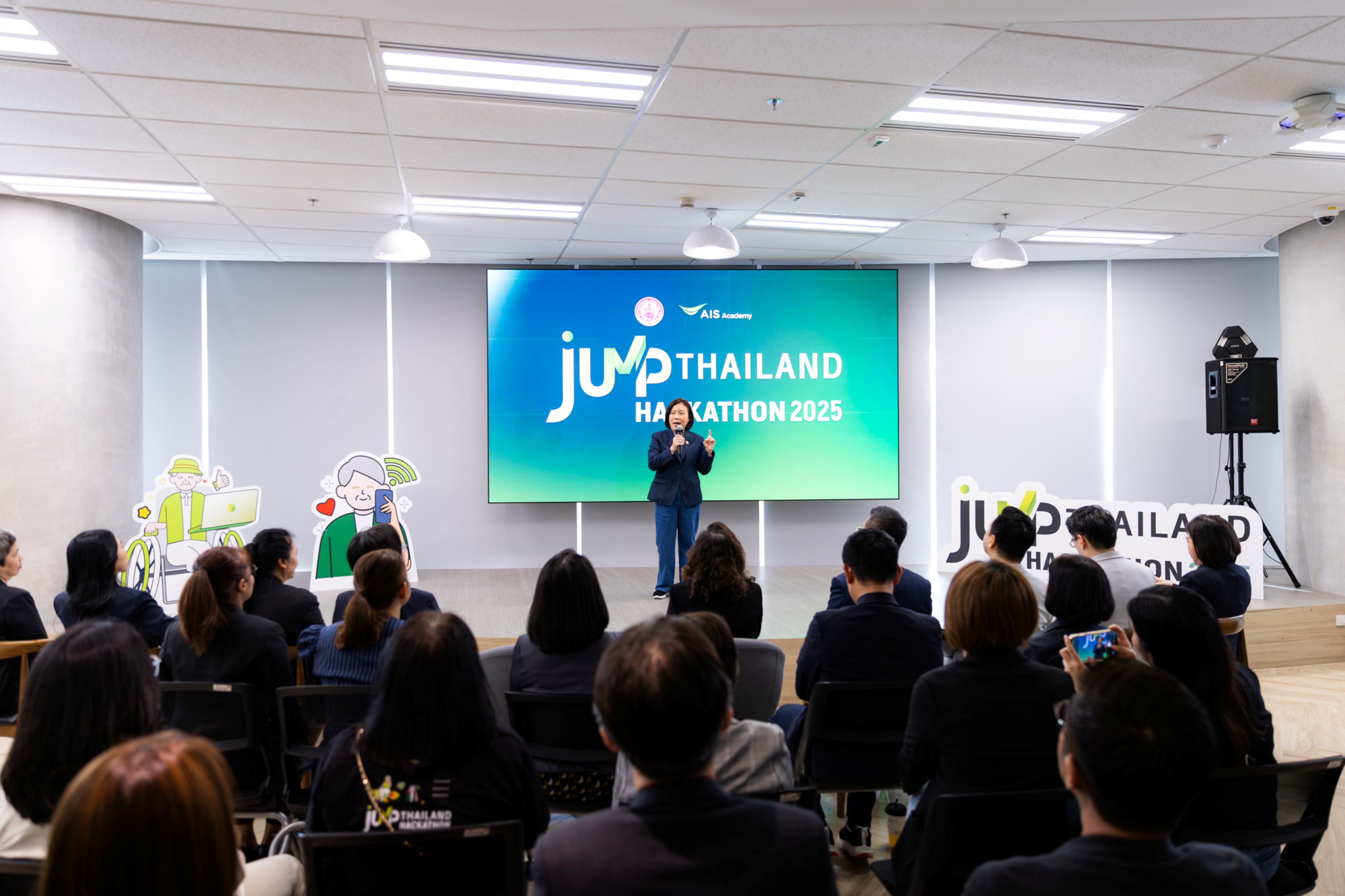 AIS ACADEMY ขอเชิญชวนเข้าชมและร่วมเป็นกำลังใจให้กับ 10 ทีมสุดท้ายของโครงการ JUMP THAILAND Hackathon 2025 จากผู้สมัครทั่วประเทศกว่า 295 ทีม โดยแต่ละทีมได้ผ่านการฝึกฝนและเวิร์กช็อปสุดเข้มข้นจาก AIS ACADEMY จนพร้อมแล้วที่จะก้าวขึ้นสู่เวที รอบ Demo Day เพื่อเผยโฉมนวัตกรรมที่จะเพิ่มโอกาสให้ผู้สูงอายุหรือคนพิการสามารถมีงานทำ มีรายได้ และความมั่นคงอย่างยั่งยืน พร้อมทั้งใช้ศักยภาพและเทคโนโลยีร่วมขับเคลื่อนสังคมไทยสู่อนาคตที่ดีกว่า มาร่วมเป็นสักขีพยานและส่งแรงเชียร์ไปด้วยกัน ในวันศุกร์ที่ 17 ตุลาคม 2568 ในงาน AIS ACADEMY for THAIs at LIFE FEST 40+ ณ @ centralwOrld PULSE ชั้น 7