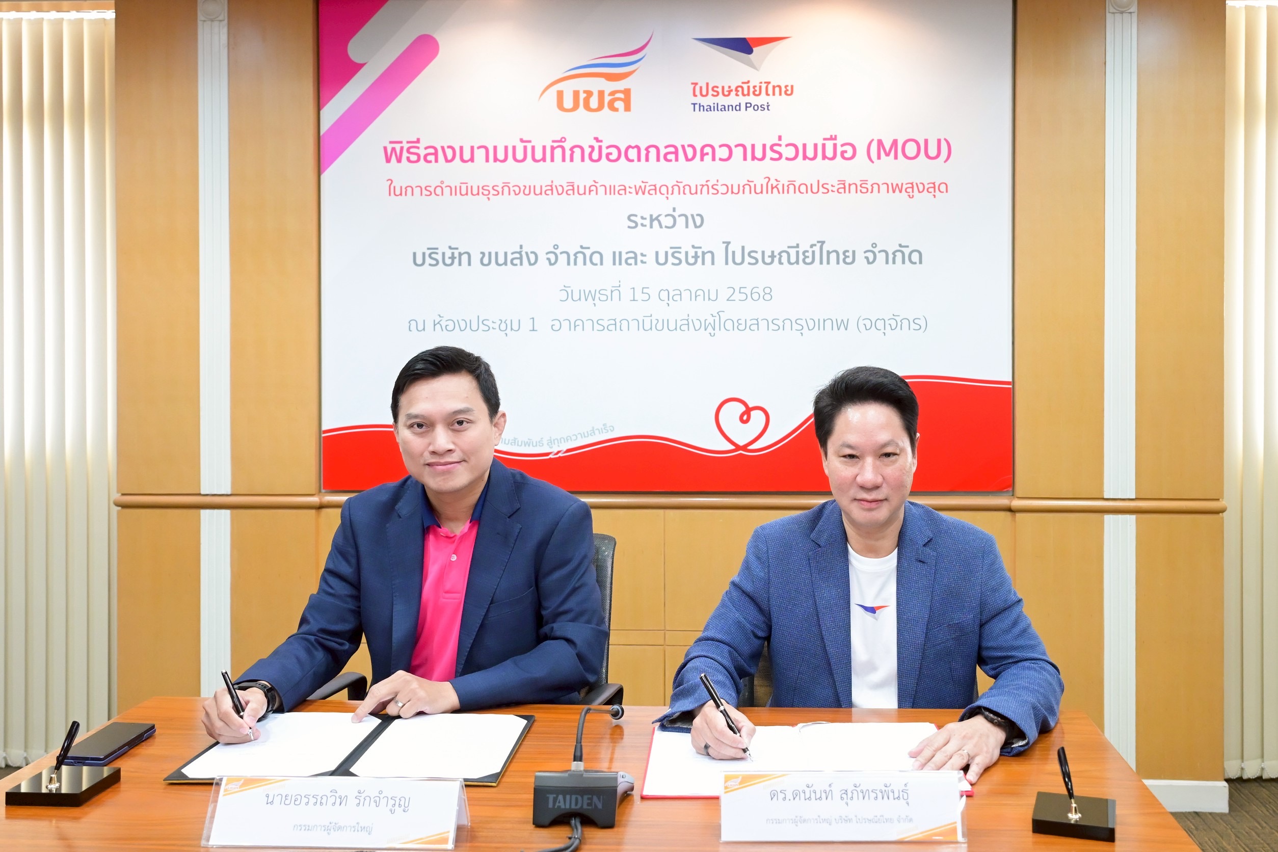 บริษัท ไปรษณีย์ไทย จำกัด ผนึกความร่วมมือ บริษัท ขนส่ง จำกัด หรือ บขส. เสริมความแข็งแกร่งระบบโลจิสติกส์ภาครัฐ บูรณาการเครือข่ายและศักยภาพของทั้งสององค์กรให้บริการนำจ่ายสิ่งของถึงผู้รับปลายทางในประเทศแบบ Hub to Door พร้อมเปิดจุดให้บริการเพื่อนพี่ไปรฯ EMS Point รับฝากสิ่งของส่งทางไปรษณีย์ ขานรับนโยบายเร่งด่วน (Quick Big Win) ของรัฐบาลในการลดต้นทุนโลจิสติกส์ สนับสนุนภาคเกษตรกรรม ผู้ประกอบการ SMEs และ กระตุ้นเศรษฐกิจอย่างยืน