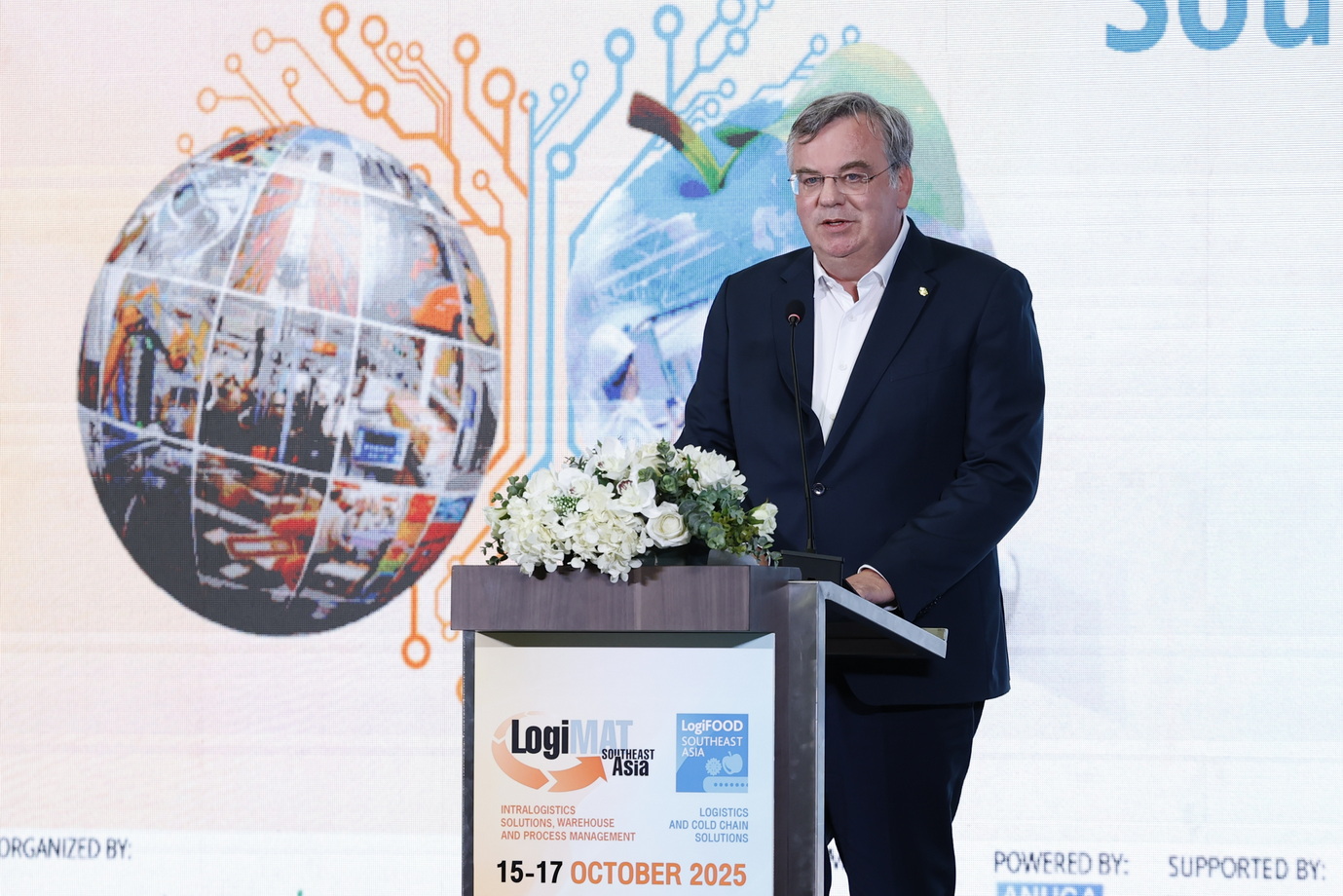 ด้าน แมทเธียส คูเปอร์ (Mr. Mathias Kuepper) รองประธานประจำภูมิภาคเอเชียแปซิฟิก โคโลญเมสเซ่ กล่าวเสริมว่า งาน LogiMAT & LogiFOOD Southeast Asia 2025 จะจัดไปจนถึงวันที่ 17 ตุลาคม 2568 ณ ฮอลล์ 100 ศูนย์นิทรรศการและการประชุมไบเทค กรุงเทพฯ โดยมีผู้ประกอบการชั้นนำกว่า 250 บูธ จาก 10 ประเทศทั้งในยุโรปและเอเชีย มาร่วมจัดแสดงนวัตกรรมโลจิสติกส์ครบวงจร ตั้งแต่ต้นน้ำถึงปลายน้ำ โดยเฉพาะเทคโนโลยีด้าน Robotic, AI และ Automation ซึ่งมีบทบาทสำคัญในการเพิ่มประสิทธิภาพ ลดต้นทุน และยกระดับห่วงโซ่อุปทานให้ตอบโจทย์การดำเนินธุรกิจในยุคดิจิทัล รองรับความต้องการทั้งภาคธุรกิจ ภาคอุตสาหกรรม และภาคบริการ พร้อมด้วยผู้เข้าชมงานจากกว่า 30 ประเทศทั่วโลก