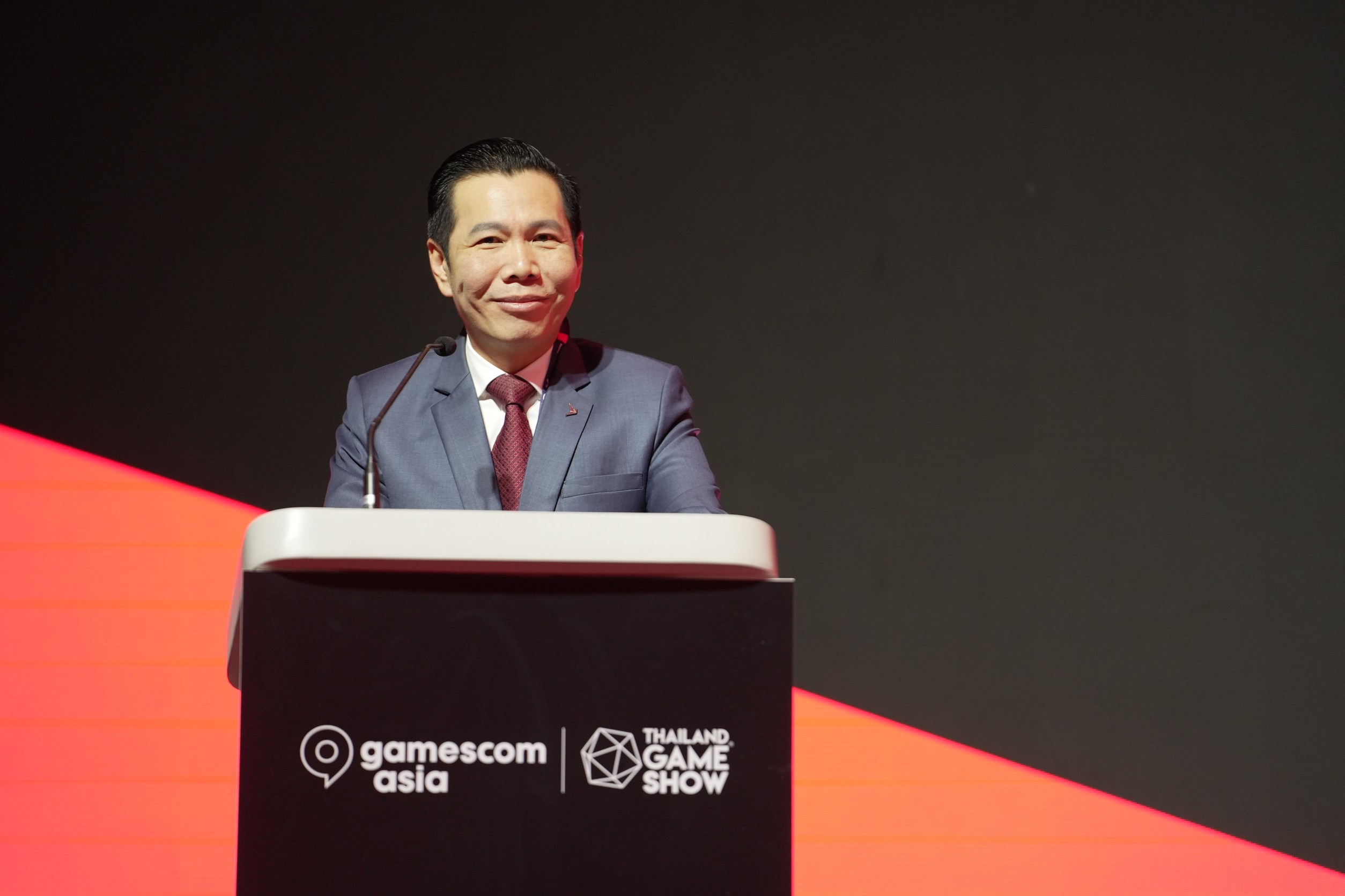 “ตลอดระยะเวลาที่ผ่านมา การบูรณาการการทำงานระหว่าง ดีป้า กรมส่งเสริมการค้าระหว่างประเทศ ตลอดจนเครือข่ายพันธมิตรมุ่งสร้างโอกาสแก่ผู้ประกอบการและบุคลากรในอุตสาหกรรมเกมไทยมาอย่างต่อเนื่อง ทั้งการส่งเสริมให้ผู้ประกอบการสามารถเข้าถึงแหล่งทุนเพื่อต่อยอดธุรกิจ การยกระดับความรู้และทักษะให้กับบุคลากร ซึ่งถือเป็นหัวใจสำคัญของภาคอุตสาหกรรม การเปิดโอกาสทางการตลาด และการก้าวไปสัมผัสประสบการณ์ในระดับสากลผ่านการร่วมงานระดับนานาชาติ เช่น Tokyo Game Show, G-Star และ gamescom เพื่อเปิดโลกทัศน์ เรียนรู้ทิศทางของตลาดโลก และนำประสบการณ์ที่ได้มาปรับใช้ นอกจากนี้ ประเทศไทยอยู่ระหว่างการผลักดันให้เกิดพระราชบัญญัติ (พ.ร.บ.) ส่งเสริมอุตสาหกรรมเกมที่ไม่ได้เป็นเพียงการสร้างความเข้มแข็งให้กับภาคอุตสาหกรรม แต่จะเป็นการกำหนดทิศทางการทำงานที่จะนำไปสู่การเติบโตอย่างยั่งยืน อย่างไรก็ตารม ดีป้า เชื่อว่า งาน gamescom asia x Thailand Game Show 2025 เป็นมากกว่างานเกม โดยเป็นพื้นที่ของความร่วมมือที่ทุกภาคส่วนได้มาร่วมเติมเต็มระบบนิเวศของอุตสาหกรรมเกมไทยให้เข้มแข็ง และหวังว่า งาน gamescom asia x Thailand Game Show 2025 จะเป็นจุดเริ่มต้นให้เกม ซึ่งรวมถึงอุตสาหกรรมดิจิทัลคอนเทนต์ไทยได้แสดงศักยภาพต่อสายตาชาวโลก และสามารถแข่งขันได้ในระดับสากล” ผู้อำนวยการใหญ่ ดีป้า กล่าว