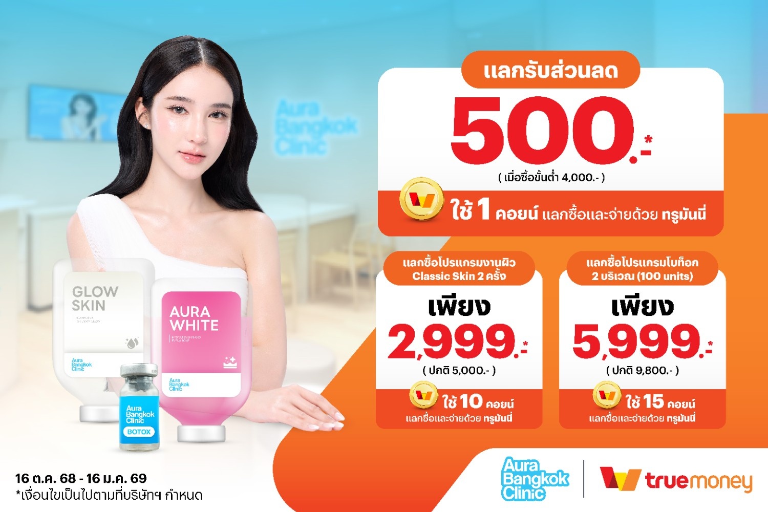 ทรูมันนี่ ผู้นำด้านบริการอิเล็กทรอนิกส์เพย์เมนท์และโซลูชันทางการเงินดิจิทัลในภูมิภาค และ “เพย์ เน็กซ์ เอ็กซ์ตร้า” ซึ่งเป็นบริการสินเชื่อดิจิทัลโดย บริษัท แอสเซนด์ นาโน จำกัด จับมือ Aura Wellness ธุรกิจสุขภาพและความงามเชิงไลฟ์สไตล์ รุกตลาด “Beauty Financing” หรือเทรนด์ “สวยก่อน ผ่อนทีหลัง” ที่กำลังมาแรงในหมู่ผู้บริโภคยุคดิจิทัล เพื่อยกระดับประสบการณ์ด้านความงามให้สอดคล้องกับวิถีชีวิตคนรุ่นใหม่ โดยลูกค้าสามารถเลือกชำระค่าบริการที่ Aura Bangkok Clinic และ Aura Xpress ผ่านทรูมันนี่ได้อย่างสะดวกและปลอดภัย พร้อมใช้ ทรูมันนี่ คอยน์ เพื่อรับความคุ้มค่าที่มากขึ้น และยังมีตัวเลือกการผ่อนชำระดอกเบี้ย 0% สูงสุด 12 เดือน ผ่านบริการวงเงินพร้อมใช้ เพย์ เน็กซ์ เอ็กซ์ตร้า (Pay Next Extra) ที่ช่วยเพิ่มความยืดหยุ่นในการบริหารค่าใช้จ่าย ให้การดูแลสุขภาพและความงามเป็นเรื่องง่ายและตอบโจทย์ในทุกไลฟ์สไตล์