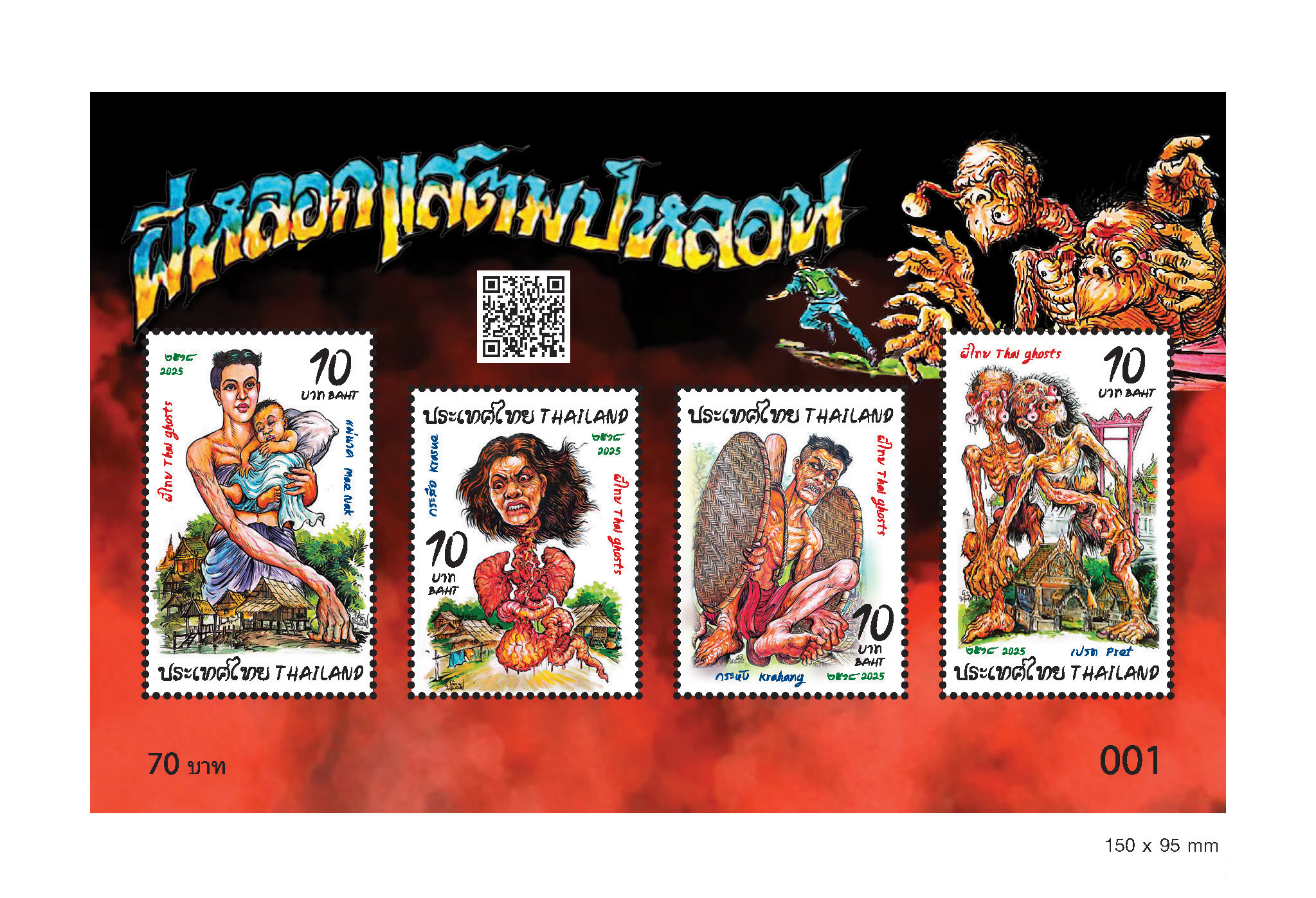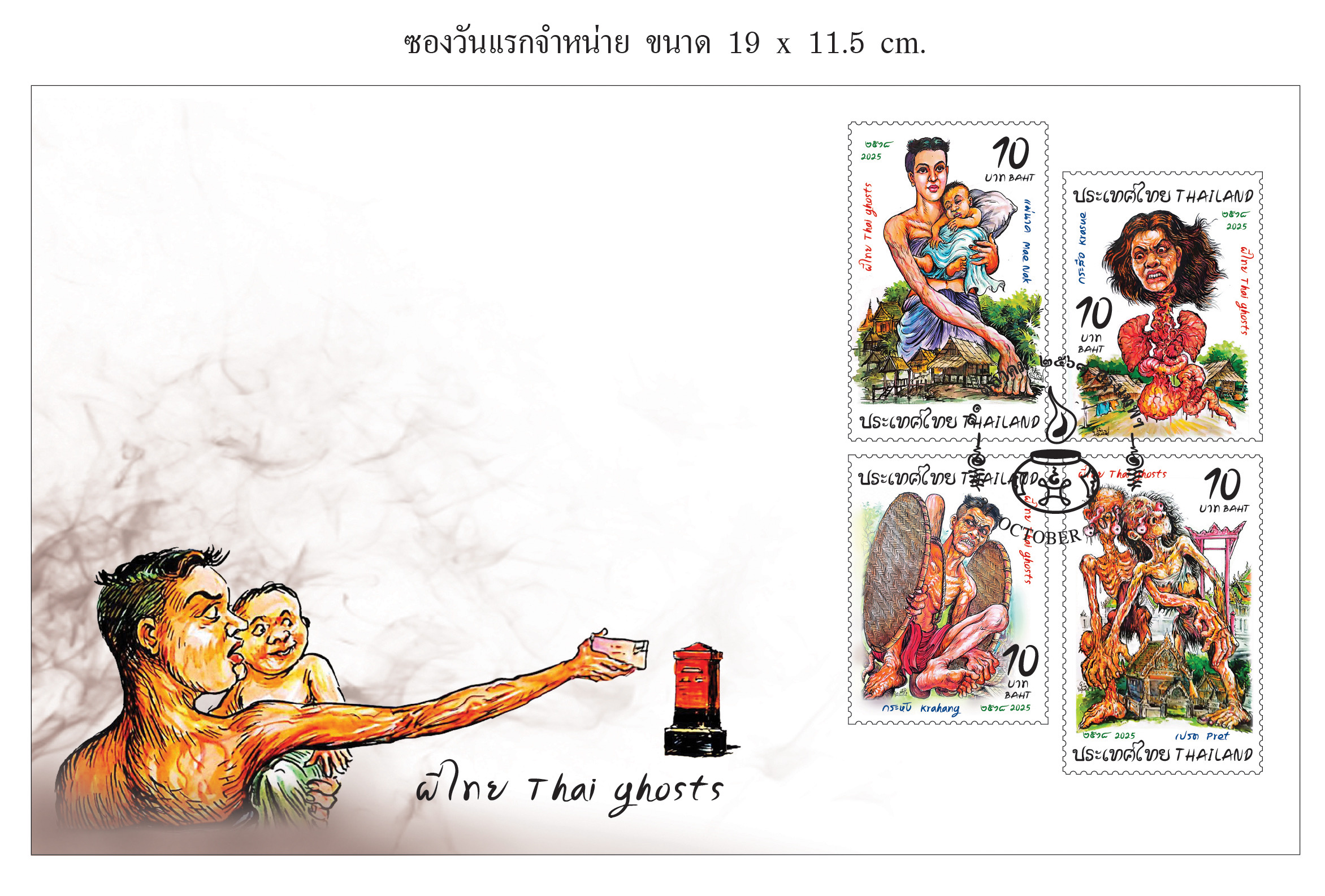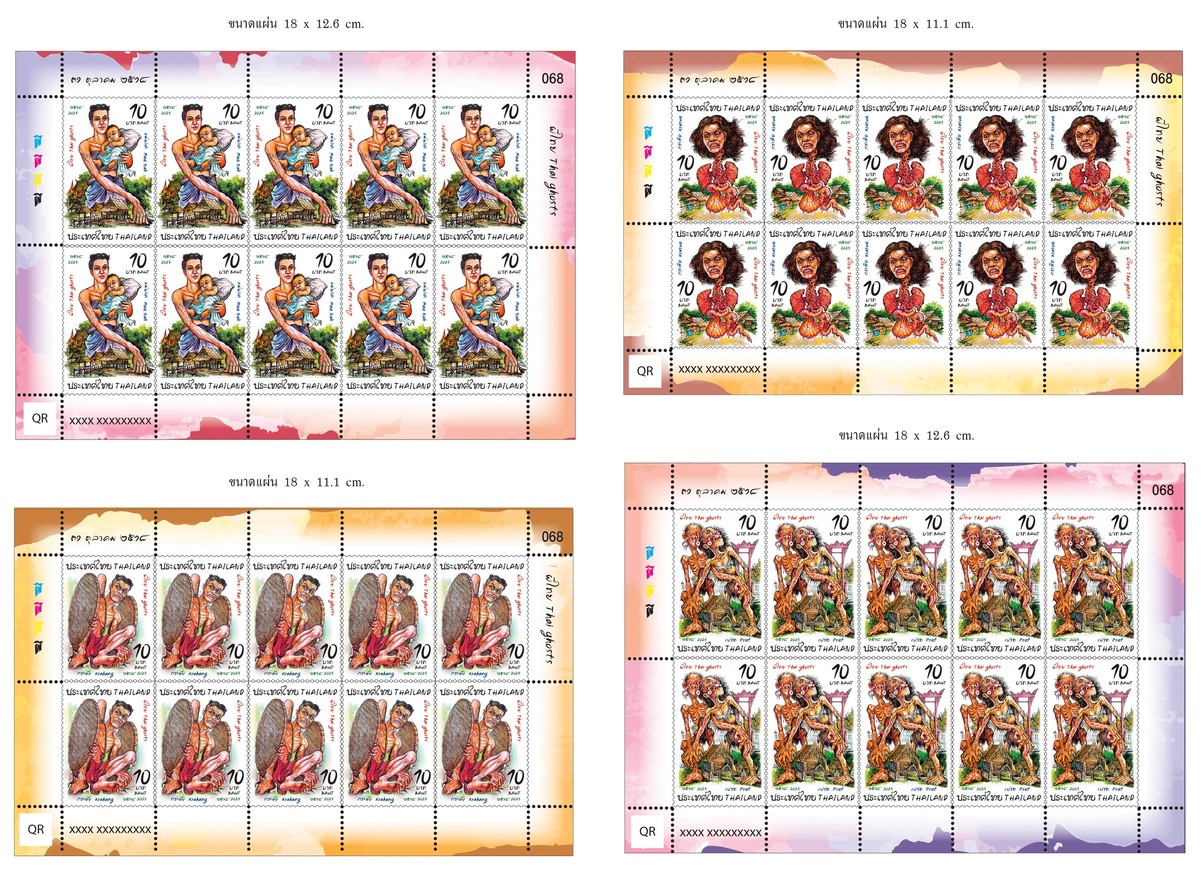 สำหรับความน่าสนใจของแสตมป์ชุดพิเศษ “แสตมป์ผีไทย” (Thai Ghosts) คือการหยิบยก “4 ผียอดนิยมของไทย” ที่อยู่ในใจคนไทยทุกยุคสมัยมาถ่ายทอดผ่านมุมมองใหม่ คือ แม่นาคพระโขนง ผีกระสือ ผีกระหัง และผีเปรต ตำนานความหลอนที่เคยทำให้คนหลับไม่ลงในวัยเด็ก วันนี้ได้ถูกปลุกให้กลายเป็น “Pop Icon” ที่เต็มไปด้วยเอกลักษณ์เฉพาะตัว โดยแสตมป์ผีไทยทั้งสี่ดวงไม่เพียงสะท้อนความเชื่อ ความกลัวผ่านเรื่องเล่าสืบต่อกันมาของผู้คน แต่ยังบ่งบอกถึงอารมณ์และจิตวิญญาณของสังคมไทยในแต่ละยุคจนมาเป็น “วัฒนธรรมร่วมสมัยในคราบตำนาน” ที่มีเสน่ห์ ไม่ต่างจาก แดร็กคูล่า (Dracula) แฟรงเกนสไตน์ (Frankenstein) หรือ แม่มด (Witch) ซึ่งต่างกลายเป็นสัญลักษณ์ของวัฒนธรรมตะวันตก โดย 4 ผีไทย ระดับเลเจนด์ในแสตมป์คอลเลกชันพิเศษนี้ถูกถ่ายทอดเรื่องราวและตีความผ่านลายเส้น ดังนี้