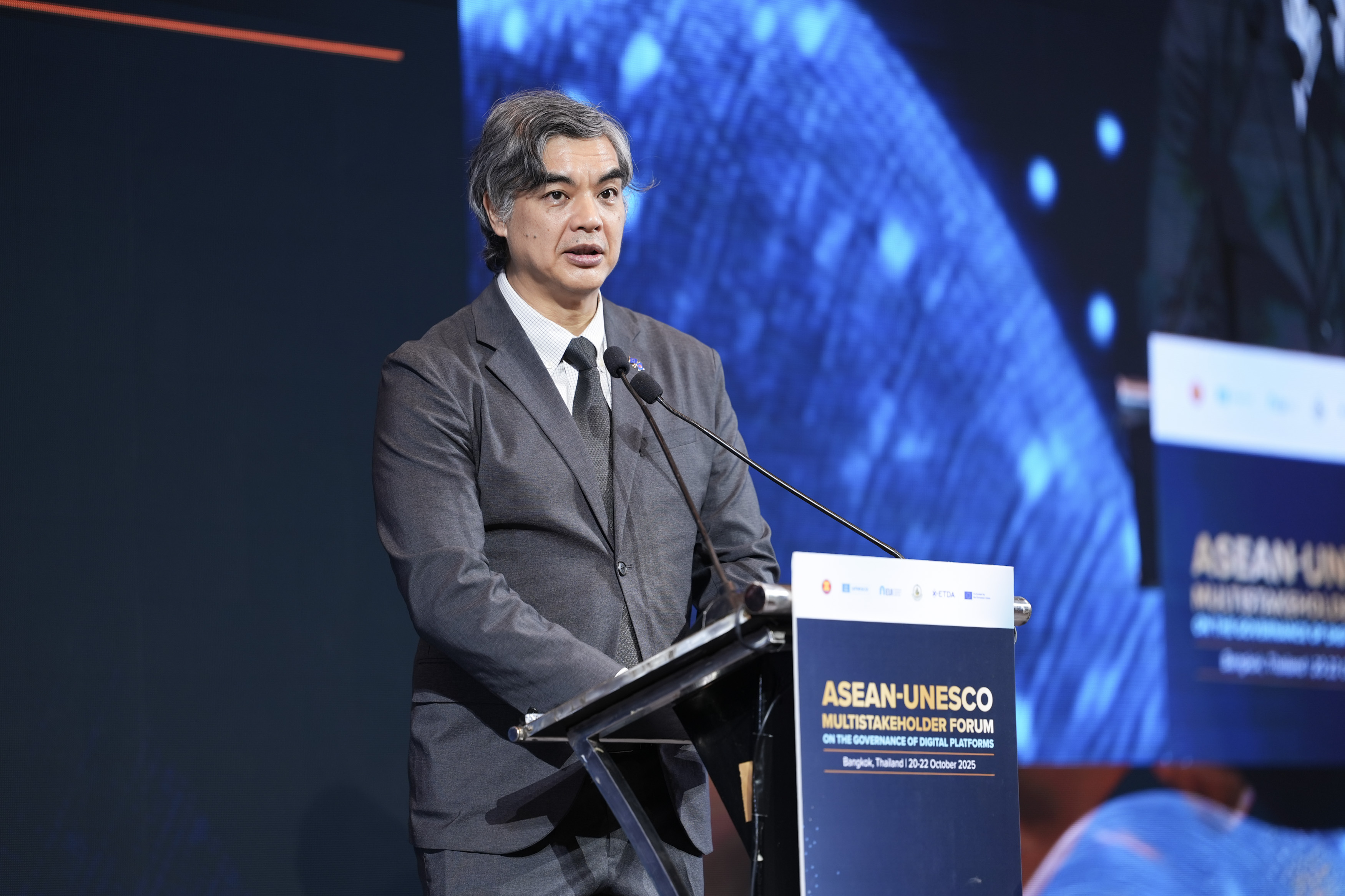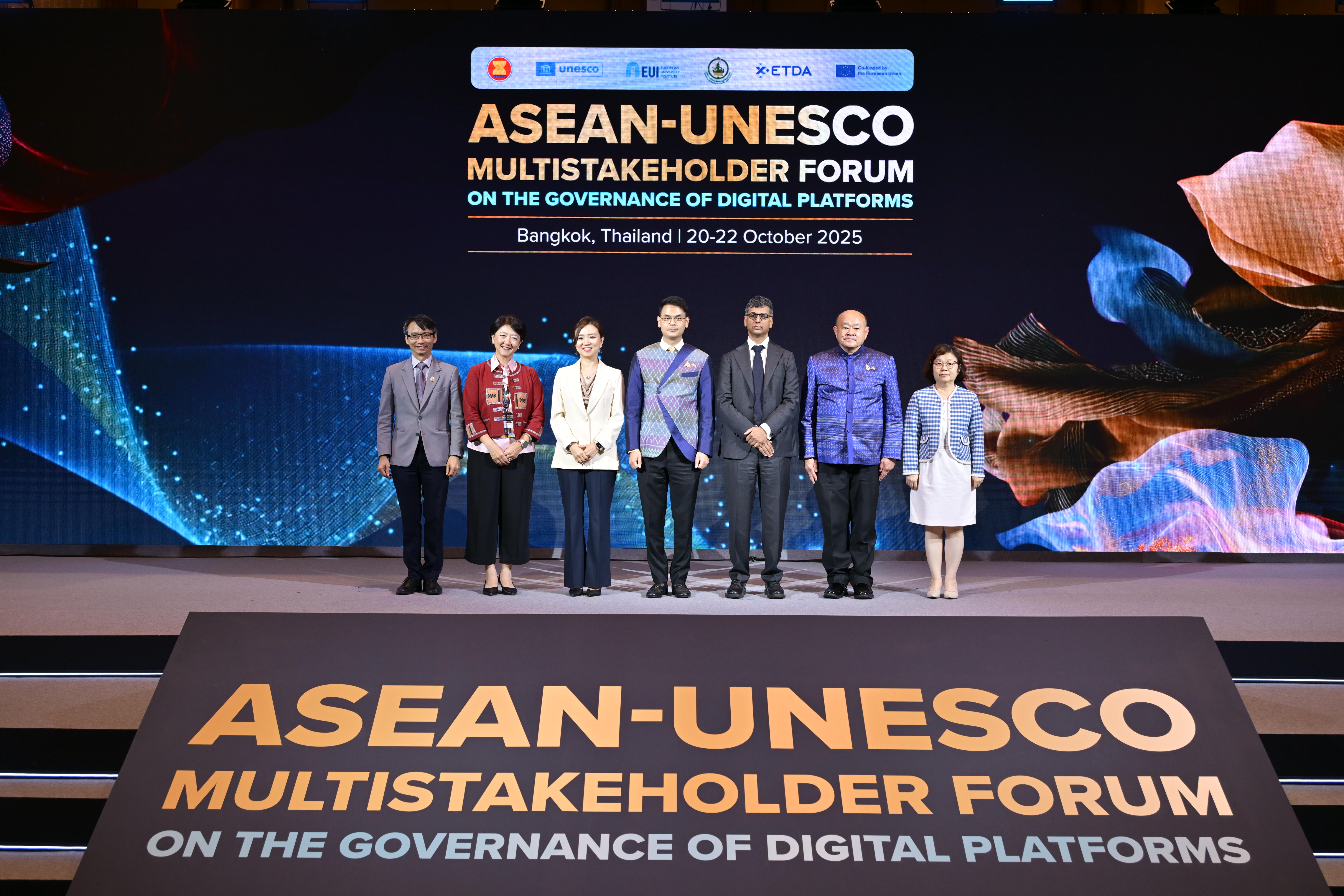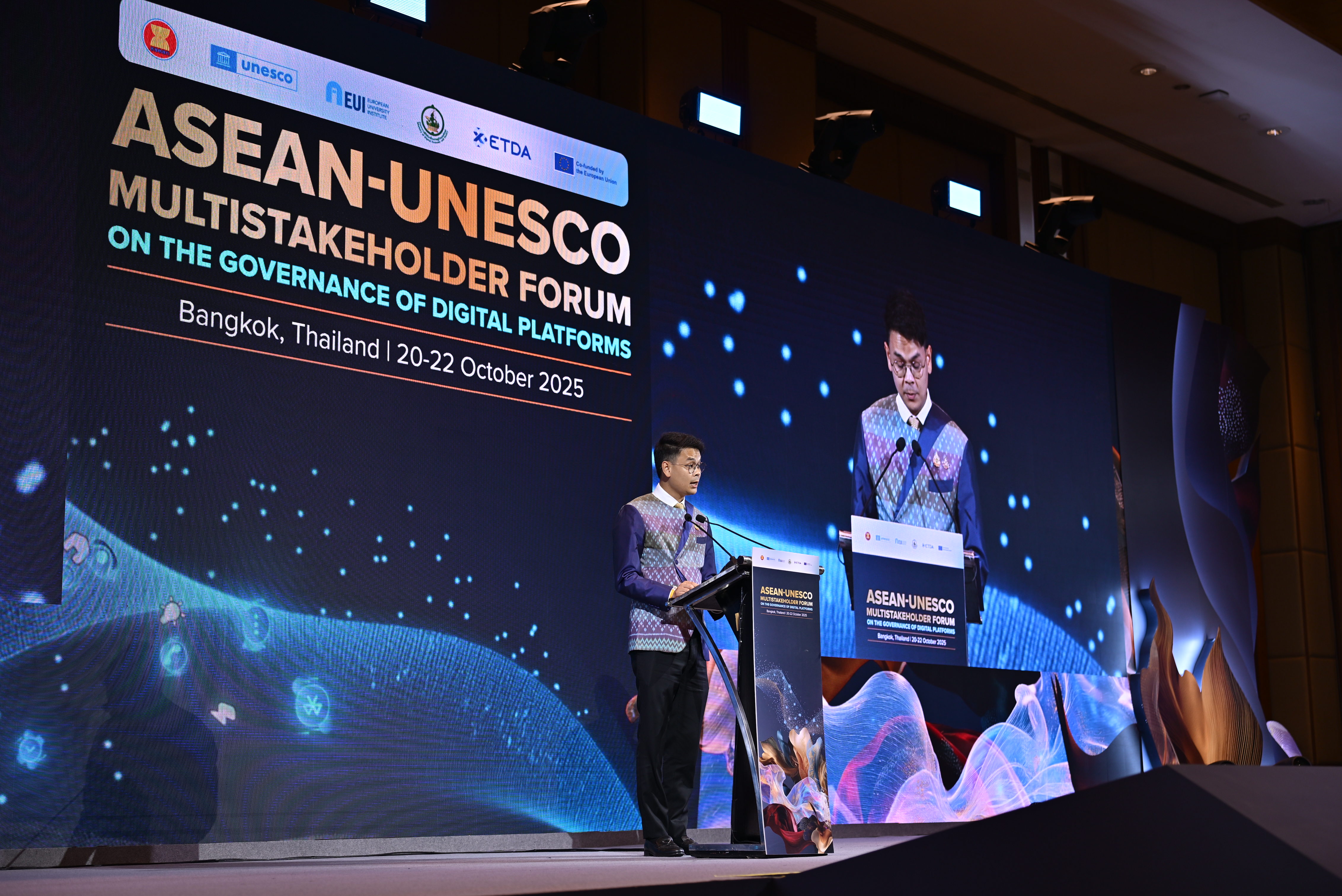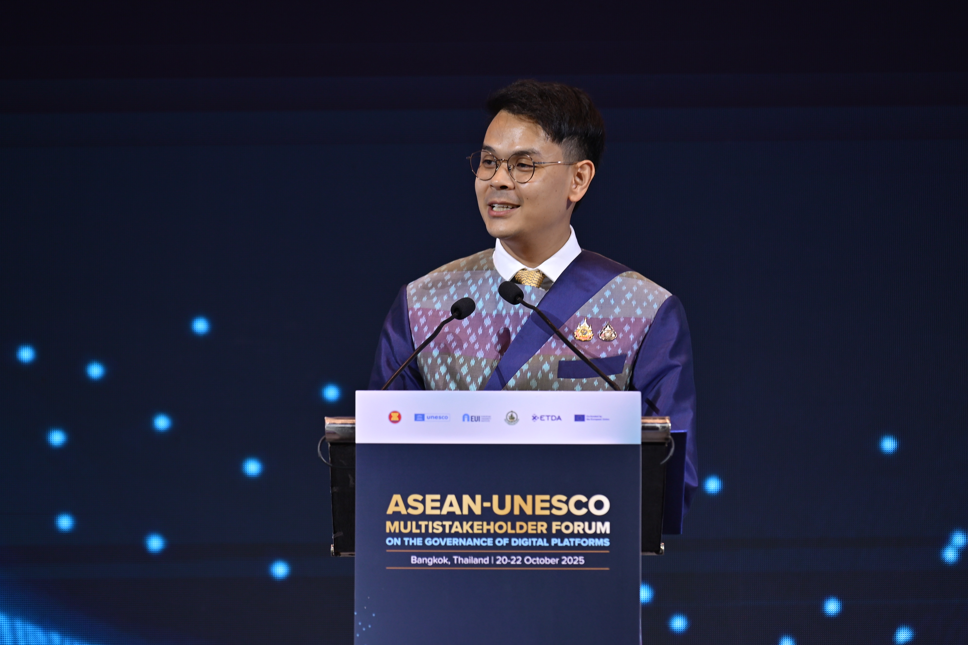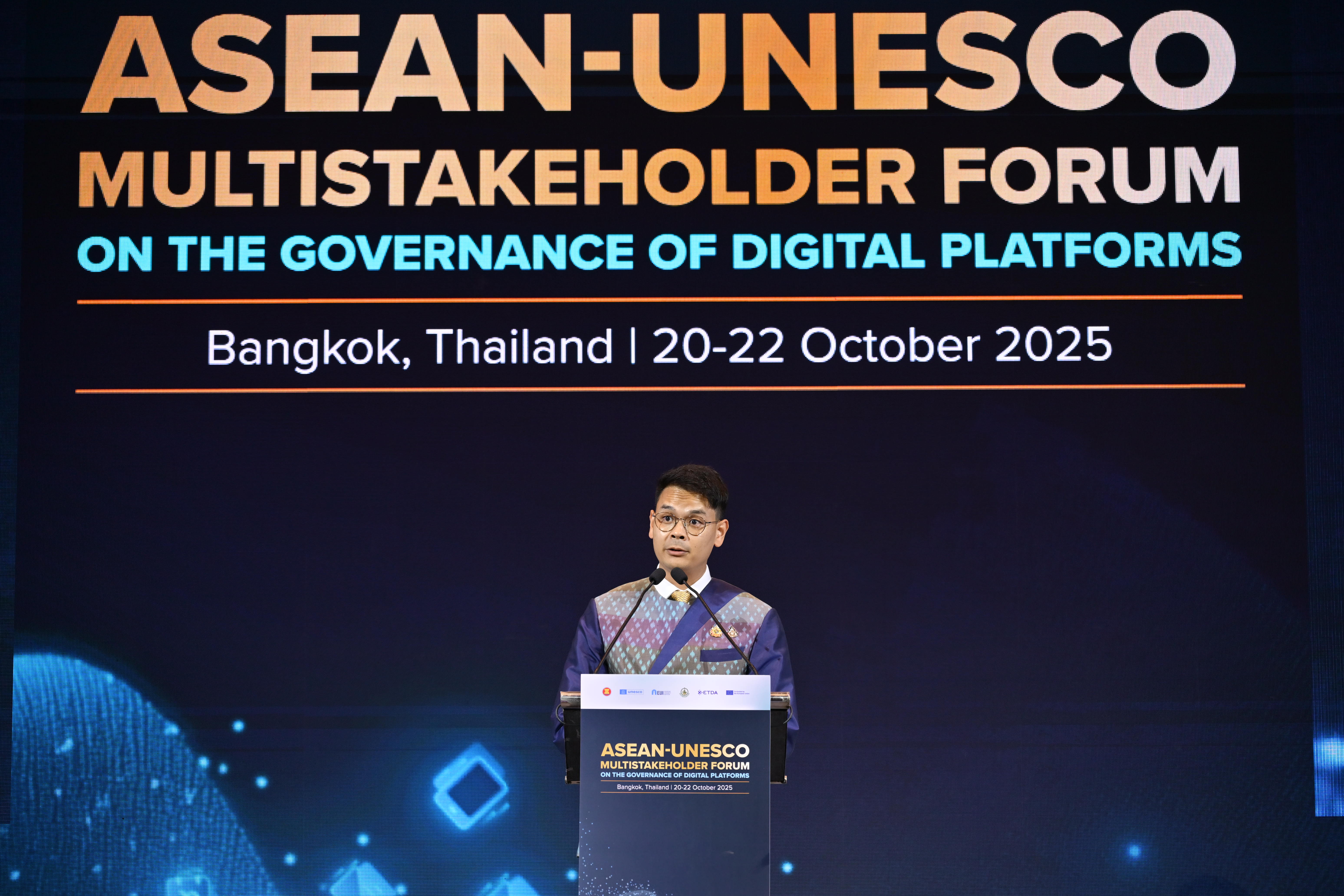 การประชุม ASEAN–UNESCO Multistakeholder Forum on the Governance of Digital Platforms ซึ่งจัดขึ้นเป็นเวลา 3 วัน (20–22 ตุลาคม 2568) ได้รวบรวมผู้เชี่ยวชาญระดับโลก องค์กรระหว่างประเทศ และตัวแทนจากหลายภาคส่วน เพื่อแลกเปลี่ยนมุมมองและประสบการณ์เชิงเปรียบเทียบภายใต้แนวคิดหลัก “Digital Governance for a Trusted Future” ในระหว่างการประชุม ผู้เข้าร่วมได้มีส่วนร่วมในการอภิปรายเชิงลึกในประเด็นสำคัญหลากหลายด้าน อาทิ กรอบความร่วมมือระดับโลกและระดับภูมิภาคด้านธรรมาภิบาลดิจิทัล, การส่งเสริมเศรษฐกิจดิจิทัลและการแข่งขันทางการตลาดอย่างเป็นธรรม, ความโปร่งใสและความรับผิดชอบของแพลตฟอร์มดิจิทัล, ความปลอดภัยออนไลน์และการคุ้มครองเด็ก, การกำกับดูแลปัญญาประดิษฐ์เชิงกำเนิด (Generative AI) และเทคโนโลยีเกิดใหม่, การเสริมพลังให้ผู้ใช้และการรู้เท่าทันสื่อและข้อมูล, ตลอดจนความร่วมมือของภาคประชาสังคมและระดับภูมิภาคเพื่อส่งเสริมสิทธิดิจิทัล