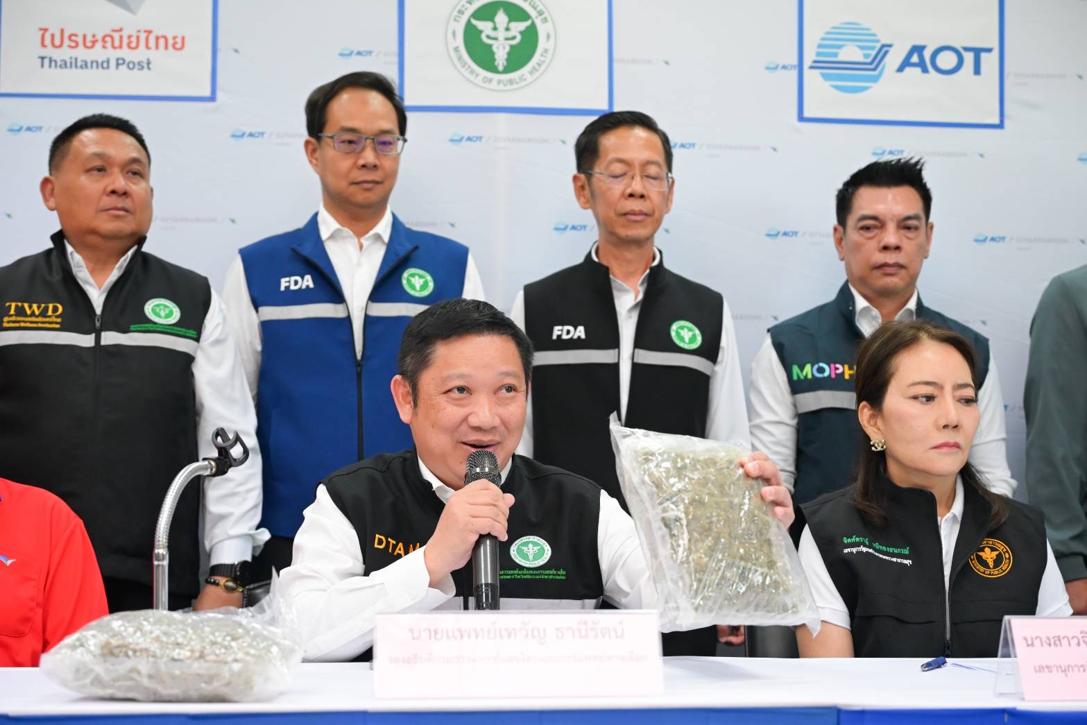 ด้าน จิตศ์ตราฎ์ หมีทองธนกรณ์ เลขานุการรัฐมนตรีว่าการกระทรวงสาธารณสุข และประธานคณะกรรมการปราบปราม การกระทำความผิดด้านกฎหมายของกระทรวงสาธารณสุข เปิดเผยว่า กระทรวงสาธารณสุข ได้แต่งตั้งคณะกรรมการร่วมแก้ปัญหาลักลอบส่งออกกัญชา ประกอบด้วยผู้แทนจากหน่วยงานหลักที่เกี่ยวข้องเป็นคณะกรรมการ พร้อมด้วยผู้แทนจากบริษัท ไปรษณีย์ไทย จำกัด เป็นกรรมการร่วมเพื่อป้องกันและปราบปรามการลักลอบส่งออกกัญชานอกราชอาณาจักร โดยมีการประชุมวางแผนและประสานงานแนวทางจัดการร่วมกับกรมการแพทย์แผนไทยและการแพทย์ทางเลือก หลังการประชุมคณะกรรมการปราบปรามการกระทำความผิดด้านกฎหมายของกระทรวงสาธารณสุขเมื่อ 14 ตุลาคม 2568 ณ สำนักงานคณะกรรมการอาหารและยา โดยมีมติให้เร่งรัดการบังคับใช้กฎหมาย พร้อมจัดทำแผนประชาสัมพันธ์ให้ประชาชนรับทราบถึงข้อห้ามในการส่งออกกัญชาโดยไม่ได้รับอนุญาต