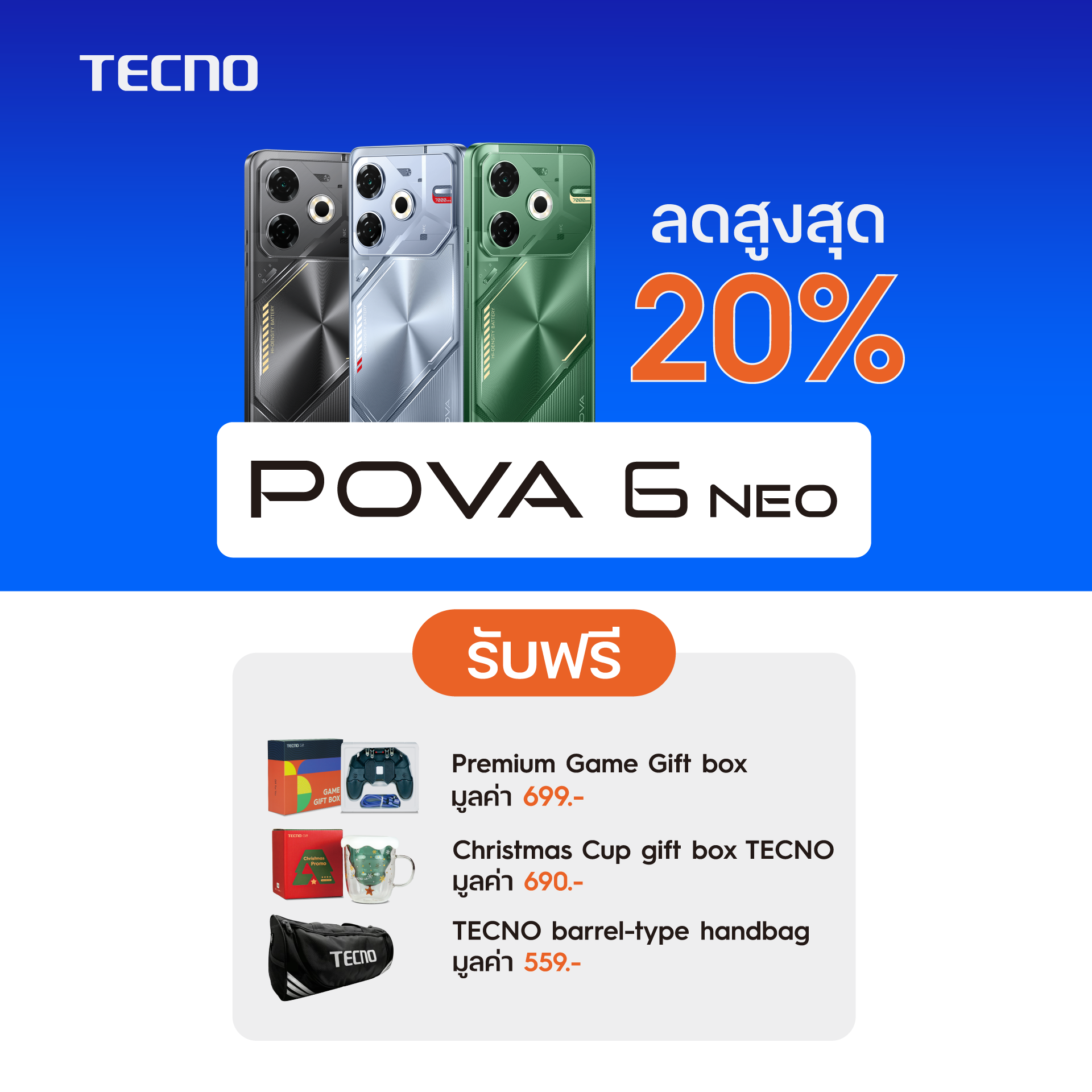 และ Advice ไม่ว่าจะเป็น TECNO POVA 6 NEO (ROM 256GB / RAM 8GB