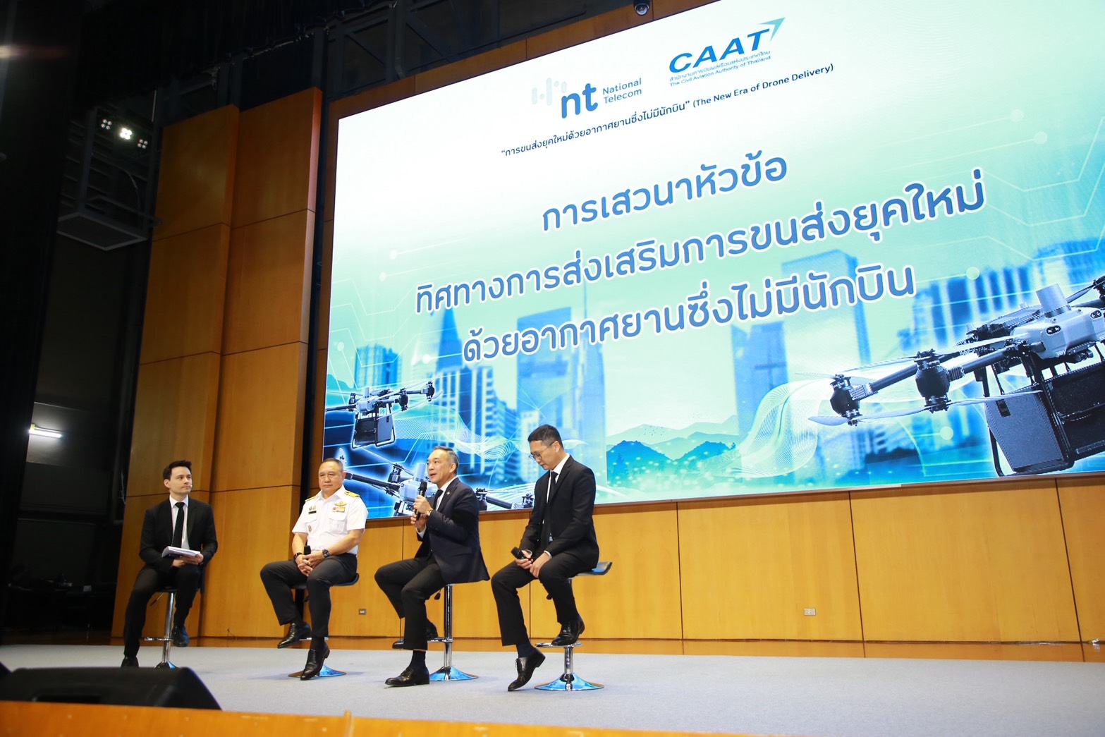 บริษัท โทรคมนาคมแห่งชาติ จำกัด (มหาชน) (NT) และ สำนักงานการบินพลเรือนแห่งประเทศไทย (CAAT) ร่วมกันจัดงานแถลงข่าว “การขนส่งทางอากาศยุคใหม่ด้วยโดรน” (The New Era of Drone Delivery) เพื่อส่งเสริมนวัตกรรมการนำโดรนมาใช้ในการขนส่งทางอากาศยุคใหม่ในภาคธุรกิจและกิจการต่าง ๆ พร้อมสาธิตรูปแบบการขนส่งและแพลตฟอร์มดิจิทัล สำหรับบริหารจัดการจราจรทางอากาศแบบครบวงจร โดยมี พิพัฒน์ รัชกิจประการ รองนายกรัฐมนตรีและรัฐมนตรีว่าการกระทรวงคมนาคม และ ไชยชนก ชิดชอบ รัฐมนตรีว่าการกระทรวงดิจิทัลเพื่อเศรษฐกิจและสังคม ร่วมเป็นประธานในการแถลงข่าว