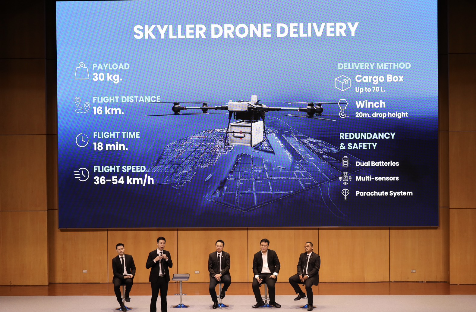 โดยมีแพลตฟอร์มบริหารจัดการจราจรทางอากาศแบบครบวงจร สามารถติดตามการบินโดรนแบบเรียลไทม์