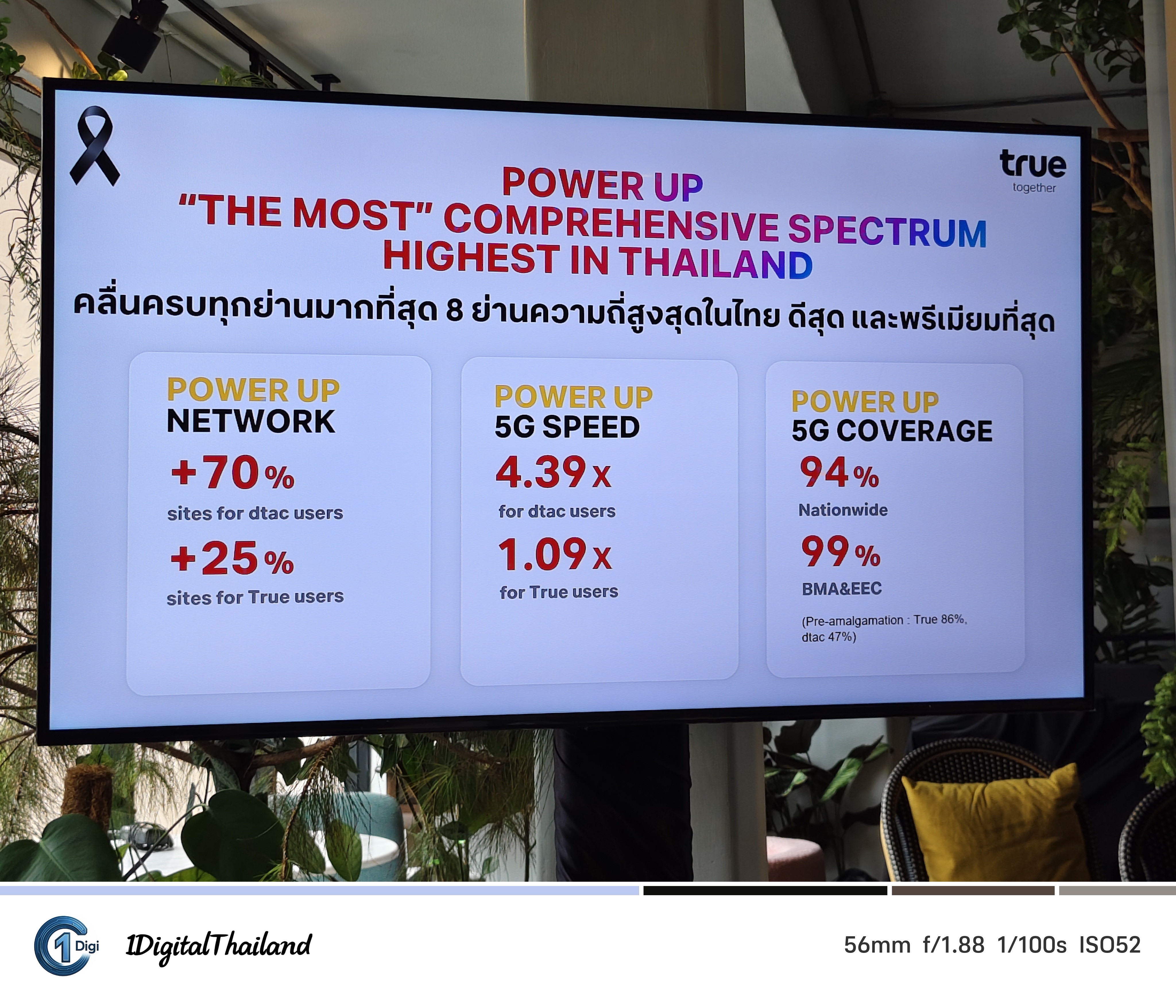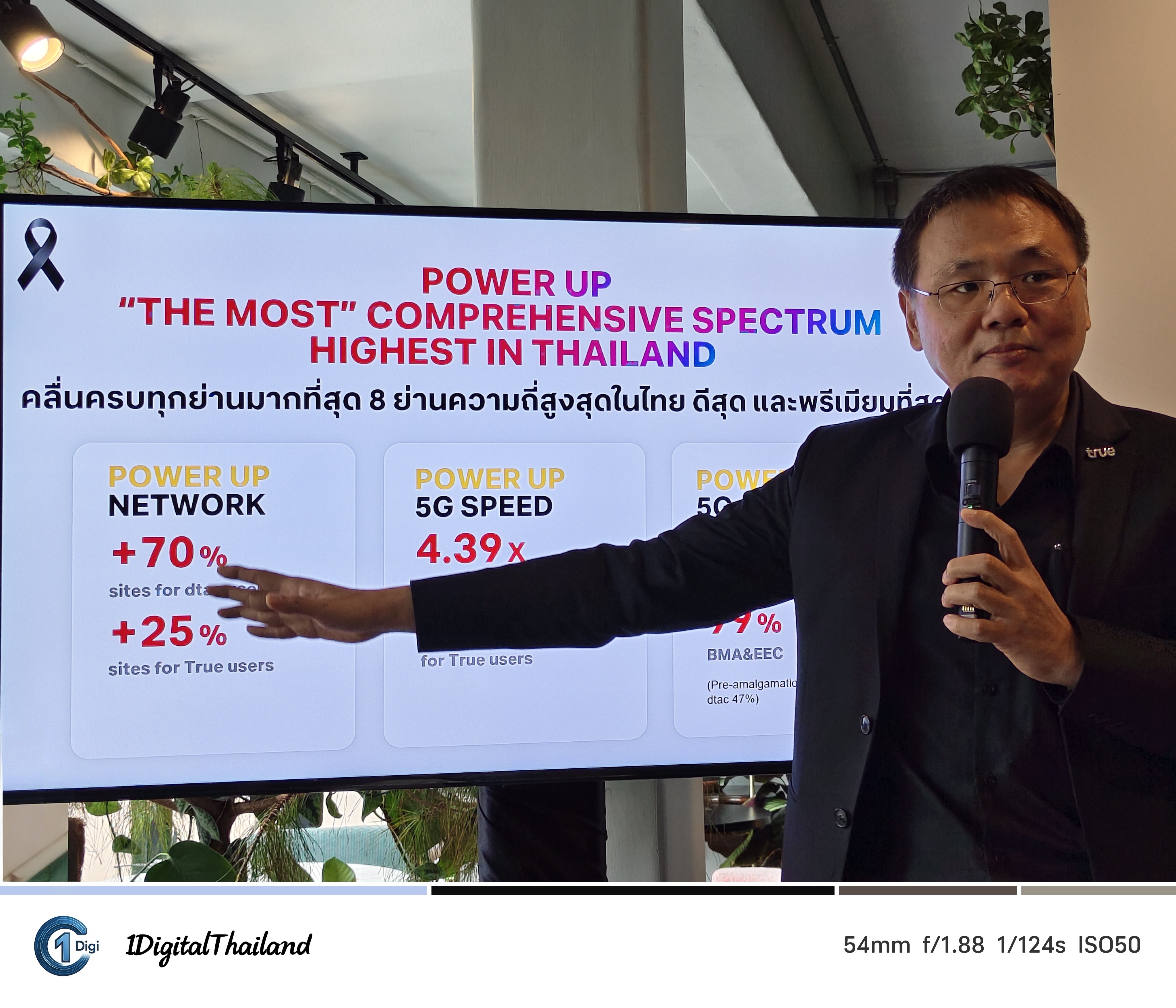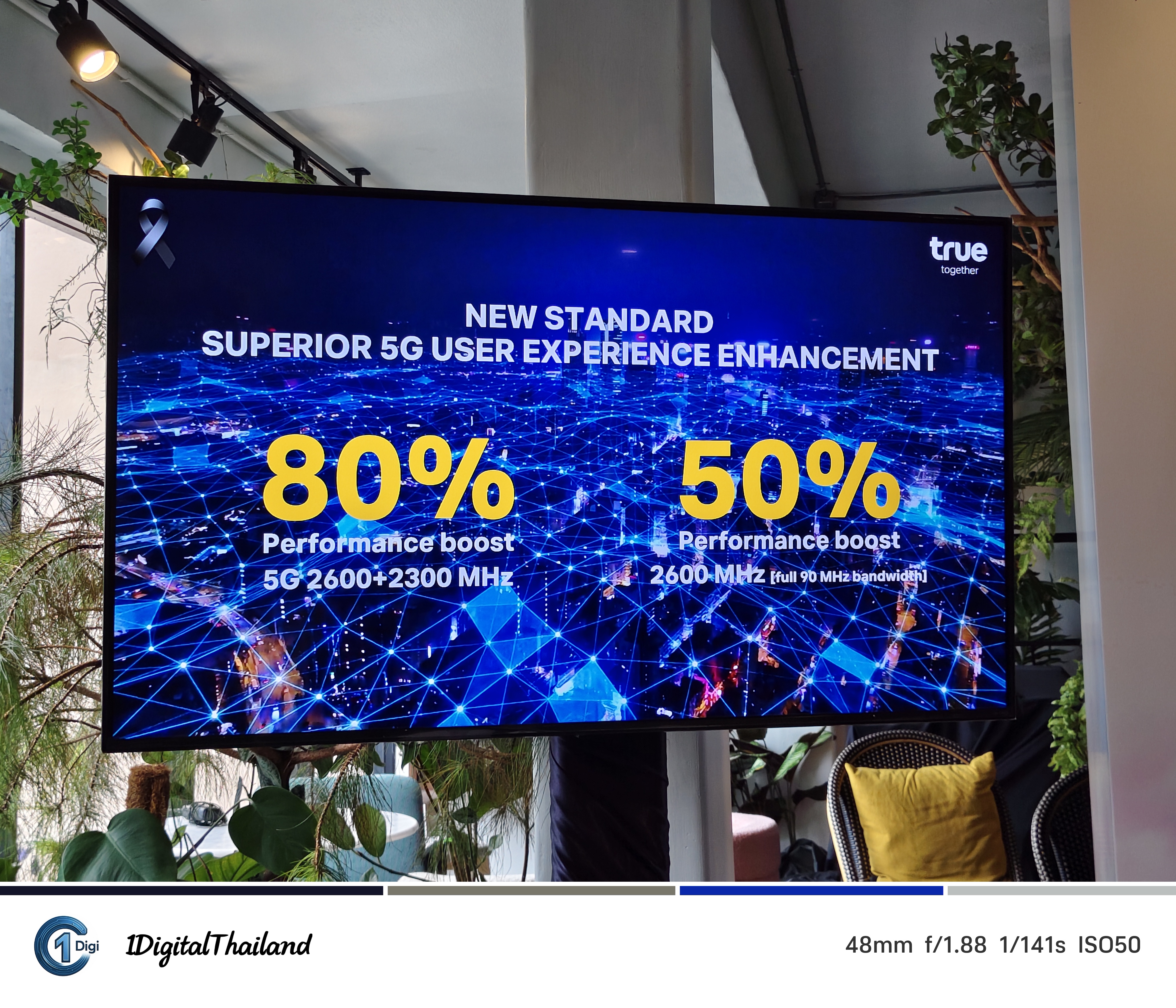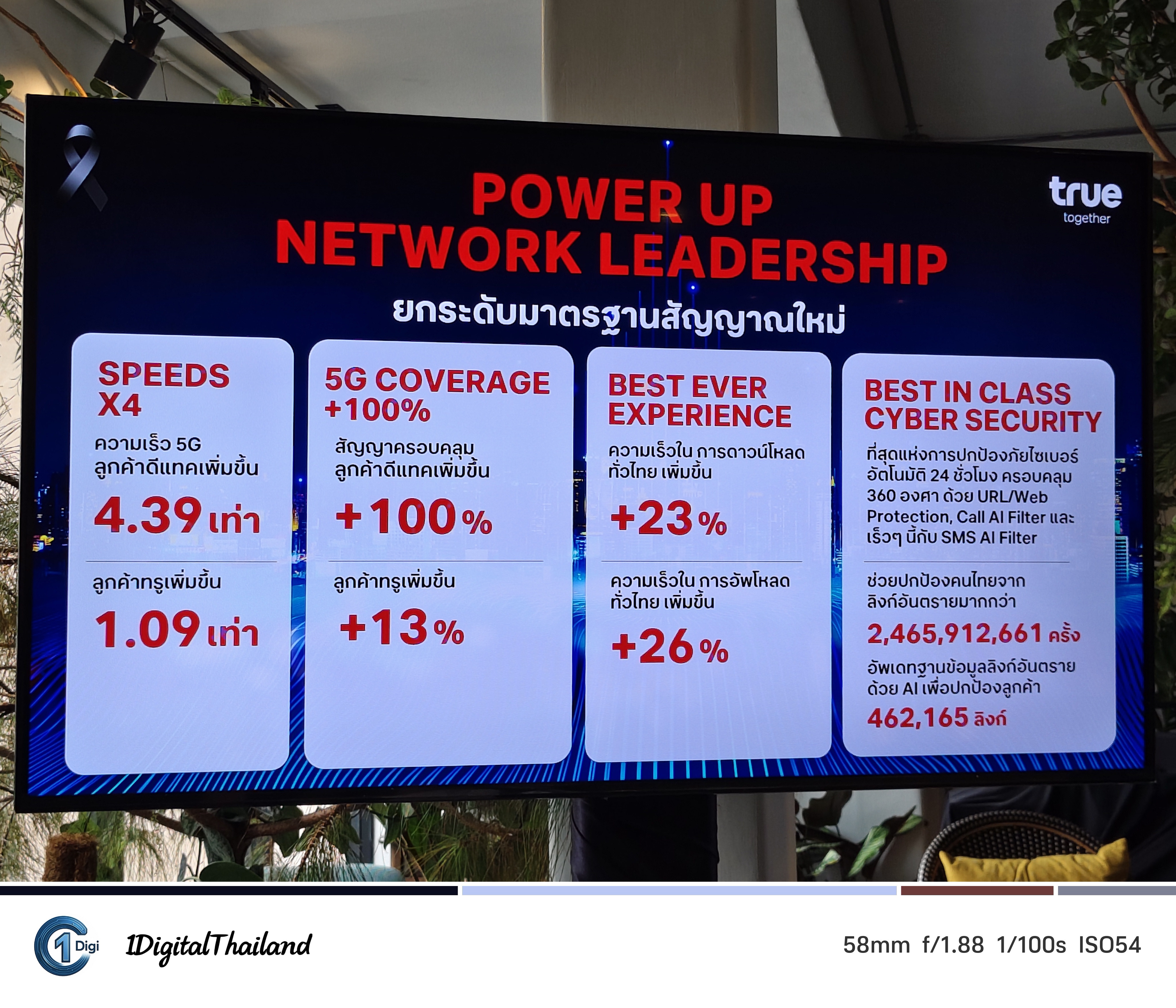 พร้อมกันนี้ ทรู คอร์ปอเรชั่น ยังได้ยกระดับมาตรฐาน 5G ด้วยการทดสอบ Proof of Concept (POC) การรวมคลื่น 2600 MHz และ 2300 MHz ซึ่งผลการทดสอบแสดงให้เห็นถึงประสิทธิภาพที่เหนือกว่าเดิมราว 80% ตอกย้ำภาพผู้นำเครือข่ายด้วยยุทธศาสตร์ 3 เสาหลัก ควบคู่ไปกับการเปิดตัวแนวคิด 'POWER UP NATION’S SMILE พร้อม! UP สัญญาณ UP ความสุข' เพื่อสร้างความมั่นใจและส่งมอบประสบการณ์ดิจิทัลที่ดีขึ้นให้กับคนไทย