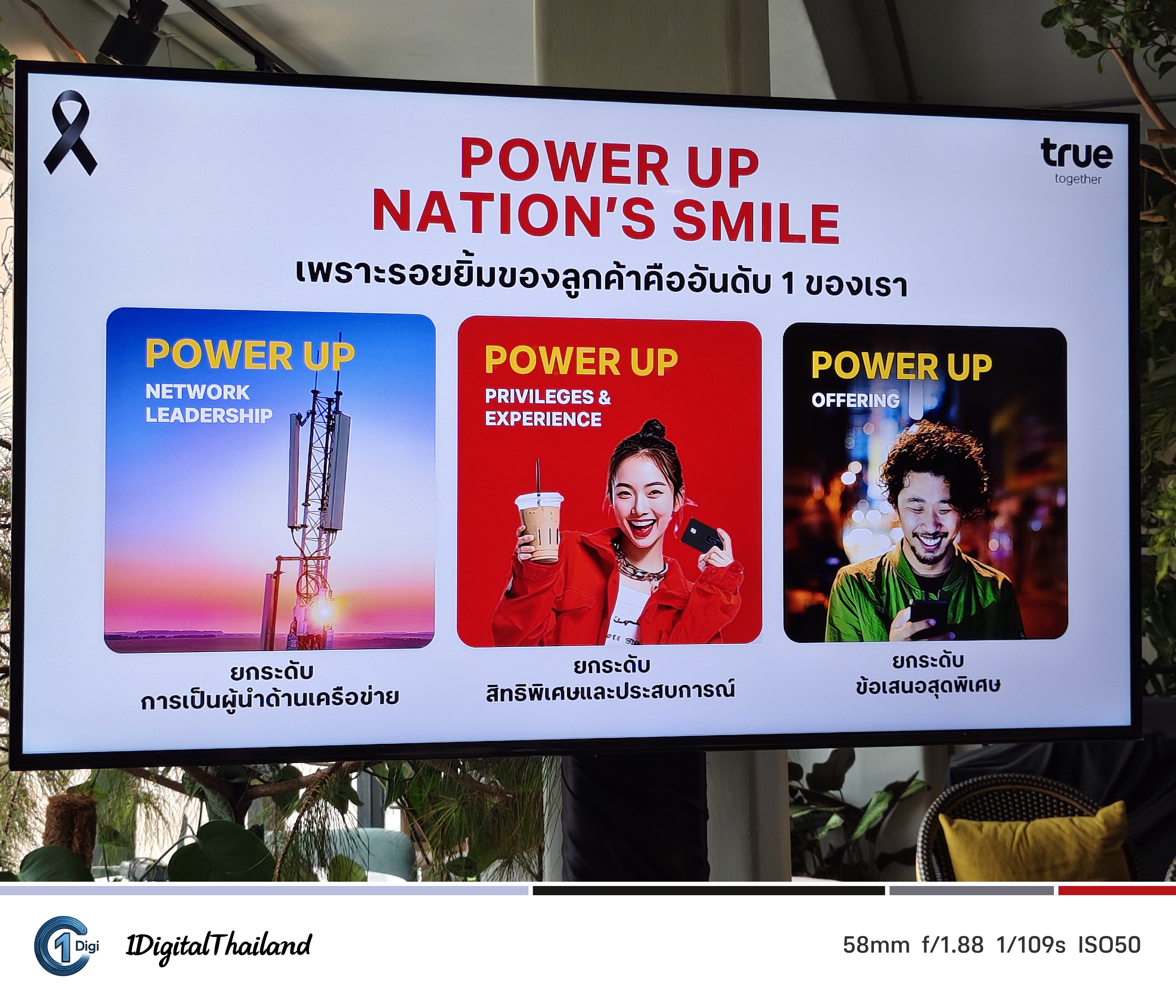 จากความสำเร็จในการควบรวมโครงข่าย กลุ่มทรูได้เปิดตัวแคมเปญใหม่ภายใต้แนวคิด "Power Up Nation Smile" (อัพสัญญาณ อัพความสุข) โดยเน้นย้ำว่ารอยยิ้มของลูกค้าคืออันดับหนึ่ง ปณิธานนี้มุ่งเน้นการใช้ประโยชน์จากโครงสร้างพื้นฐานของประเทศเพื่อสร้างคุณค่าให้กับทุกกลุ่มลูกค้าและสังคม