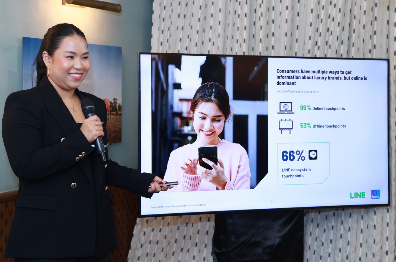 ศุภวดี จึงเจริญสุขยิ่ง ที่ปรึกษาธุรกิจสินค้าลักชัวรี LINE ประเทศไทย เผยอุตสาหกรรมลักชัวรีในไทยยังเติบโตเป็นอันดับต้นๆ ทั้งในเชิงมูลค่าการใช้จ่ายและการมีส่วนร่วมบนโลกดิจิทัล โดยเผยผลสำรวจจาก LINE ประเทศไทย ร่วมกับ IPSOS พบว่า 53% ของผู้บริโภคมีแนวโน้มจะใช้จ่ายกับสินค้าลักชัวรีมากขึ้น และกว่า 59% มีแนวโน้มซื้อสินค้าผ่านช่องทางออนไลน์ ขณะเดียวกัน 55% ของผู้บริโภคไทยติดตามแบรนด์ลักชัวรีบน LINE Official Account (LINE OA) มากขึ้นเมื่อเทียบกับปีก่อน และคาดการณ์ว่าในปี 2025 ภาพรวมการใช้จ่ายจากแบรนด์ลักชัวรีบนแพลตฟอร์ม LINE จะเติบโตสูงขึ้น 15% นอกจากนี้ ยังพบอินไซต์พฤติกรรมและทิศทางการเลือกซื้อสินค้าลักชัวรีของผู้บริโภคไทยที่เปลี่ยนแปลงไปอย่างมีนัยสำคัญ ไม่ว่าจะเป็น