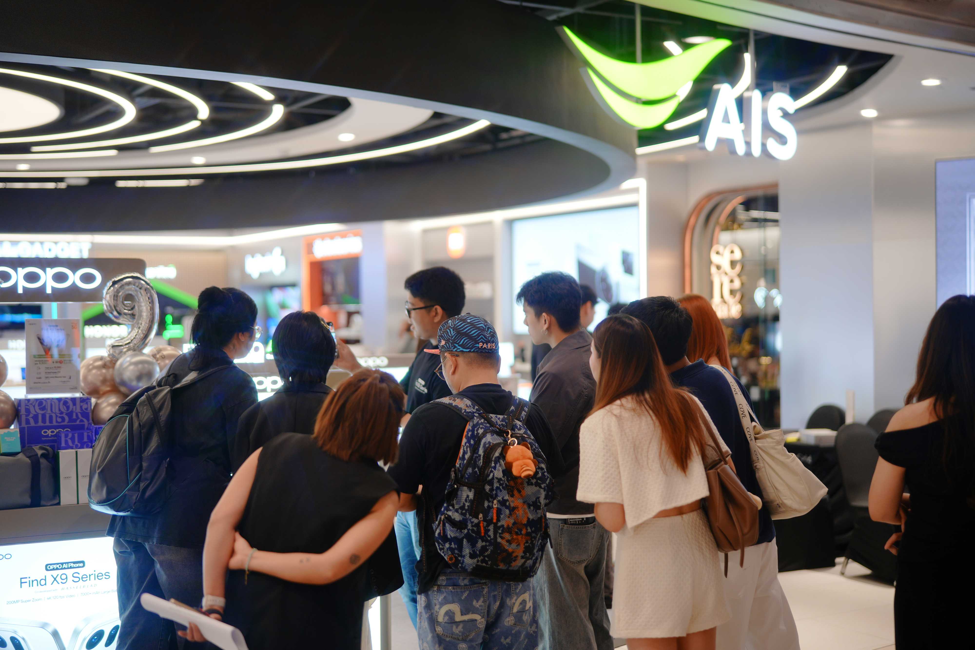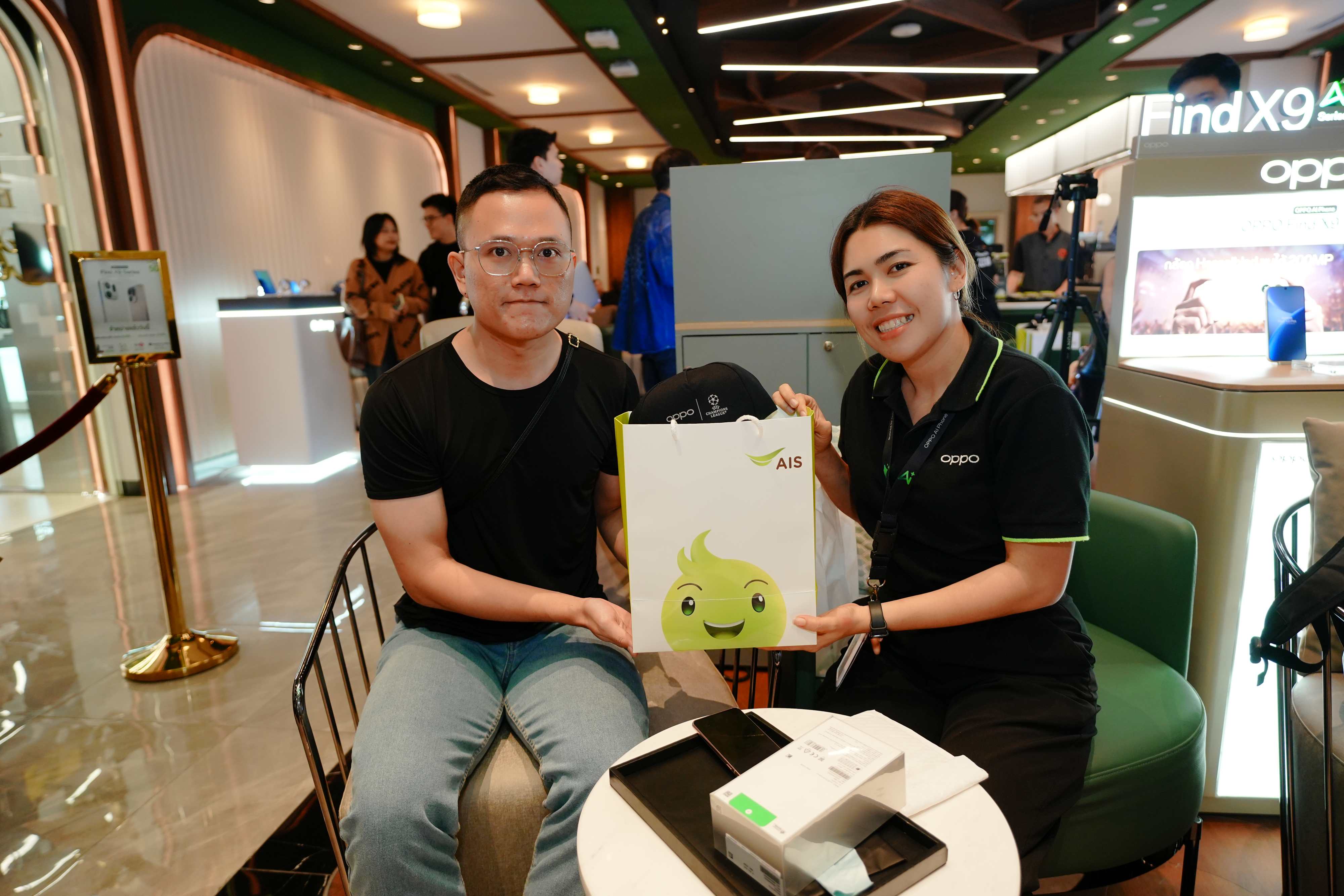 AIS นำโดย ประพัฒน์ เสียงจันทร์ หัวหน้าคณะผู้บริหารด้านธุรกิจค้าปลีก ผนึกกำลัง OPPO นำโดย ชานนท์ จิรายุกุล ประธานกรรมการอาวุโสฝ่ายบริหาร แบรนด์สมาร์ทโฟนระดับโลก เดินหน้ามอบประสบการณ์เหนือระดับให้ลูกค้า AIS ที่จองเครื่อง “OPPO Find X9 Series” ล่วงหน้า ได้สัมผัสสมาร์ทโฟนเรือธงรุ่นใหม่ล่าสุดจาก OPPO เป็นกลุ่มแรกก่อนใคร! พร้อมมอบโปรโมชันสุดพิเศษให้ลูกค้า AIS เมื่อซื้อ OPPO Find X9 Series สมาร์ทโฟนที่มาพร้อมพลังซูมระดับเทพ “ซูมดีทุกคอนเสิร์ต” รุ่นล่าสุด อาทิ รับส่วนลดสูงสุด 6,900 บาทเมื่อซื้อเครื่องพร้อมแพ็กเกจ, นำเครื่องเก่าแลกใหม่ รับส่วนลดเพิ่มสุดคุ้ม สูงสุด 10,000 บาท, ใช้เอไอเอสพอยท์ 10 คะแนน แลกรับส่วนลดซื้อเครื่องเปล่าไม่ติดสัญญาสูงสุด 3,000 บาท, รับสิทธิพิเศษชมความบันเทิงผ่าน AIS PLAY ที่รวมที่สุดแห่งความบันเทิงและกีฬา ดูพรีเมียร์ลีกสด ครบทุกแมตช์ นาน 3 เดือน, รับสิทธิ์ชมคอนเทนต์แบบไม่มีโฆษณาคั่น YouTube Premium ฟรี! 2 เดือน, รับสิทธิ์ฟังเพลงที่ชอบผ่าน Spotify Premium แบบไม่มีสะดุด นาน 4 เดือน, AIS Care+ ฟรี! 1 เดือน แพ็กเกจดูแลเครื่องทุกกรณี, เมื่อซื้อสินค้าผ่าน AIS Shop ผ่อน 0% นานสูงสุด 36 เดือน หรือรับเครดิตเงินคืน และ เมื่อซื้อสินค้าผ่าน AIS Online Store ผ่อน 0% นานสูงสุด 24 เดือน นอกจากนี้ยังได้รับของแถมแบบจัดเต็ม