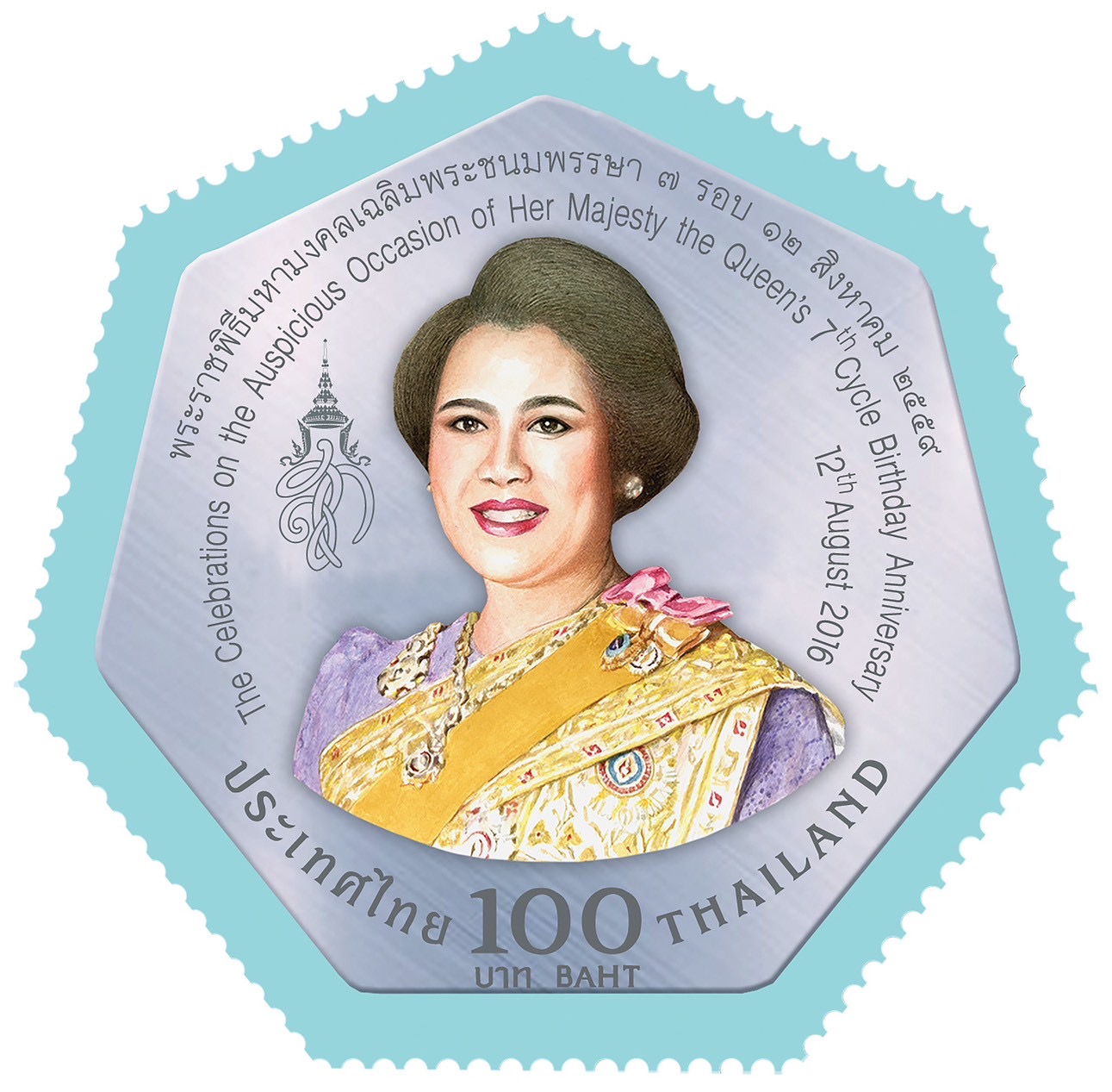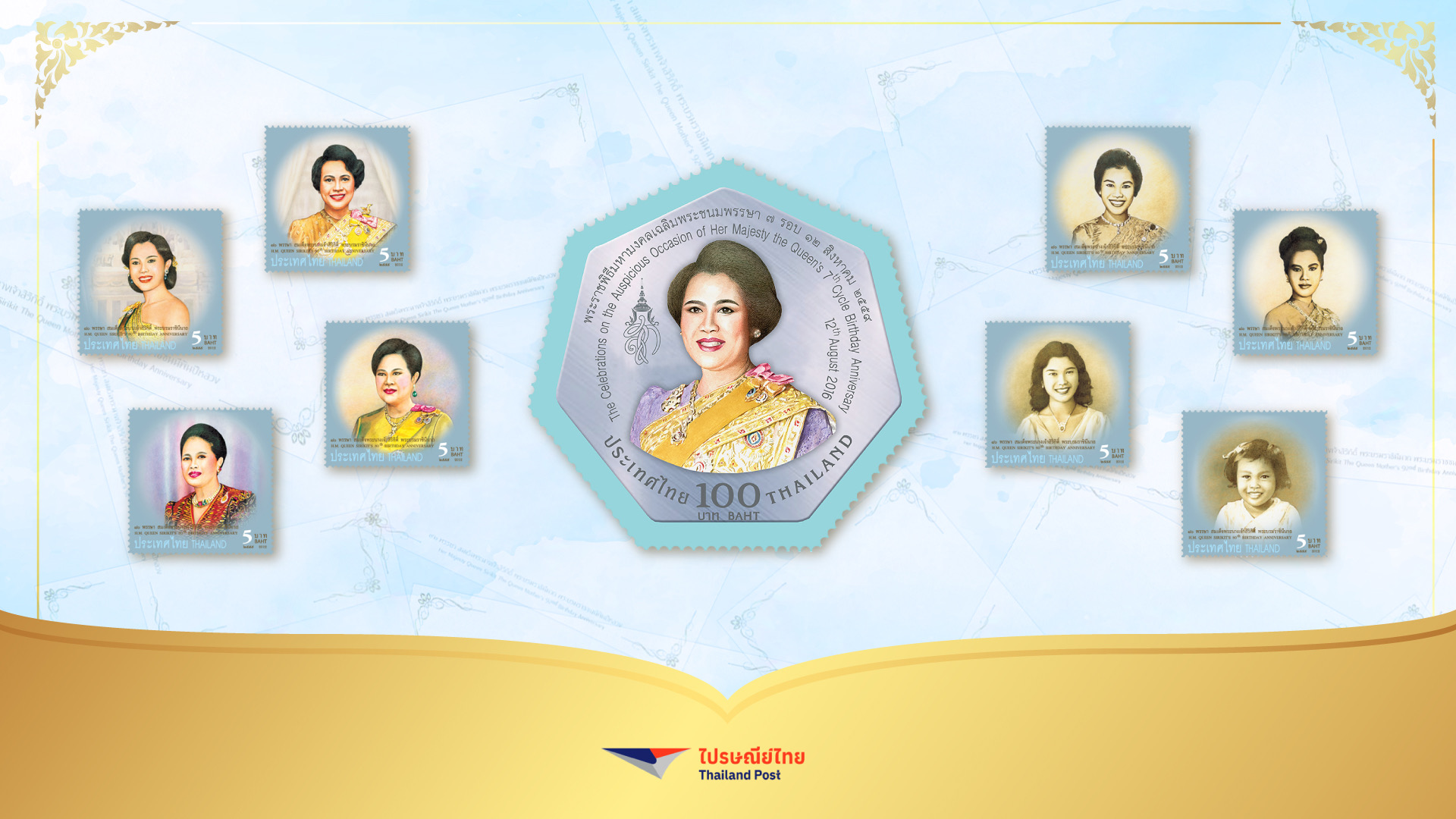 หนึ่งในชุดแสตมป์เฉลิมพระเกียรติที่ทรงคุณค่ายิ่ง คือ “แสตมป์ทองเฉลิมพระชนมพรรษา 7 รอบ ครบ 84 พรรษา” ซึ่งจัดพิมพ์เป็นที่ระลึก สมเด็จพระนางเจ้าสิริกิติ์ พระบรมราชินีนาถ พระบรมราชชนนีพันปีหลวงเมื่อวันที่ 12 สิงหาคม พ.ศ. 2559 ถือเป็นหนึ่งในชุดที่งดงามและทรงคุณค่าที่สุด โดดเด่นด้วยรูปทรง 7 เหลี่ยม สื่อถึงพระชนมายุ ครบ 7 รอบ ใช้เทคนิคการพิมพ์ฟอยล์ทองคำ 22 กะรัต พร้อมปั๊มนูนด้วยระบบพิเศษ แสดงพระบรมฉายาลักษณ์สมเด็จพระนางเจ้าสิริกิติ์ พระบรมราชินีนาถ พระบรมราชชนนีพันปีหลวง บนพื้นโทนฟ้าเปล่งประกายงดงามเป็นเอกลักษณ์ แสตมป์แต่ละดวงมีมูลค่า100 บาท และจำหน่ายพร้อมซองวันแรกจำหน่ายราคา 117 บาท ผลิตจำกัดจำนวนเพียง 500,000 ชุดทั่วประเทศเท่านั้น