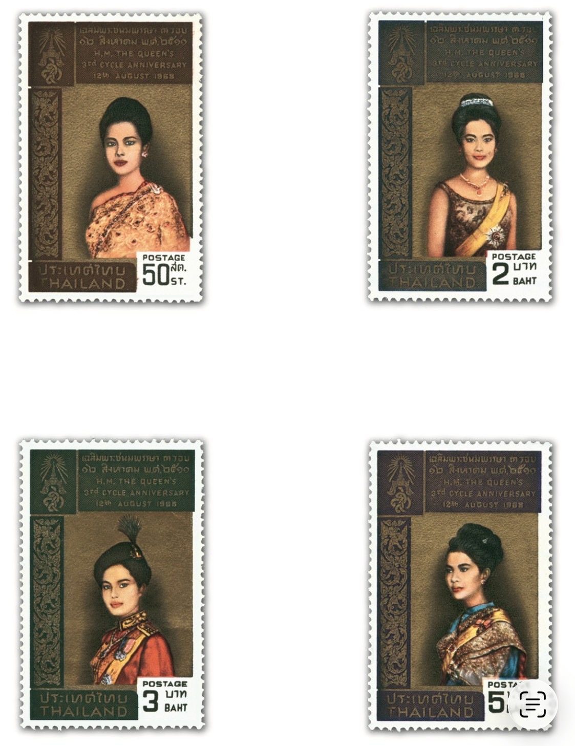 แสตมป์หลายชุดได้บันทึกพระราชกรณียกิจเหล่านี้ไว้อย่างงดงาม สะท้อนบทบาทของ “ราชินีแห่งผ้าไหมไทย” ผู้ทรงเชิดชูอัตลักษณ์ไทยให้แผ่ไพศาลไปทั่วโลก