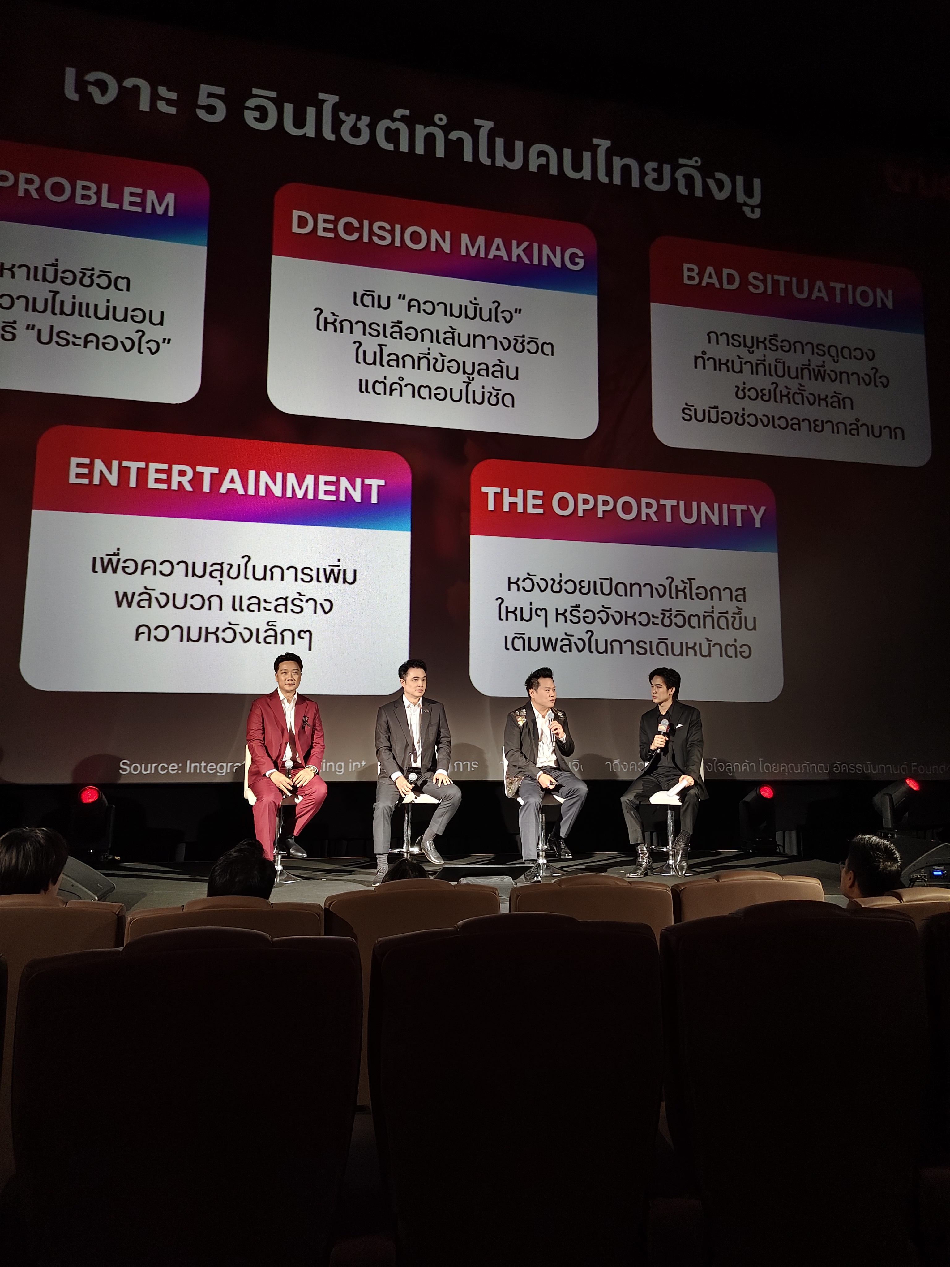 โอลิเวอร์ กิตติพงษ์ วีระเตชะ หัวหน้าคณะผู้บริหารด้านแบรนด์และมีเดีย บมจ. ทรู คอร์ปอเรชั่น กล่าวถึงปรากฏการณ์นี้ว่า พลังความเชื่อด้านมงคลหรือมูเตลูกำลังก้าวมาเป็นหนึ่งในแรงขับเคลื่อนสำคัญของชีวิตคนไทยในยุคปัจจุบัน จากผลวิจัยพบว่า 88% ของคนไทยเชื่อเรื่องมูเตลู และปรากฏการณ์นี้โดดเด่นอย่างยิ่งในกลุ่มคนรุ่นใหม่ โดยเฉพาะ Gen Z ที่มี Engagement สูงที่สุดถึง 50% ตามมาด้วย Gen Y 26% และ Gen X 14% ข้อมูลนี้แสดงให้เห็นว่าความเชื่อไม่ใช่เรื่องไกลตัว แต่ได้กลายเป็นพลังบวกที่หลอมรวมอยู่ในไลฟ์สไตล์ยุคดิจิทัลอย่างลงตัว