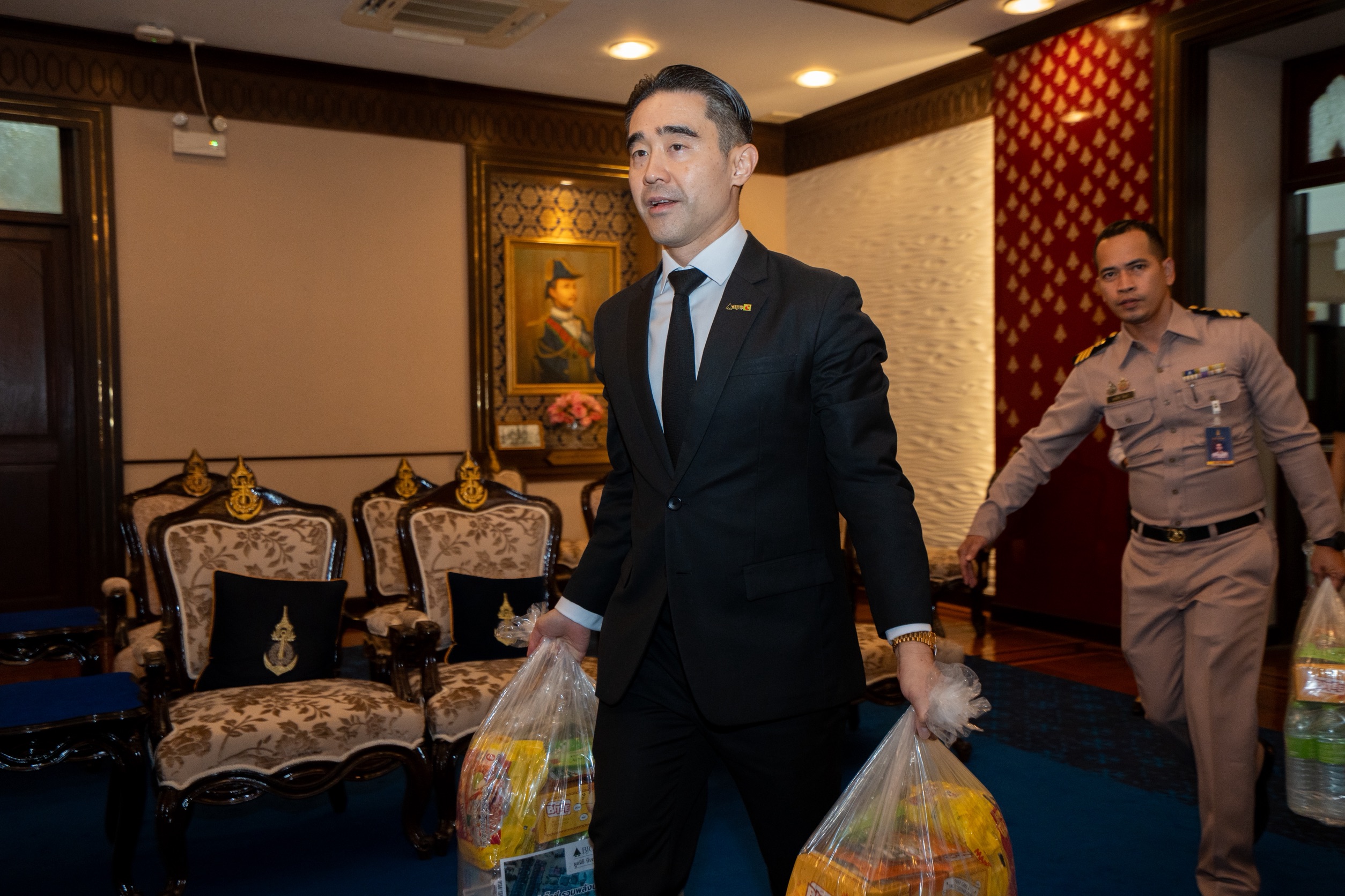 อัศวิน เตชะเจริญวิกุล ยังได้เดินทางไปส่งมอบถุงยังชีพ จำนวน 200 ชุด ให้แก่ กองทัพเรือไทย