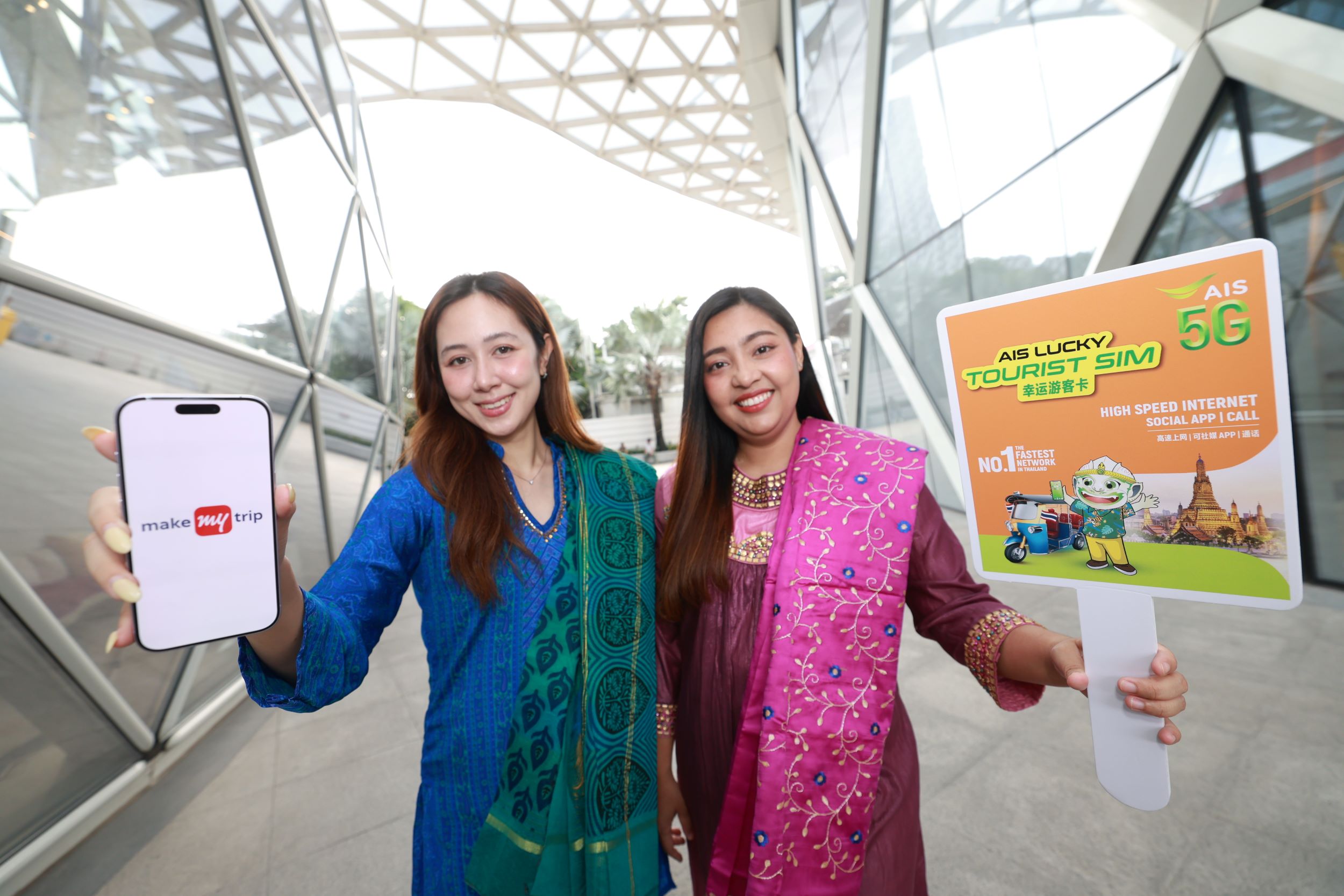 AIS 5G ตอกย้ำความเป็นผู้นำเครือข่ายอันดับ 1 ของประเทศไทย จับมือกับ MakeMyTrip แพลตฟอร์ม OTA ด้านบริการจองที่พักและการท่องเที่ยวชั้นนำของอินเดีย ร่วมเดินหน้าขับเคลื่อนอุตสาหกรรมท่องเที่ยวไทย ผสานพลังสองผู้นำด้านการสื่อสารและการท่องเที่ยว ยกระดับประสบการณ์เดินทางแบบครบวงจร สำหรับนักท่องเที่ยวอินเดียที่จองโรงแรมผ่านเว็บไซต์หรือแอปพลิเคชัน MakeMyTrip และเดินทางมาท่องเที่ยวในประเทศไทย ตั้งแต่วันนี้ – 31 ธันวาคม 2568 จะได้รับบัตรกำนัลเพื่อแลกรับ AIS TOURIST SIM ฟรี ที่เคาน์เตอร์ AIS ณ ท่าอากาศยานสุวรรณภูมิ เพื่อเชื่อมต่ออินเทอร์เน็ตผ่านเครือข่าย AIS 5G ที่เร็วที่สุดในไทยได้ทันทีเมื่อเดินทางมาถึงและสื่อสารได้เต็มอิ่มตลอดทริป ด้วยบริการอินเทอร์เน็ต 5G/4G, แอปพลิเคชัน Whatsapp และ AIS SUPER WiFi ไม่จำกัด รวมไปถึงบริการโทรทั้งในและข้ามประเทศ