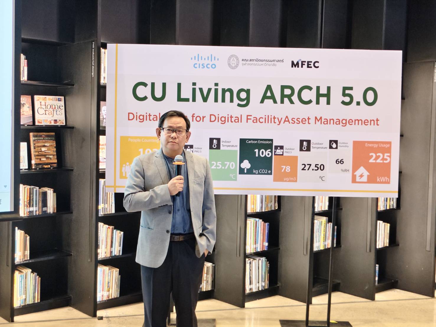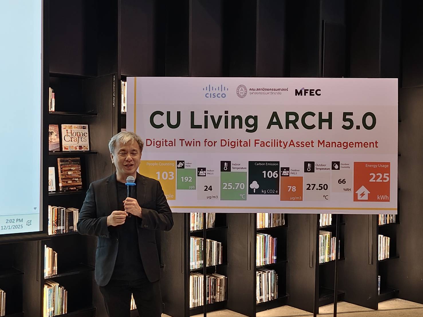 จุฬาลงกรณ์มหาวิทยาลัย, ซิสโก้, และบริษัท เอ็ม เอฟ อี ซี จำกัด (มหาชน) หรือ MFEC (MFET) ได้ประกาศเปิดตัวอย่างเป็นทางการของ "CU Living ARCH 5.0" (อีกชื่อหนึ่งว่า "CU Living Art 5.0") ซึ่งเป็นโครงการสถาปัตยกรรม Digital Twin ที่ตอบสนองและขับเคลื่อนด้วย AI แห่งแรกของประเทศไทย โครงการนี้ดำเนินการภายใต้โครงการ Cisco Country Digital Acceleration (CDA) และนับเป็นก้าวสำคัญที่แสดงให้เห็นถึงความร่วมมือระหว่างสถาบันการศึกษาชั้นนำ ภาคเอกชนด้านเทคโนโลยีระดับโลก และผู้เชี่ยวชาญด้านจัดการระบบไอที