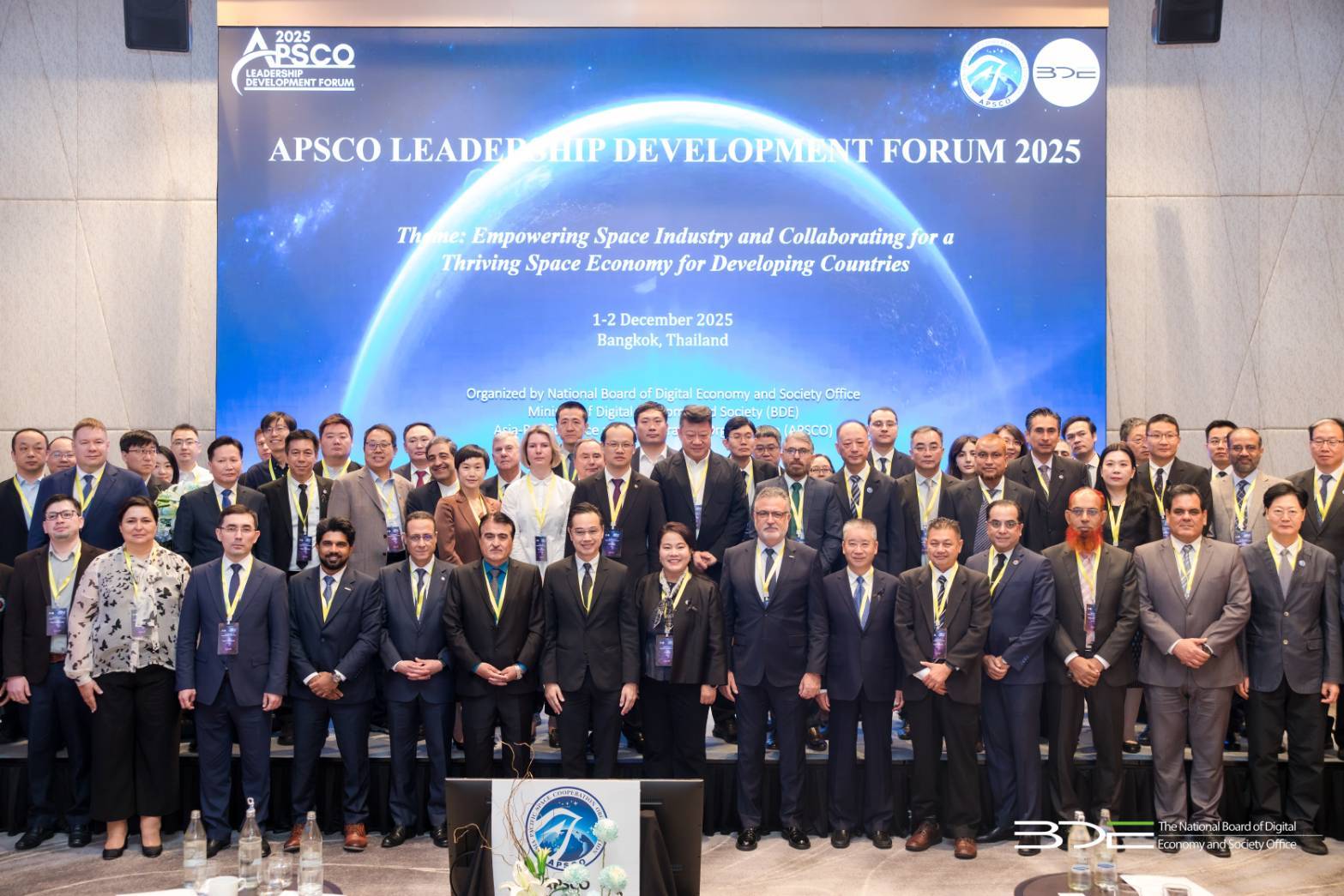 เวทางค์ พ่วงทรัพย์ เลขาธิการคณะกรรมการดิจิทัลเพื่อเศรษฐกิจและสังคมแห่งชาติ (BDE) ในฐานะประธานคณะมนตรีองค์การองค์การความร่วมมือด้านอวกาศแห่งเอเชียแปซิฟิก (APSCO) เป็นประธานเปิดงานประชุมสัมมนา “APSCO Leadership Development Forum” ครั้งที่ 3 ภายใต้หัวข้อ “Empowering Space Industry and Collaborating for a Thriving Space Economy for Developing Countries” ซึ่งจัดขึ้นโดยความร่วมมือระหว่างองค์การ APSCO และสำนักงานคณะกรรมการดิจิทัลเพื่อเศรษฐกิจและสังคมแห่งชาติ (BDE) ระหว่างวันที่ 1 – 3 ธันวาคม 2568 ณ โรงแรมมิลเลนเนียม ฮิลตัน กรุงเทพฯ โดยมีเอกอัครราชทูต ผู้บริหารระดับสูงจากรัฐสมาชิกองค์การ APSCO และผู้บริหารองค์การระหว่างประเทศ ทั้ง UNOOSA, UNESCAP และ INTERSPUTNIK ตลอดจนผู้เชี่ยวชาญด้านอวกาศ ตัวแทนภาคธุรกิจ และภาคการศึกษา ที่เกี่ยวข้องกับกิจการอวกาศ จากทั้งในภูมิภาคเอเชียและแปซิฟิก และจากทั่วโลก จำนวนกว่า 150 คน เข้าร่วมงาน โดยมีวัตถุประสงค์ เพื่อแลกเปลี่ยนมุมมองใหม่ และสร้างความเข้าใจเชิงลึกในประเด็นสำคัญที่กำลังกำหนดอนาคตของกิจการอวกาศของประเทศกำลังพัฒนาในภูมิภาคเอเชียแปซิฟิกและของโลก อีกทั้งยังเป็นโอกาสในการสร้างเครือข่ายความร่วมมือทางธุรกิจและอุตสาหกรรมอวกาศ เพื่อการสร้างความเจริญเติบโตเศรษฐกิจอวกาศ