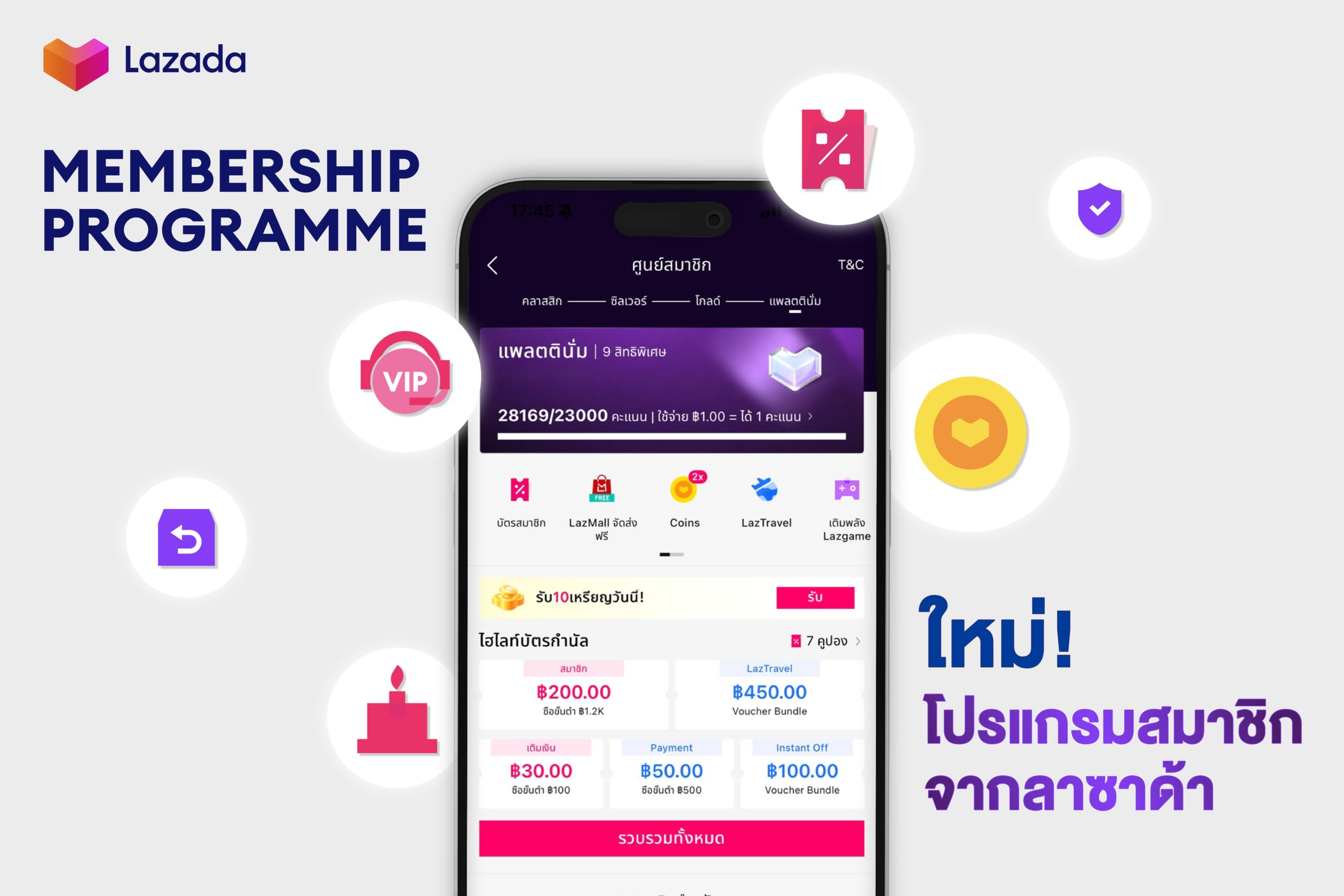 LazCoins รวมถึงบริการลูกค้าแบบเอ็กซ์คลูซีฟตลอด 24 ชั่วโมง และอีกมากมาย ช่วยกระตุ้นการซื้อซ้ำและสร้างการมีส่วนร่วมของนักช้อปอย่างต่อเนื่อง โดยสมาชิกจะได้รับ 1 คะแนนต่อการใช้จ่ายทุก 1 บาท