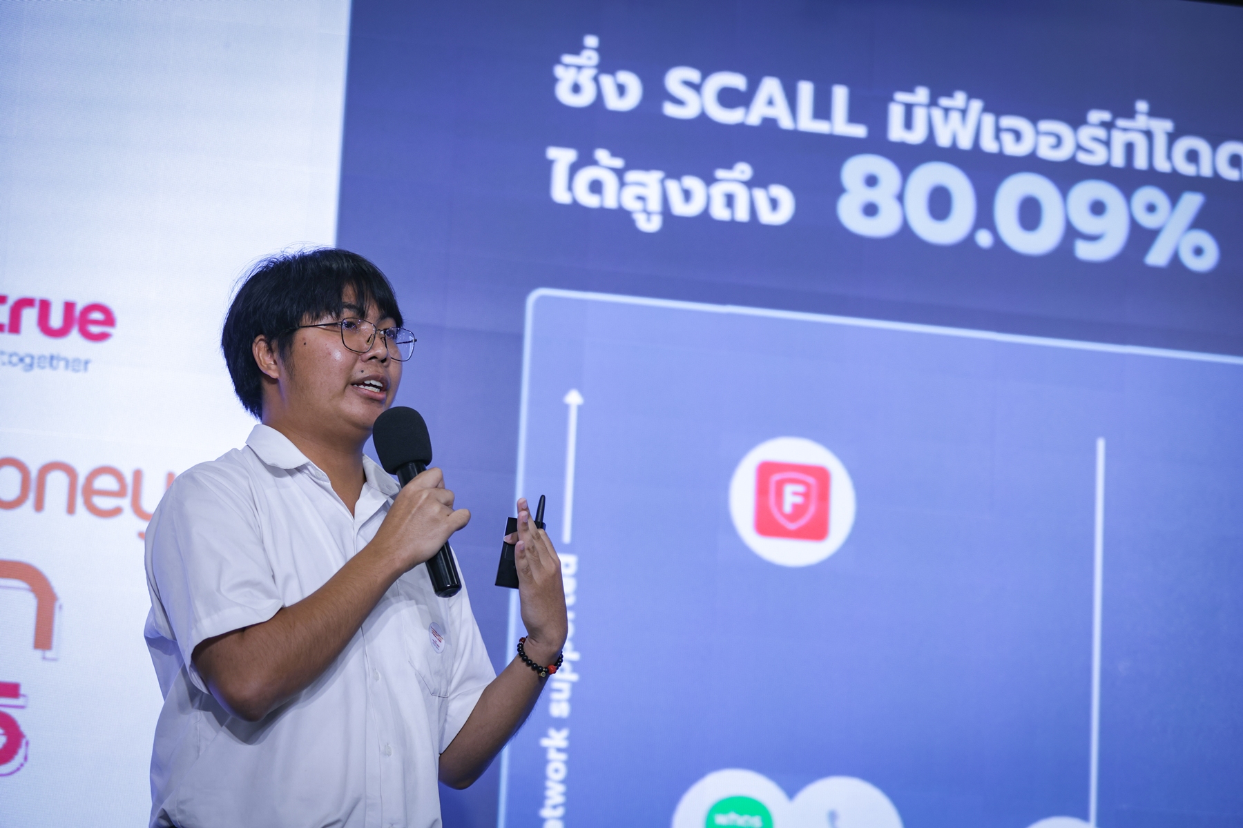 ทีม แพรวา No.1 – AI ตรวจจับบทสนทนาทางโทรศัพท์ว่าเป็นมิจฉาชีพหรือไม่ ด้วยแนวคิดปกป้องข้อมูลส่วนบุคคล เพื่อแก้ไขปัญหาคนไทยโดยเฉพาะกลุ่มผู้สูงอายุมีปัญหาการถูกหลอกลวงจากการติดต่อผ่านการคุยโทรศัพท์ โดยตั้งเป้าหมายลดผู้เสียหายถูกหลอกลวงได้มากกว่า 2,500 คน ในปีแรก