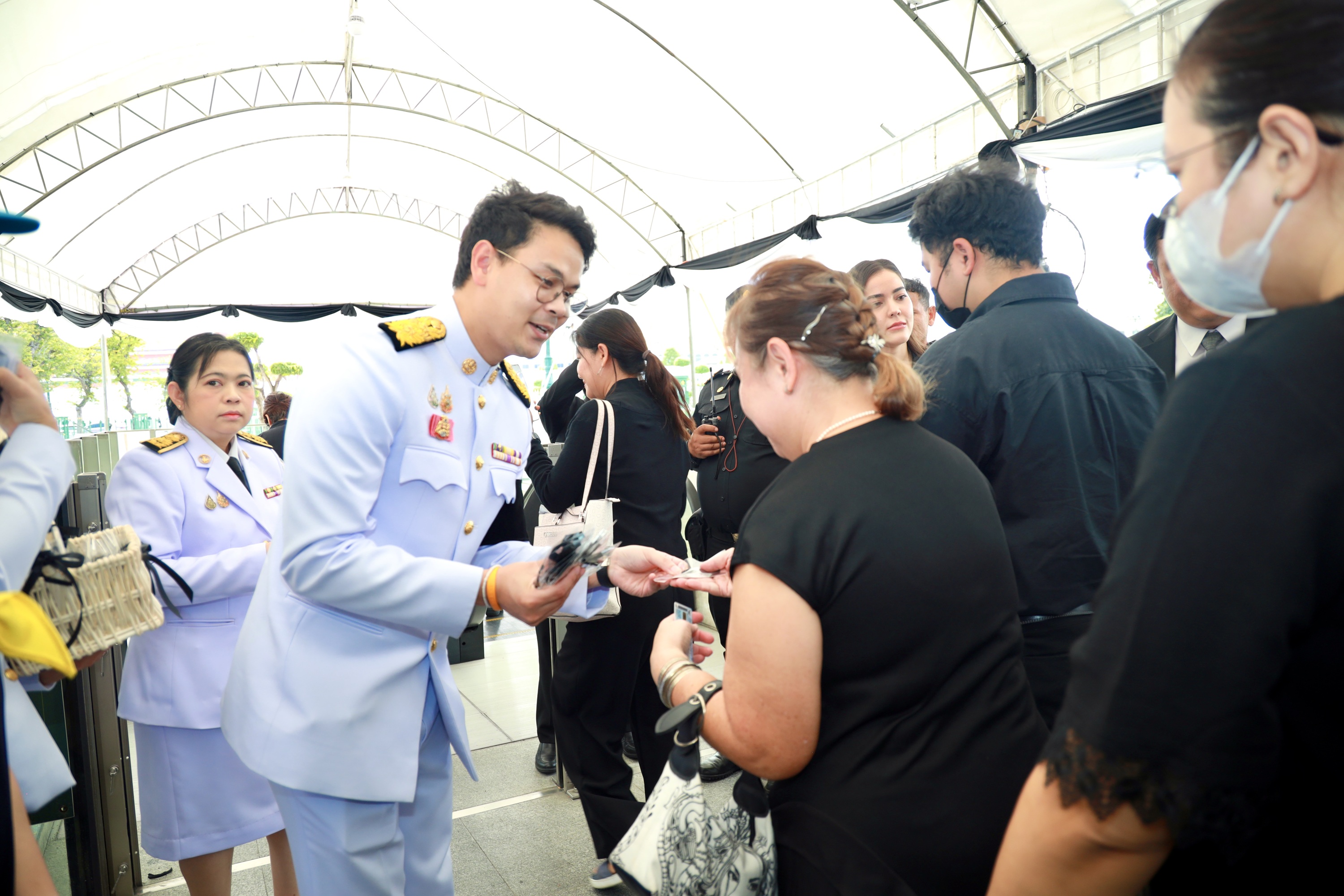 ได้ร่วมกิจกรรมมอบริบบิ้นสีดำแก่ประชาชนที่เดินทางมากราบถวายบังคมพระบรมศพพระพันปีหลวง
