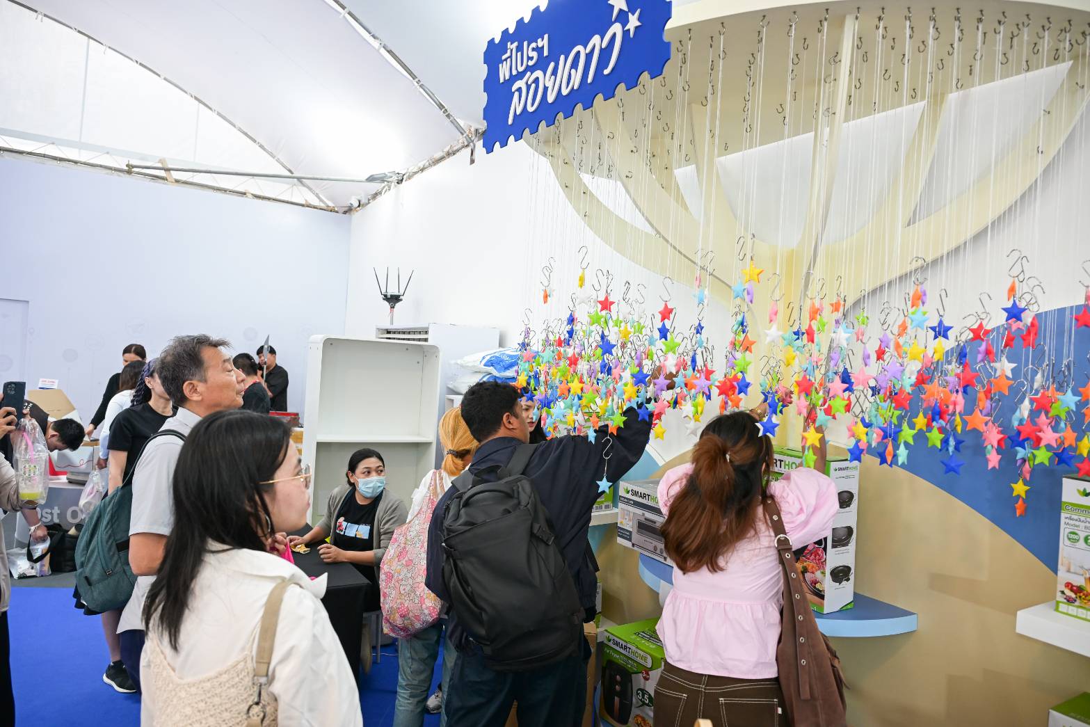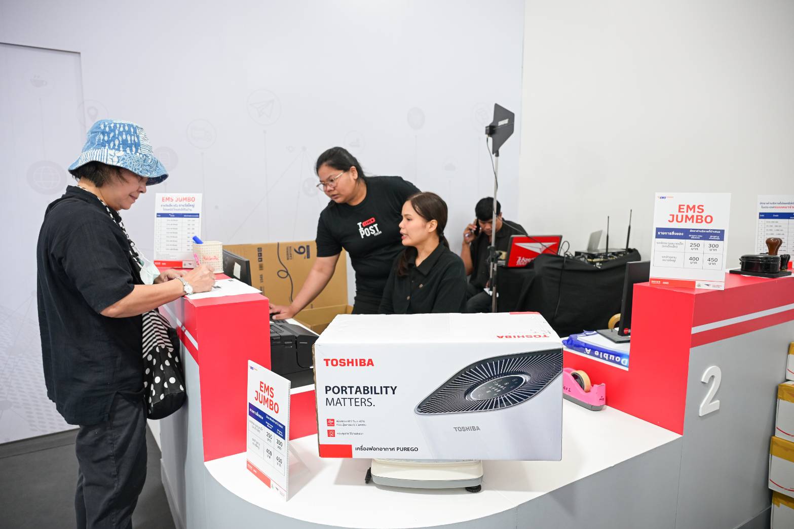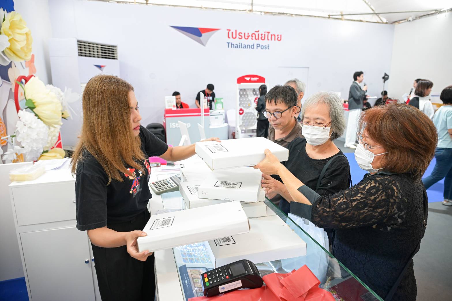 นอกจากนี้ ภายในร้านยังนำสินค้าชุมชนจากทั่วประเทศที่คัดสรรจากแพลตฟอร์ม ThailandPostMart ทั้งอาหาร ของใช้ประจำบ้าน สินค้าเกษตรแปรรูป ตลอดจนของดีประจำจังหวัดที่เหมาะสำหรับเป็นของขวัญที่ส่งเสริมชุมชนและผู้ประกอบการไทยให้มีเวทีจำหน่ายสินค้ากับผู้เข้ามาเที่ยวงานจำนวนมากในส่วนของบริการไปรษณีย์ก็ยังเปิดให้บริการเต็มรูปแบบ ไม่ว่าจะเป็นการรับฝากส่งสิ่งของทั่วไป การรับชำระเงิน รวมถึงบริการยอดนิยมอย่าง EMS JUMBO ที่เพิ่มความสะดวกให้ผู้มาร่วมงานสามารถฝากส่งสิ่งของขนาดใหญ่ เช่น รถจักรยาน ตู้เย็น หรือเครื่องปรับอากาศ ด้วยอัตราค่าบริการพิเศษลด 15% เฉพาะภายในงานเท่านั้น เพื่อช่วยอำนวยความสะดวกให้ประชาชนกลับบ้านแบบสบายตัวและไม่ต้องกังวลเรื่องการขนส่ง