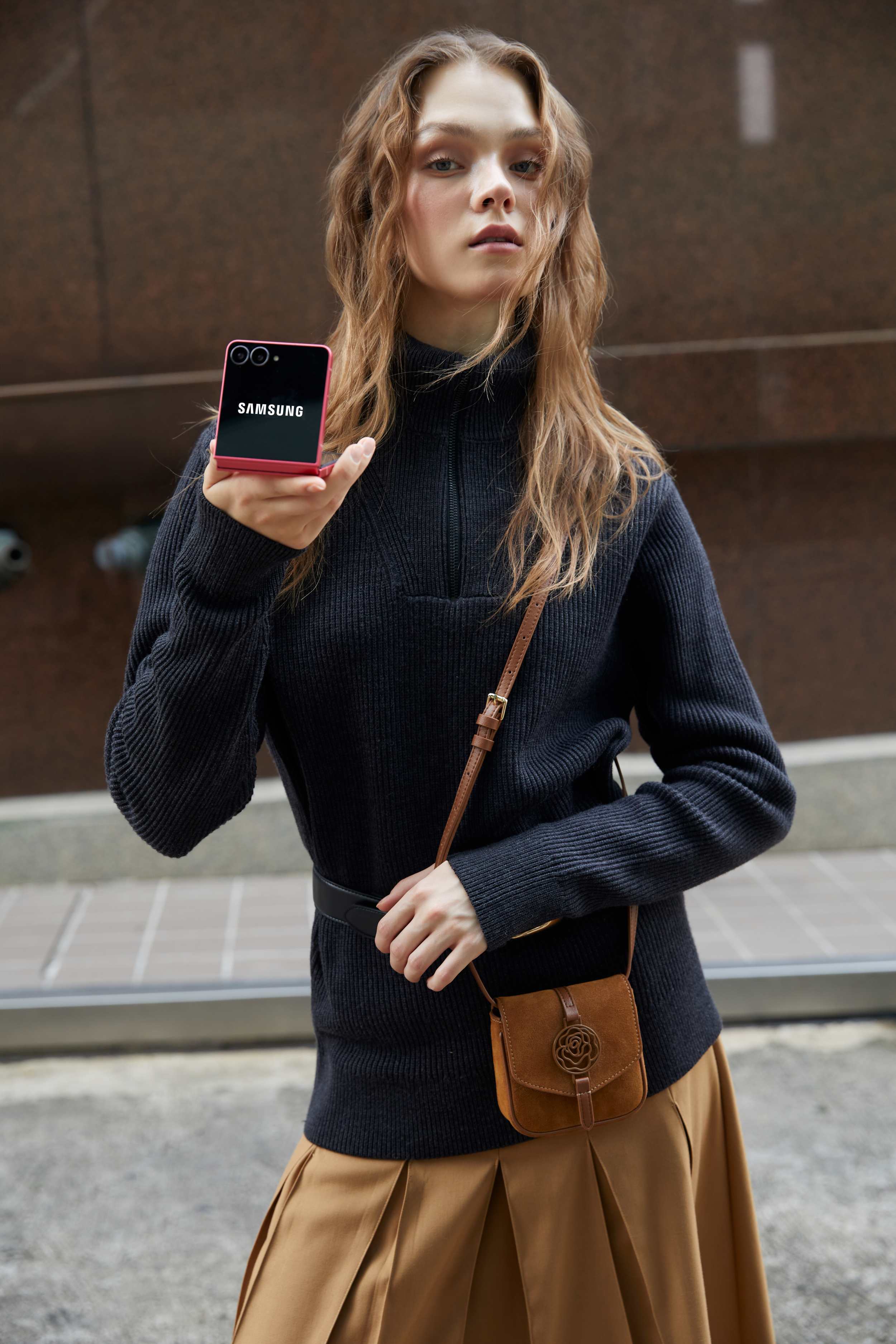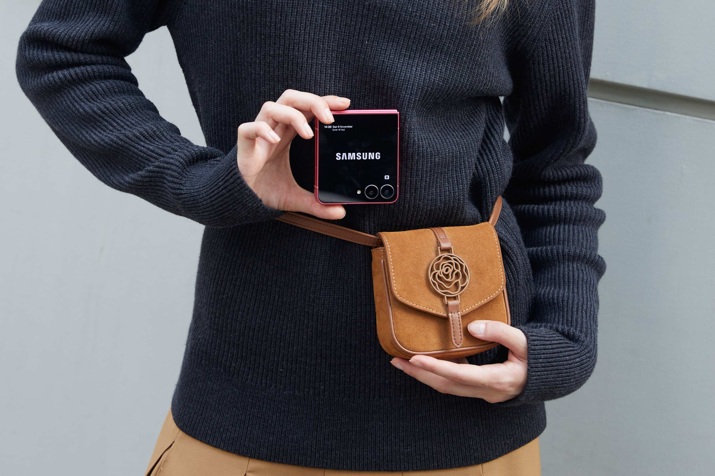 คาดเอว หรือจะถือแบบเก๋ๆ แถมยังมีพื้นที่สำหรับใส่บัตร, เงิน และสมาร์ทโฟน Galaxy Z Flip7 ด้วยดีไซน์สุดชิค