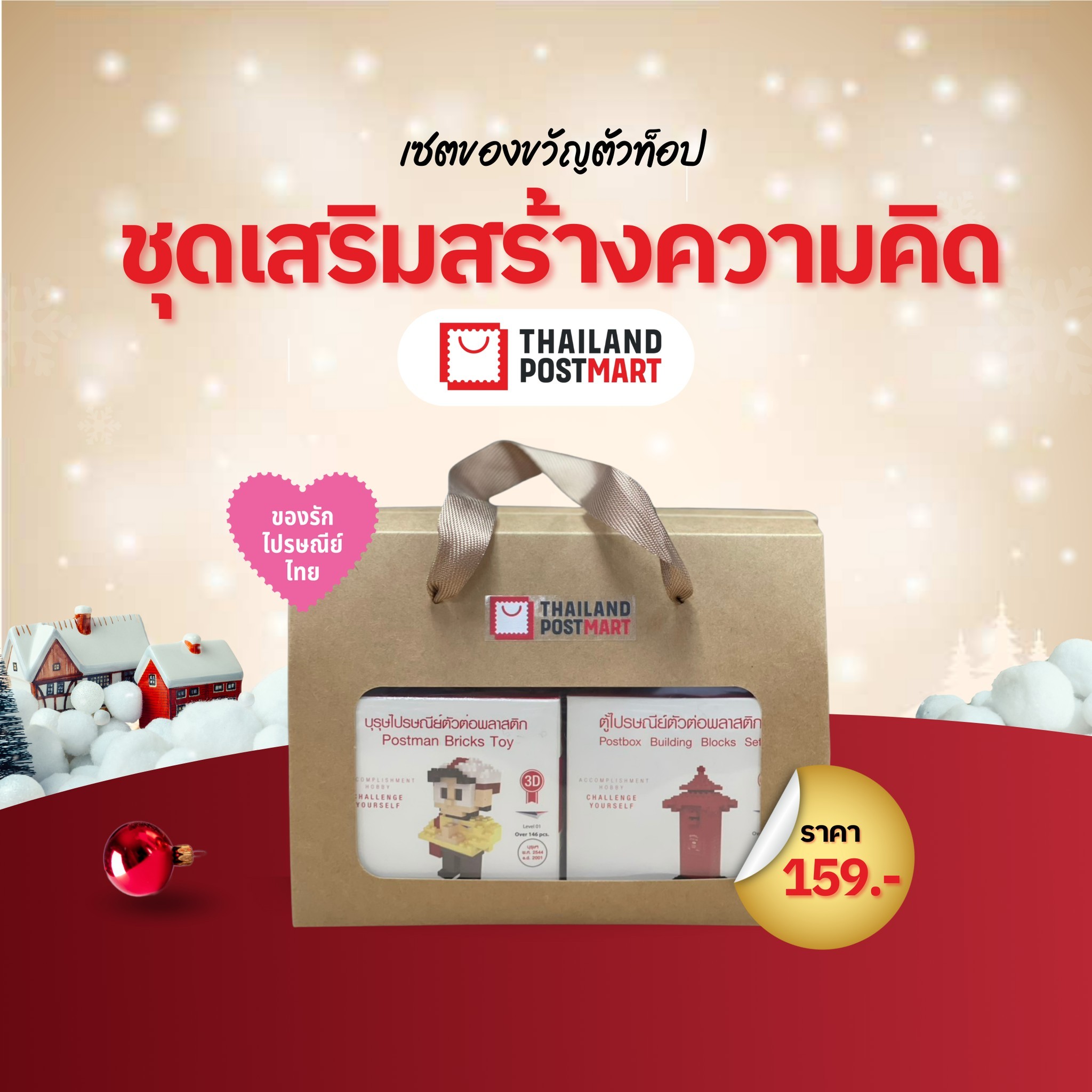 สำหรับเด็กๆ และครอบครัว ThailandPostMart ขอนำเสนอ ชุดเสริมสร้างความคิด ราคา 159 บาท ประกอบด้วยตู้ไปรษณีย์ตัวต่อพลาสติกและบุรุษไปรษณีย์ตัวต่อ (คละแบบ) ช่วยเสริมสร้างจินตนาการ เสริมสร้างความแข็งแรงให้กล้ามเนื้อมัดเล็ก ทักษะการคิด และความคิดสร้างสรรค์ ผ่านกิจกรรมการเล่นที่สนุกและมีประโยชน์