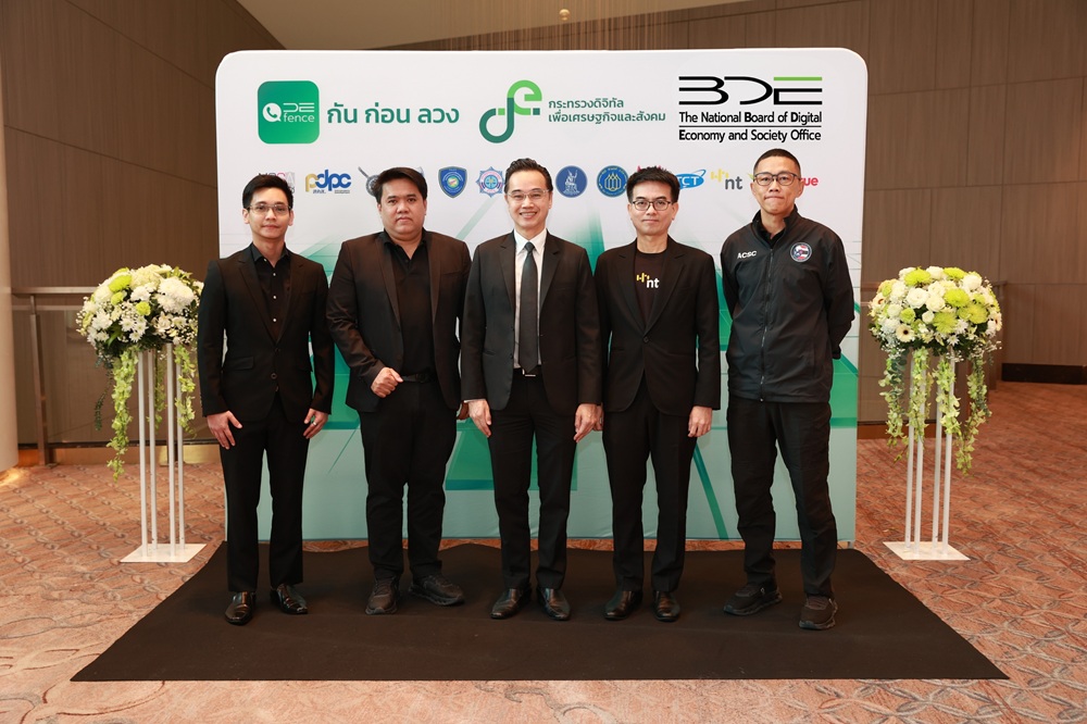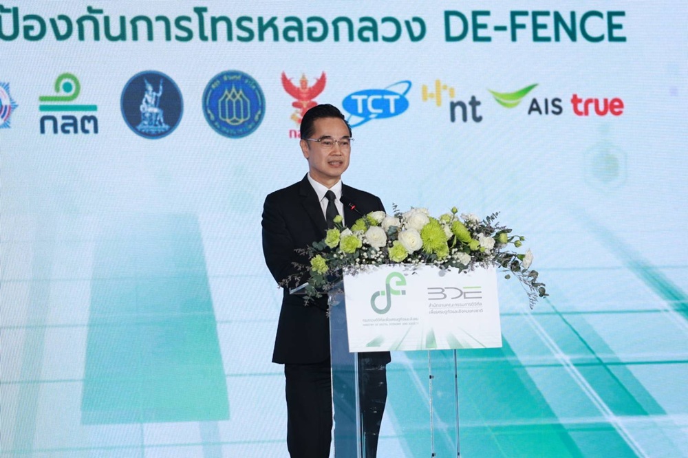 เวทางค์ พ่วงทรัพย์ เลขาธิการคณะกรรมการดิจิทัลเพื่อเศรษฐกิจและสังคมแห่งชาติ (BDE) และโฆษกกระทรวงดิจิทัลเพื่อเศรษฐกิจและสังคม (DE) ฝ่ายข้าราชการประจำ เป็นประธานงานแถลงข่าว “เปิดตัวแอปพลิเคชันป้องกันการโทรหลอกลวง” (DE-FENCE) ภายใต้โครงการพัฒนาแพลตฟอร์มป้องกันการโทรหลอกลวง โดยสำนักงานปลัดกระทรวงดิจิทัลเพื่อเศรษฐกิจและสังคม และสำนักงานคณะกรรมการดิจิทัลเพื่อเศรษฐกิจและสังคมแห่งชาติ บูรณาการความร่วมมือจากหน่วยงานที่เกี่ยวข้อง ประกอบด้วย สำนักงานตำรวจแห่งชาติ สำนักงานคณะกรรมการกิจการกระจายเสียง กิจการโทรทัศน์ และกิจการโทรคมนาคมแห่งชาติ (กสทช.) สมาคมโทรคมนาคมแห่งประเทศไทยในพระบรมราชูปถัมภ์ ธนาคารแห่งประเทศไทย สมาคมธนาคารไทยสำนักงานคณะกรรมการป้องกันและปราบปรามการฟอกเงิน สำนักงานคณะกรรมการกำกับหลักทรัพย์และตลาดหลักทรัพย์กรมสอบสวนคดีพิเศษ กองบัญชาการตำรวจสืบสวนสอบสวนอาชญากรรมทางเทคโนโลยี สำนักงานคณะกรรมการการรักษาความมั่นคงปลอดภัยไซเบอร์แห่งชาติ (สกมช.) สำนักงานคณะกรรมการคุ้มครองข้อมูลส่วนบุคคล (สคส.) บริษัท โทรคมนาคมแห่งชาติ จำกัด (มหาชน) บริษัท แอดวานซ์ ไวร์เลส เน็ทเวอร์ค จำกัด และบริษัท ทรู มูฟ เอช ยูนิเวอร์แซล คอมมิวนิเคชั่น จำกัด จัดขึ้น ณ โรงแรมอัศวิน แกรนด์ คอนเวนชั่น กรุงเทพฯ