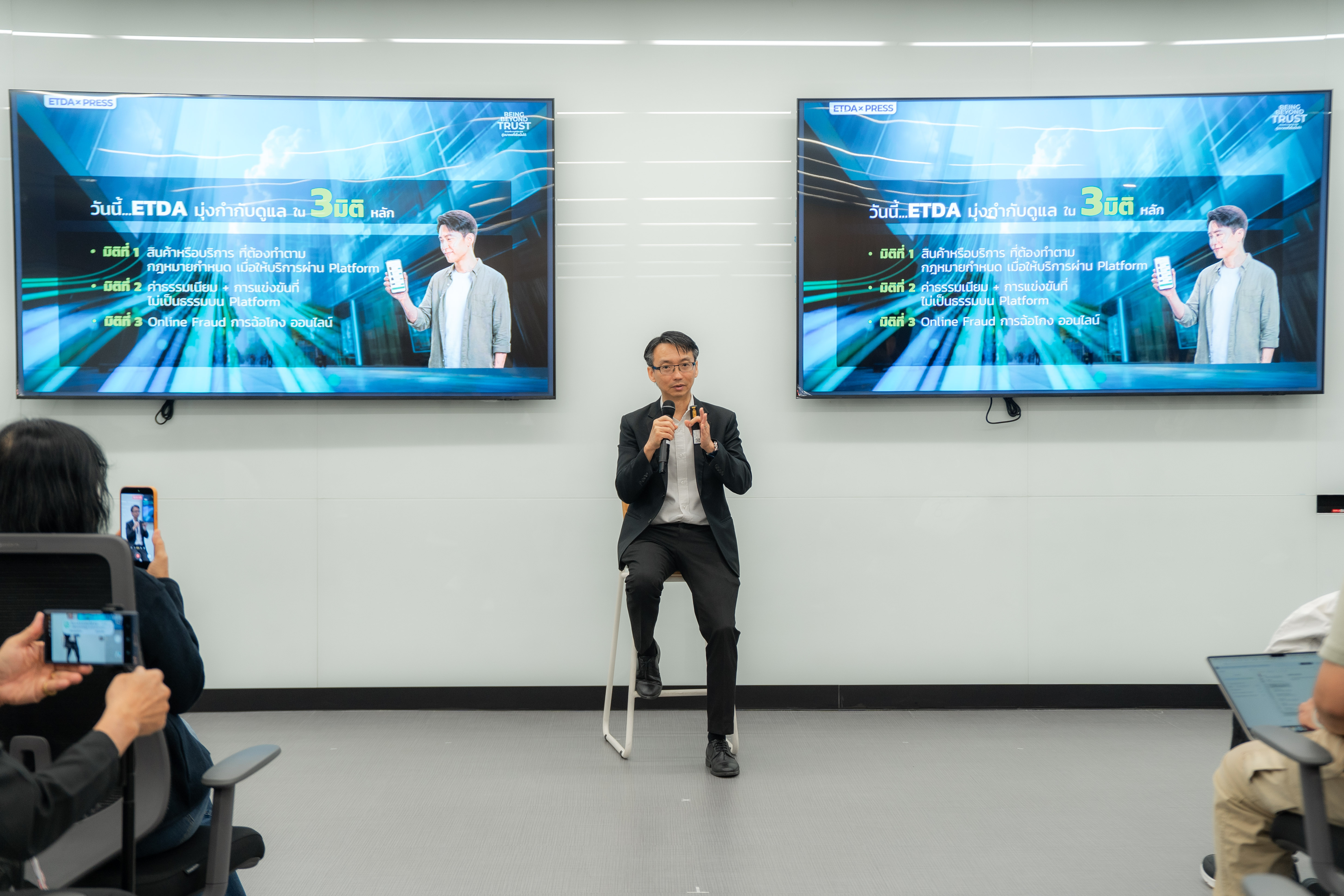 สำนักงานพัฒนาธุรกรรมทางอิเล็กทรอนิกส์ (สพธอ.) หรือ ETDA (เอ็ตด้า) นำโดย ดร.ชัยชนะ มิตรพันธ์ ผู้อำนวยการ ETDA พร้อมด้วยพลอย เจริญสม ผู้ช่วยผู้อำนวยการ ETDA และศุภจิตรา เลาหวัฒนภิญโญ เจ้าหน้าที่บริหารอาวุโส ฝ่ายกำกับดูแลและตรวจสอบธุรกิจแพลตฟอร์ม ETDA เปิดบ้านต้อนรับสื่อมวลชน อัปเดตความคืบหน้างานด้านการกำกับดูแลธุรกิจบริการแพลตฟอร์มดิจิทัล ภายใต้ พระราชกฤษฎีกาการประกอบธุรกิจบริการแพลตฟอร์มดิจิทัลที่ต้องแจ้งให้ทราบ พ.ศ. 2565 (กฎหมาย DPS) พร้อมสื่อสารถึงทิศทางการทำงานในปี 2569 ที่มุ่งเดินหน้าต่อยอด “กลไกร่วมกำกับ” ยกระดับมาตรฐานบริการแพลตฟอร์มดิจิทัลของประเทศให้โปร่งใส เป็นธรรม และเชื่อมั่นได้