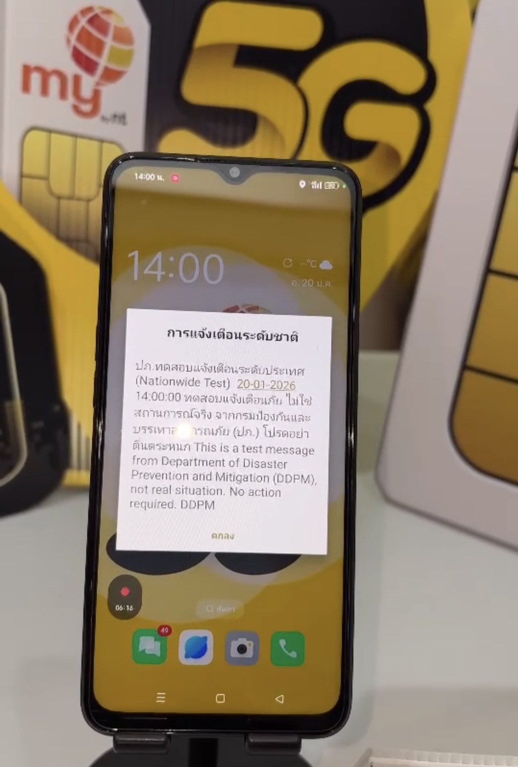 ณัฏฐวิทย์ สุฤทธิกุล เปิดเผยว่า NT พร้อมสนับสนุนการยกระดับระบบแจ้งเตือนภัยของประเทศ โดยมีความพร้อมด้านโครงข่ายและบริการ my by NT บนโครงข่าย 4G และ 5G ย่านความถี่ 700 เมกะเฮิรตซ์ ซึ่งครอบคลุมพื้นที่ทั่วประเทศ และสามารถรองรับการแจ้งเตือนภัยฉุกเฉินได้อย่างมีประสิทธิภาพ โดยการร่วมทดสอบครั้งนี้เป็นส่วนหนึ่งของการเตรียมความพร้อมเชิงระบบ เพื่อให้การแจ้งเตือนภัยสามารถเข้าถึงประชาชนได้อย่างรวดเร็วเมื่อเกิดเหตุการณ์จริง