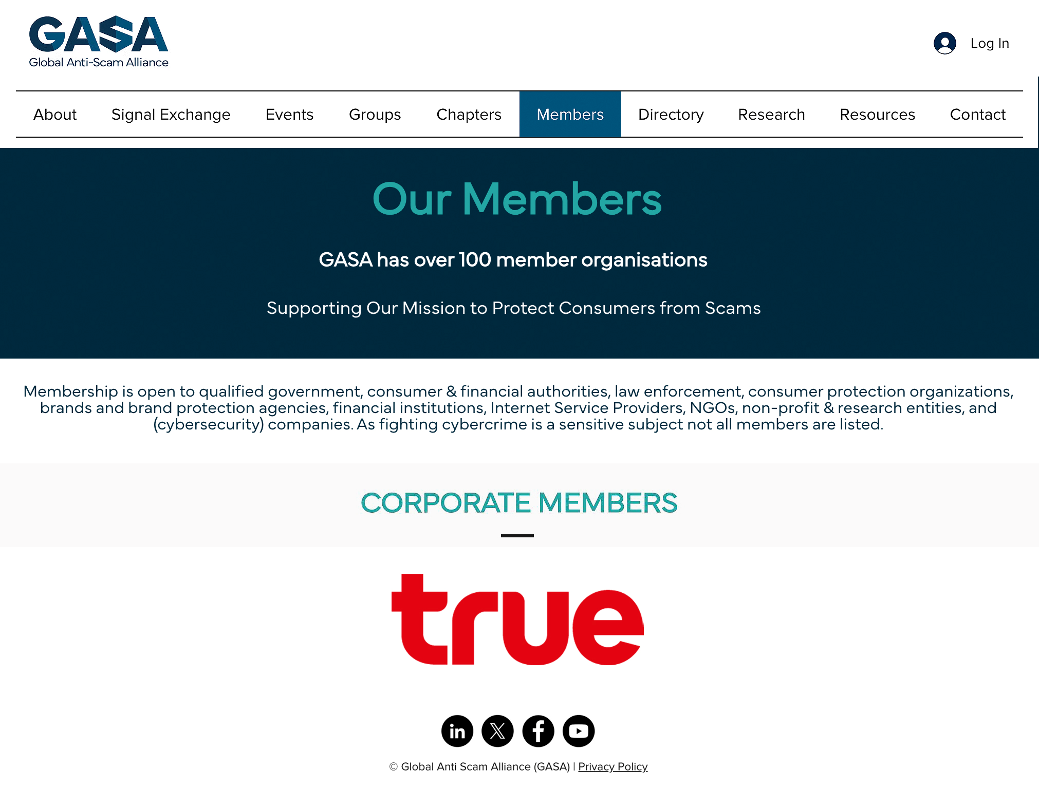 Global Anti-Scam Alliance (GASA) ขอต้อนรับ ทรู คอร์ปอเรชั่น เข้าร่วมเป็นพันธมิตร ในฐานะองค์กรที่จะมีบทบาทสำคัญในการขับเคลื่อนความพยายามต่อต้านภัยหลอกลวงในภูมิภาคเอเชียแปซิฟิก ไบรอัน แฮนลีย์ ผู้อำนวยการ GASA ประจำภูมิภาคเอเชียแปซิฟิก กล่าวว่า “ภัยหลอกลวงไม่ได้เป็นเพียงปัญหาเล็กน้อยอีกต่อไป แต่กลายเป็นภัยคุกคามดิจิทัลที่เติบโตและเชื่อมโยงแผ่ขยายอย่างรวดเร็ว ซึ่ง ทรู คอร์ปอเรชั่น ได้แสดงความเป็นผู้นำในประเทศไทยอย่างชัดเจน ด้วยการเข้าร่วมเป็นสมาชิกผู้ก่อตั้งของ GASA Chapter Thailand และความมุ่งมั่นที่มีตั้งแต่ในระยะเริ่มต้นนี้ จะเป็นกลไกเสริมความแข็งแกร่งและผลักดันความพยายามในการรับมือกับแหล่งก่ออาชญากรรมหลอกลวง การฉ้อโกงผ่านระบบโทรคมนาคม และการปลอมแปลงตัวตนออนไลน์ อีกทั้งสะท้อนถึงความพร้อมของประเทศไทยในการก้าวขึ้นเป็นผู้นำในระยะถัดไปของการต่อต้านภัยหลอกลวงอย่างมีประสิทธิภาพ ความร่วมมือครั้งนี้ถือเป็นก้าวสำคัญในการยกระดับความร่วมมือระดับภูมิภาค และร่วมสร้างอนาคตดิจิทัลที่ปลอดภัยยิ่งขึ้นให้กับชุมชนในประเทศไทยและประเทศอื่นๆ ในภูมิภาค”