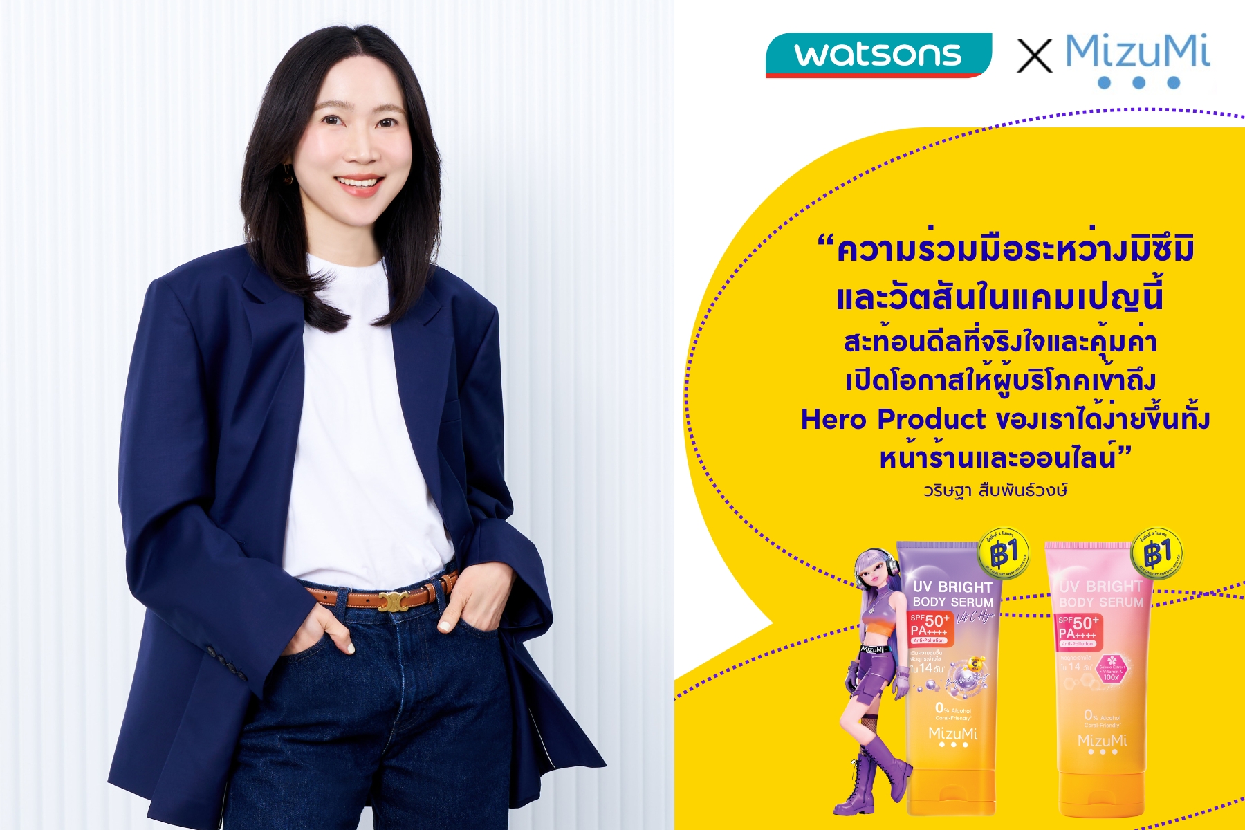เช่นเดียวกับ วริษฐา สืบพันธ์วงษ์ ผู้ก่อตั้งและกรรมการผู้จัดการ บริษัท มิซึฮาดะ กรุ๊ป จำกัด ผู้ผลิตแบรนด์สกินแคร์ มิซึมิ (Mizumi) ที่มองว่าแคมเปญนี้คือช่วงเวลาที่ดีของผู้บริโภคว่า “เรามองว่าแคมเปญนี้เป็นเหมือนช่วงเวลาพิเศษที่มิซึมิและวัตสันจะได้ร่วมกันมอบความคุ้มค่าที่สุดแห่งปีให้กับลูกค้าทุกคน เป็นโอกาสดีให้ลูกค้าประจำได้ตุนสินค้าที่ใช้บ่อย และลูกค้าใหม่ได้ลองเปิดใจใช้ผลิตภัณฑ์ของเราได้ง่ายขึ้น ทั้งทางหน้าร้านและวัตสันออนไลน์ ดังนั้นปีนี้เราจึงนำกันแดดตัวดัง MizuMi UV Bright Body Serum มาร่วมรายการ เพื่อให้ลูกค้าได้รับประโยชน์สูงสุดจากโปรโมชันนี้”