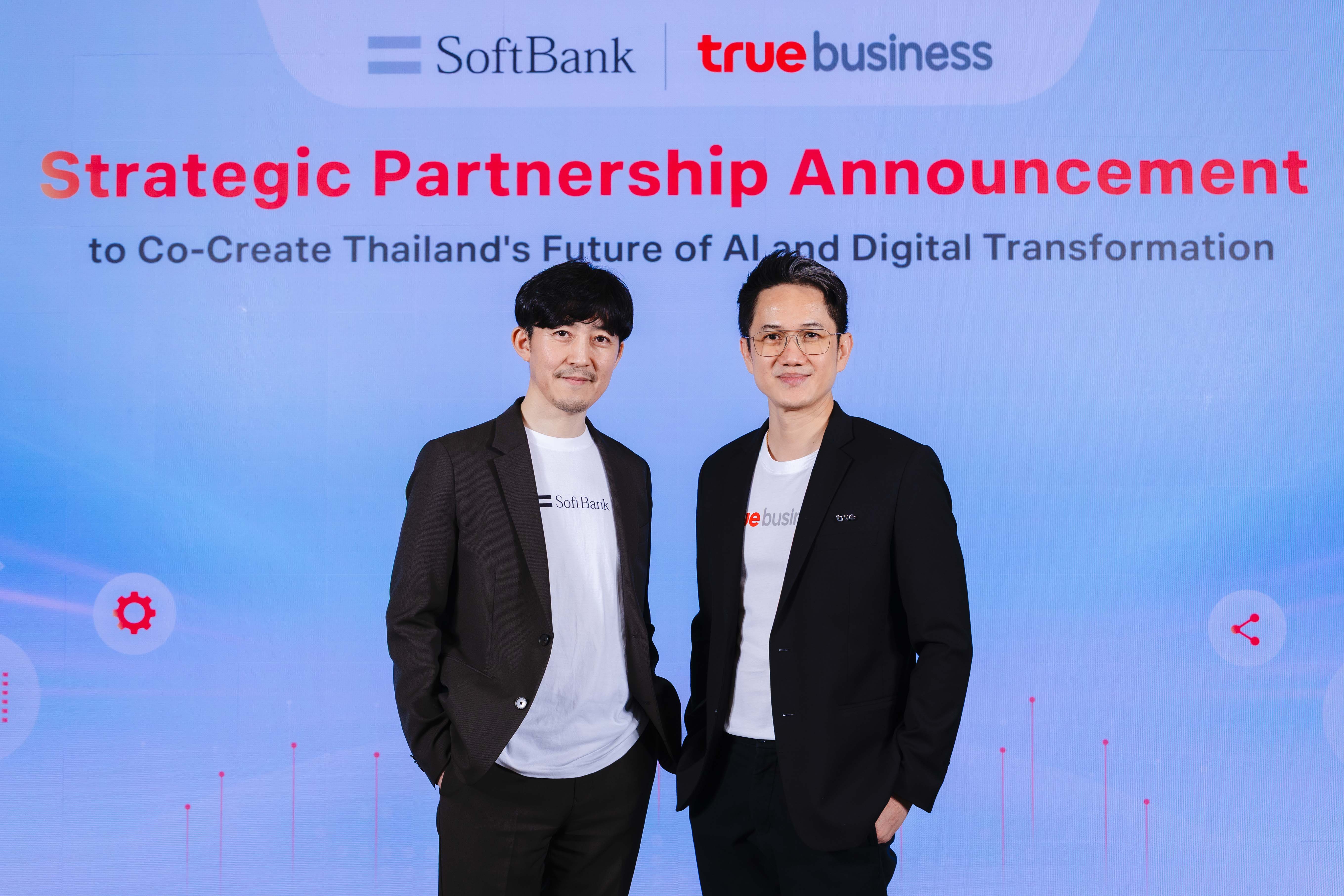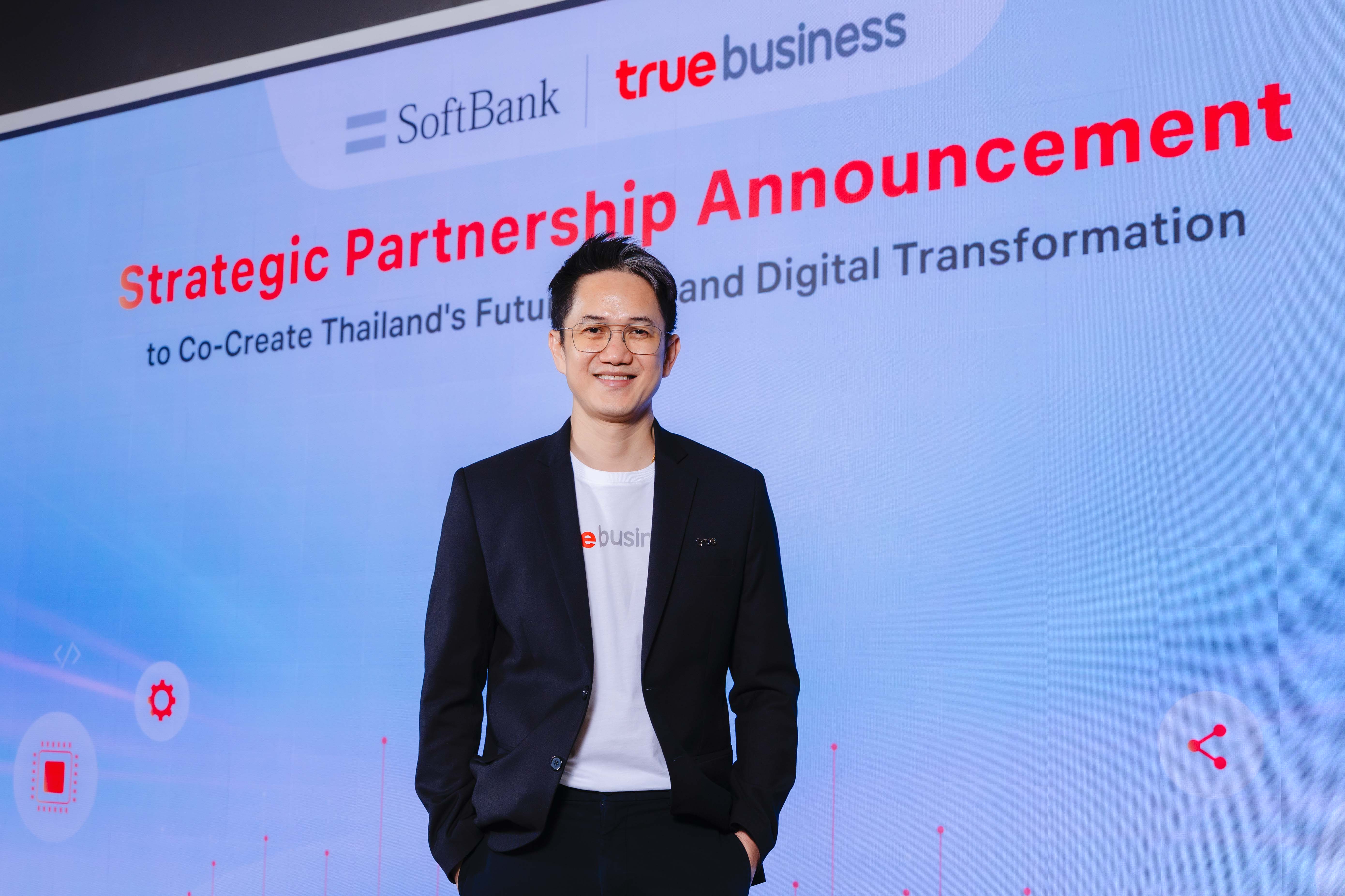 ทรูบิสิเนส เดินเกมรุกพัฒนาเทคโซลูชัน เติมเต็มวิสัยทัศน์ ทรู คอร์ปอเรชั่น ในฐานะผู้นำเทคคอมปานีไทย ประกาศความร่วมมือเชิงกลยุทธ์ครั้งสำคัญกับ ซอฟต์แบงก์ ผู้นำธุรกิจโทรคมนาคมแห่งดินแดนอาทิตย์อุทัย โดย ทรู คอร์ปอเรชั่น และ ซอฟต์แบงก์ จะร่วมกันศึกษาและพัฒนาการดำเนินธุรกิจในหลากหลายมิติ ผสานจุดแข็งของผลิตภัณฑ์ บริการ และเทคโนโลยีของทั้งสองบริษัท เพื่อยกระดับโครงสร้างพื้นฐานและเทคโนโลยี ดึง Best Practice ระดับโลก สู่กลุ่มผู้ประกอบธุรกิจทุกอุตสาหกรรมในประเทศไทย ผ่านการร่วมพัฒนานวัตกรรมเพื่อส่งมอบโซลูชันดิจิทัลล้ำสมัย ด้วยหลากหลายเทคโนโลยีที่คัดสรรและออกแบบมาตอบโจทย์และสอดคล้องตรงตามความต้องการของแต่ละภาคอุตสาหกรรมอย่างแท้จริง และนำพาองค์กรธุรกิจไทยก้าวข้ามขีดจำกัดของการทราสฟอร์มสู่ดิจิทัล เร่งสปีดการเติบโตกับผลลัพธ์เชิงธุรกิจที่จับต้องได้อย่างเป็นรูปธรรม เพิ่มขีดความสามารถในการช่วงชิงความได้เปรียบและแข่งขันได้อย่างเต็มศักยภาพบนเวทีโลก พร้อมปูทางสร้างระบบนิเวศ AI ที่แข็งแกร่ง สร้างการเติบโตอย่างก้าวกระโดดทางดิจิทัลในประเทศไทย