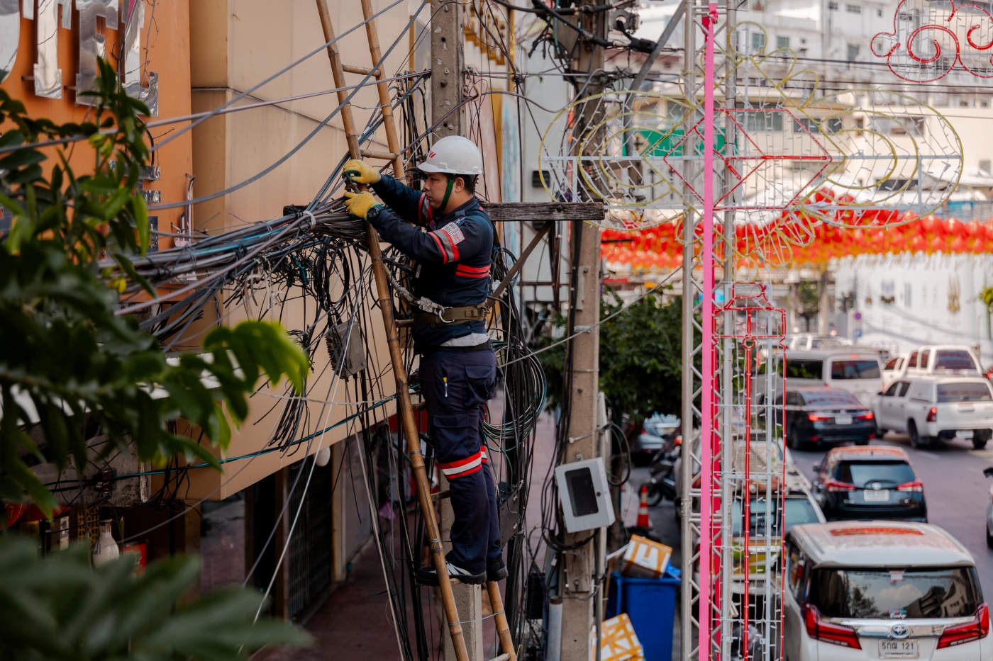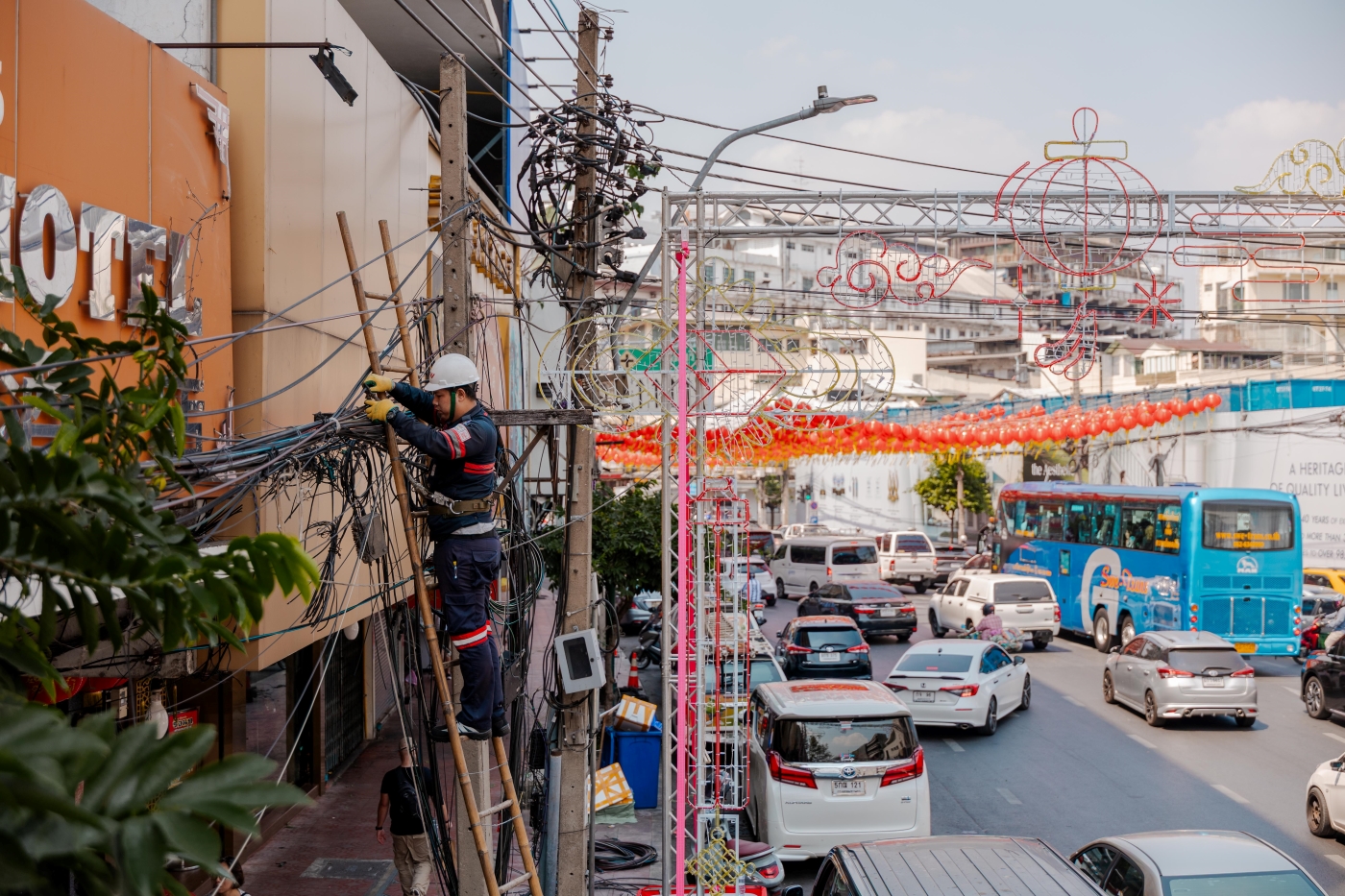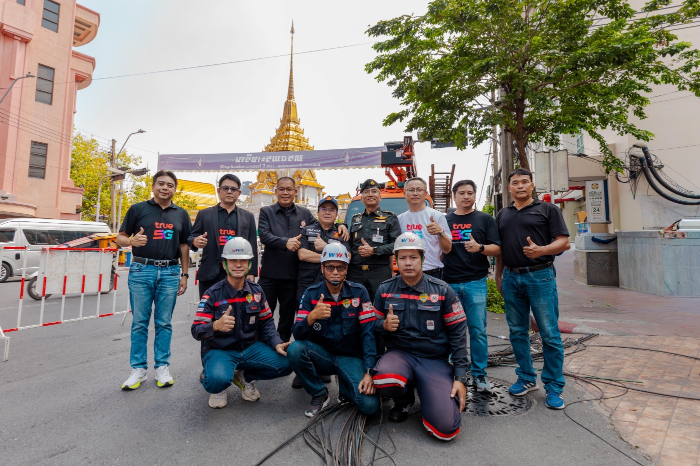 ทรู คอร์ปอเรชั่น ผนึกความร่วมมือกับ สำนักงานคณะกรรมการกิจการกระจายเสียง กิจการโทรทัศน์ และกิจการโทรคมนาคมแห่งชาติ (กสทช.) และการไฟฟ้านครหลวง (MEA) และพันธมิตร เพื่อร่วมเฉลิมฉลองเทศกาลตรุษจีน เปิดศักราชรับปีม้ามงคล เดินหน้าปฏิบัติการรื้อถอนและนำสายสื่อสารลงใต้ดิน เนรมิตทัศนียภาพของแหล่งท่องเที่ยวสำคัญให้สวยงามและปลอดภัย พร้อมต้อนรับนักท่องเที่ยวจากทั่วทุกมุมโลกในเทศกาลตรุษจีน ปี 2569 โดยได้รับเกียรติจาก สุทธิศักดิ์ ตันตะโยธิน (ที่ 4 จากซ้าย) รองเลขาธิการ กสทช. ราเชนทร์ อันเวช (ที่ 3 จากซ้าย) รองผู้ว่าการเทคโนโลยีดิจิทัลและระบบสื่อสาร การไฟฟ้านครหลวง (MEA) และ กนกศักดิ์ นิ่มนวลรัตน์ (ที่ 2 จากซ้าย) หัวหน้าฝ่ายรัฐกิจและสาธารณูปโภค บจม.ทรู คอร์ปอเรชั่น นำทีมวิศวกรลงพื้นที่ปฏิบัติการอย่างใกล้ชิด พร้อมติดตามความคืบหน้าและสนับสนุนการดำเนินงานบริเวณพื้นที่ถนนเยาวราช
