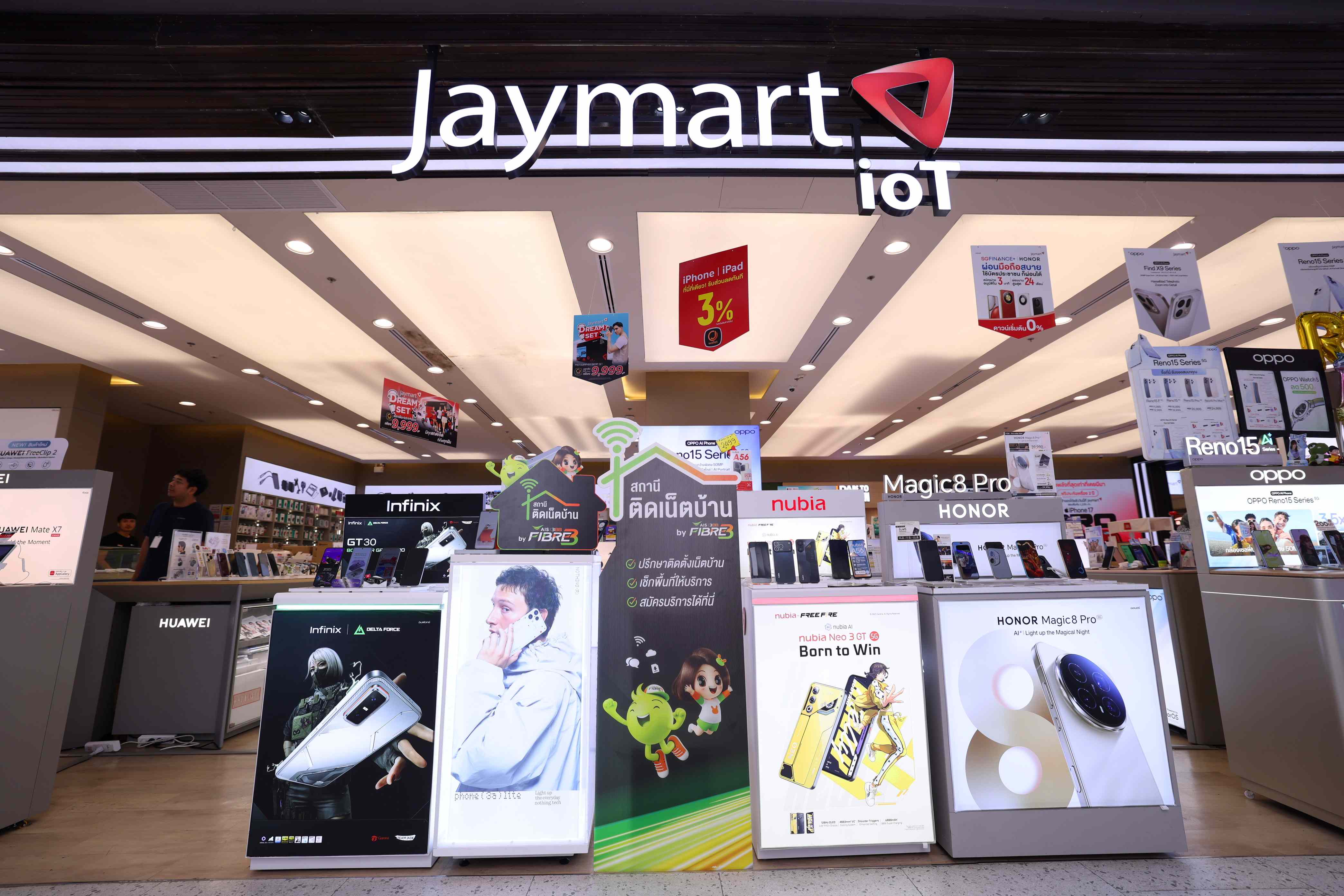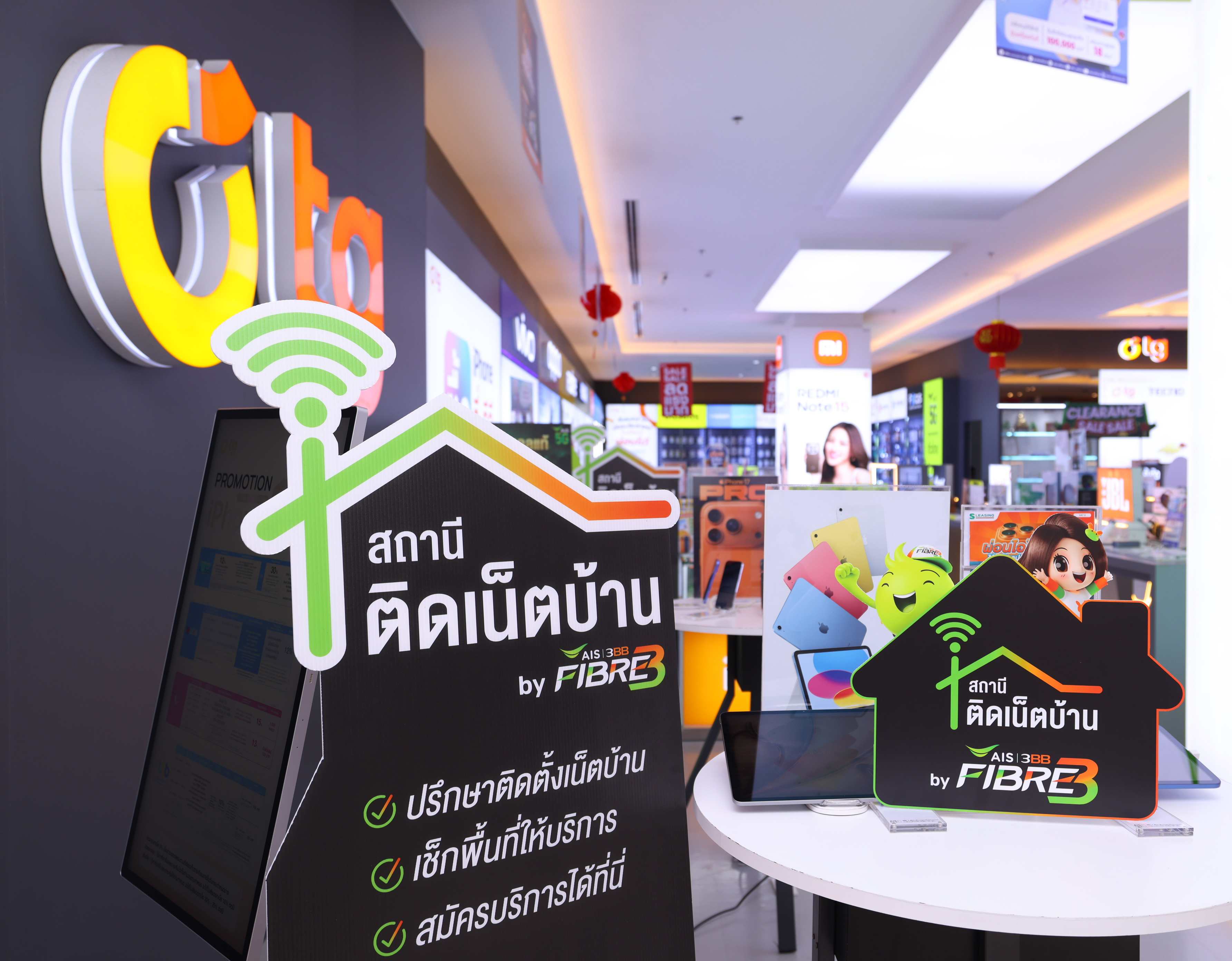 AIS 3BB FIBRE 3 ขยาย “สถานีติดเน็ตบ้าน” จุดให้บริการและติดตั้งอินเทอร์เน็ตบ้าน ที่เพิ่มการให้บริการไปยังร้านไอทีพาร์ทเนอร์ชั้นนำทั่วประเทศ ได้แก่ IT City, Jaymart และ TG Phone รวมถึงช่องทางบริการจาก AIS เพื่อเพิ่มความสะดวกให้กับลูกค้า สามารถเข้าถึงบริการเน็ตบ้านได้ง่าย ครอบคลุมใกล้บ้านยิ่งขึ้น สามารถสมัครแพ็กเกจ พร้อมรับคำแนะนำเกี่ยวกับเรื่องอินเทอร์เน็ตบ้านจากผู้เชี่ยวชาญมืออาชีพ เสริมความมั่นใจและความน่าเชื่อถือในทุกขั้นตอนการสมัคร รวมจุดบริการกว่า 600 สาขาทั่วประเทศ ตอบโจทย์ลูกค้าที่มองหาอินเทอร์เน็ตบ้านที่สะดวก รวดเร็ว และเชื่อถือได้ รวมถึงประสานงานการติดตั้งได้อย่างรวดเร็วในมาตรฐานเดียวกันทั่วประเทศ
