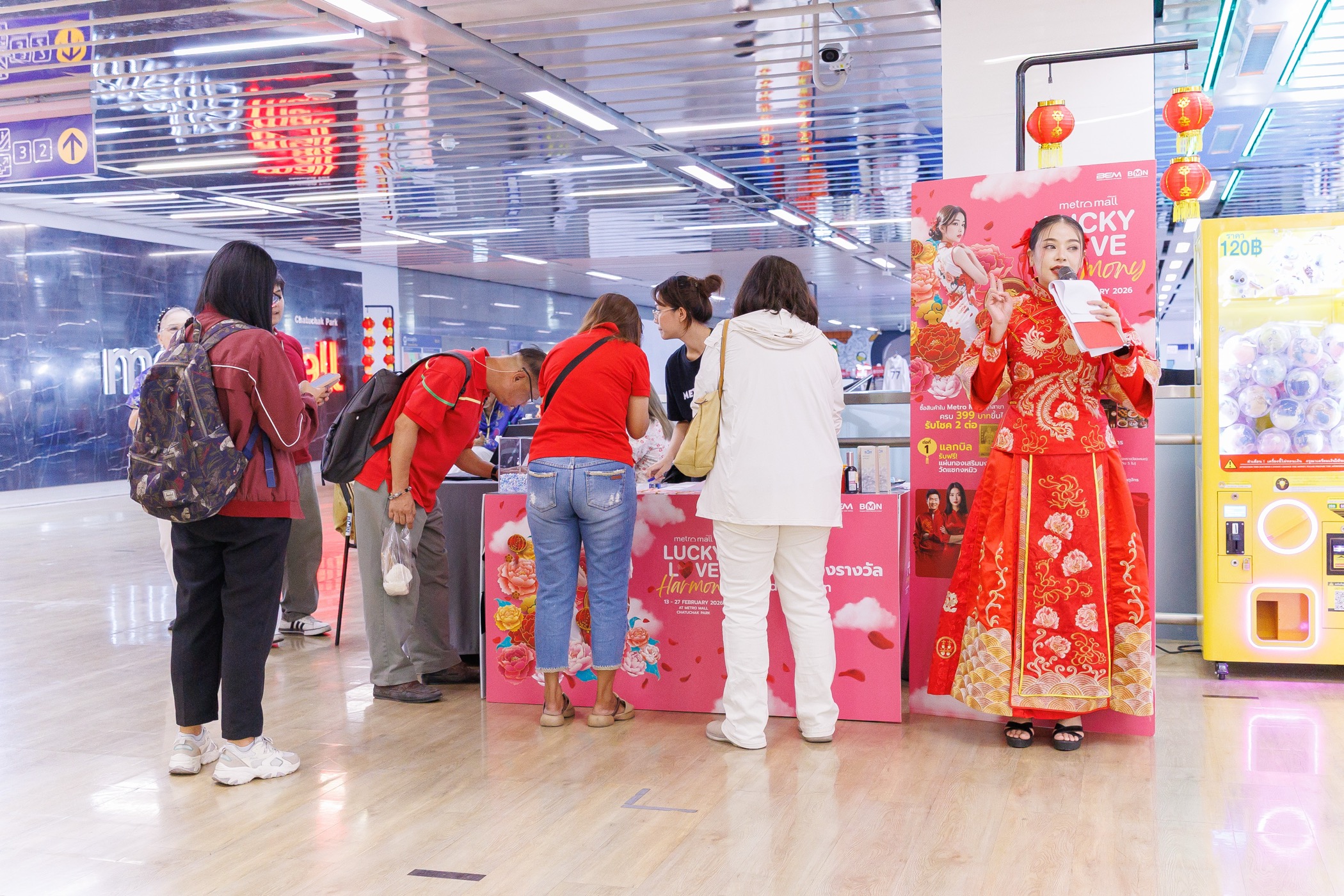 Chinese Dress Lucky Pass (เฉพาะวันที่ 13 - 17 ก.พ. 2569) เพียงสวมชุดกี่เพ้าหรือชุดจีนมาร่วมงาน ลงทะเบียนรับสิทธิ์ที่จุดกิจกรรม และสมัคร Metro Mall Member รับทันที “อั่งเปามงคล” และ “ทานอาหารฟรี” จากร้านค้าที่ร่วมรายการภายในพื้นที่ Metro Mall (ของมีจำนวนจำกัด/วัน)
