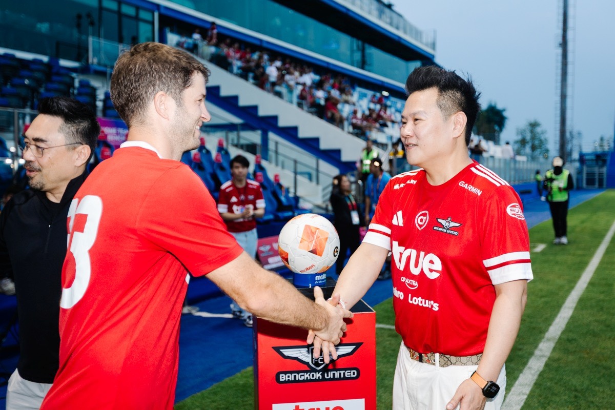 เกมใหญ่ที่แฟนบอลรอคอยกลับมาทำสนามลุกเป็นไฟอีกครั้ง เมื่อ ทรู แบงค็อก ยูไนเต็ด เปิดบ้านทรู บีจี สเตเดียม รับการมาเยือนของ เมืองทอง ยูไนเต็ด ในศึกไทยลีก 2025/26 ท่ามกลางบรรยากาศเชียร์สุดเดือดแบบ “แน่นทุกโซน” โดย ทรู คอร์ปอเรชั่น เดินหน้าสนับสนุนฟุตบอลไทยอย่างต่อเนื่อง ร่วมส่งแรงใจข้างสนาม นำโดย ขจร เจียรวนนท์ ประธานสโมสรทรู แบงค็อก ยูไนเต็ด พร้อมด้วย บมจ.ทรู คอร์ปอเรชั่น โดย โอลิเวอร์ กิตติพงษ์ วีระเตชะ หัวหน้าคณะผู้บริหารด้านแบรนด์และมีเดีย ร่วมส่งพลังไปกับแฟนบอลที่พร้อมใจกันเชียร์สุดเสียงตั้งแต่นกหวีดแรก ทำให้บรรยากาศในสนามคึกคัก และสมศักดิ์ศรี “บิ๊กแมตช์ของจริง” พร้อมกันนี้ ทรูยังอัพสัญญาณ ทรู5G ให้ครอบคลุมทุกโซนของทรู บีจี สเตเดียม รองรับการใช้งานของแฟนบอลอย่างเต็มประสิทธิภาพ ทั้งการไลฟ์ แชร์โมเมนต์ และอัปโหลดความมันแบบเรียลไทม์ ด้วยสัญญาณแรงเร็ว เสถียรตลอดการแข่งขัน